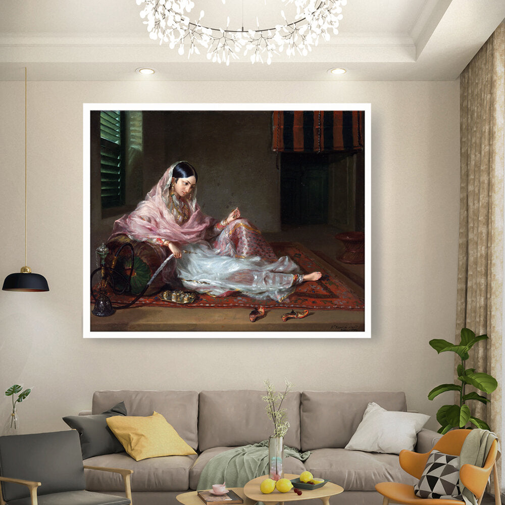The painting serves as a testament to the cross-cultural exchange of fashion, art, and textiles in colonial India, where European painters like Renaldi documented the rich diversity of local attire and traditions.