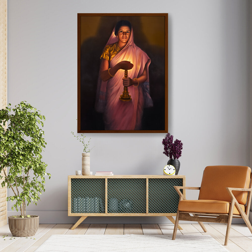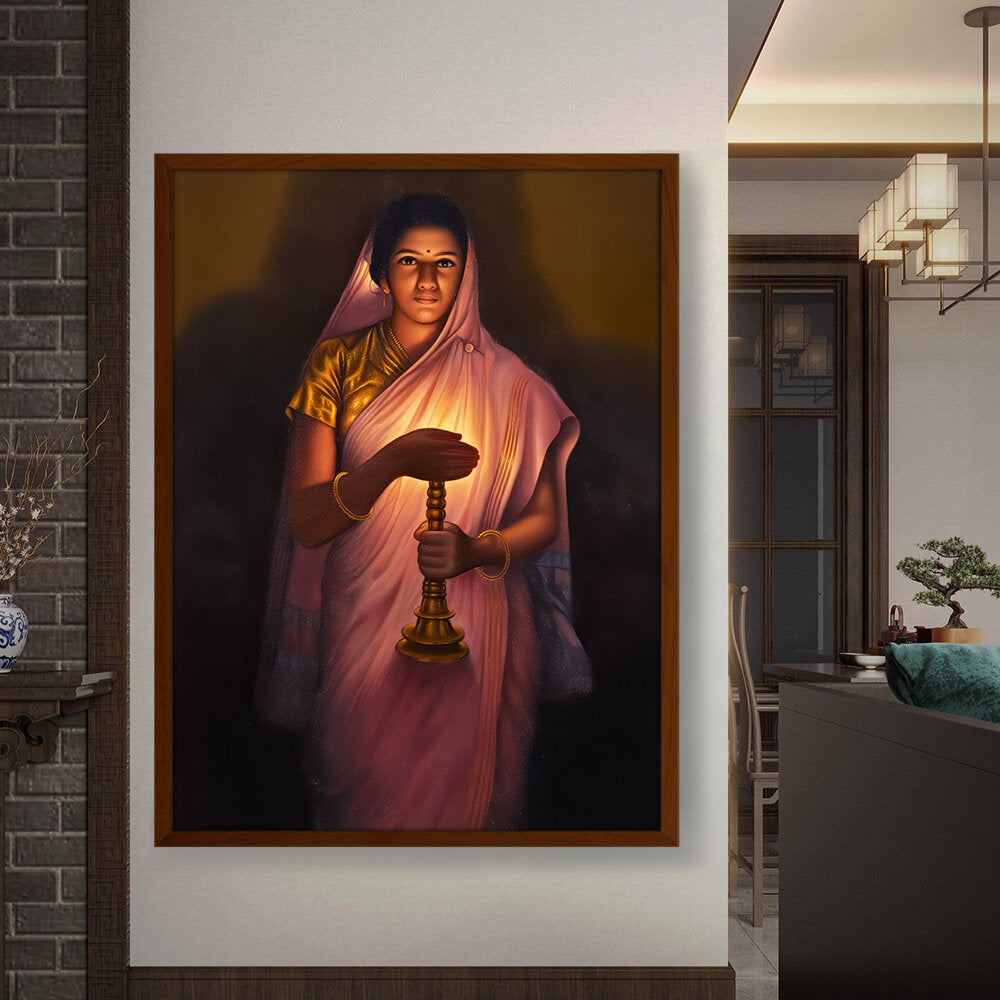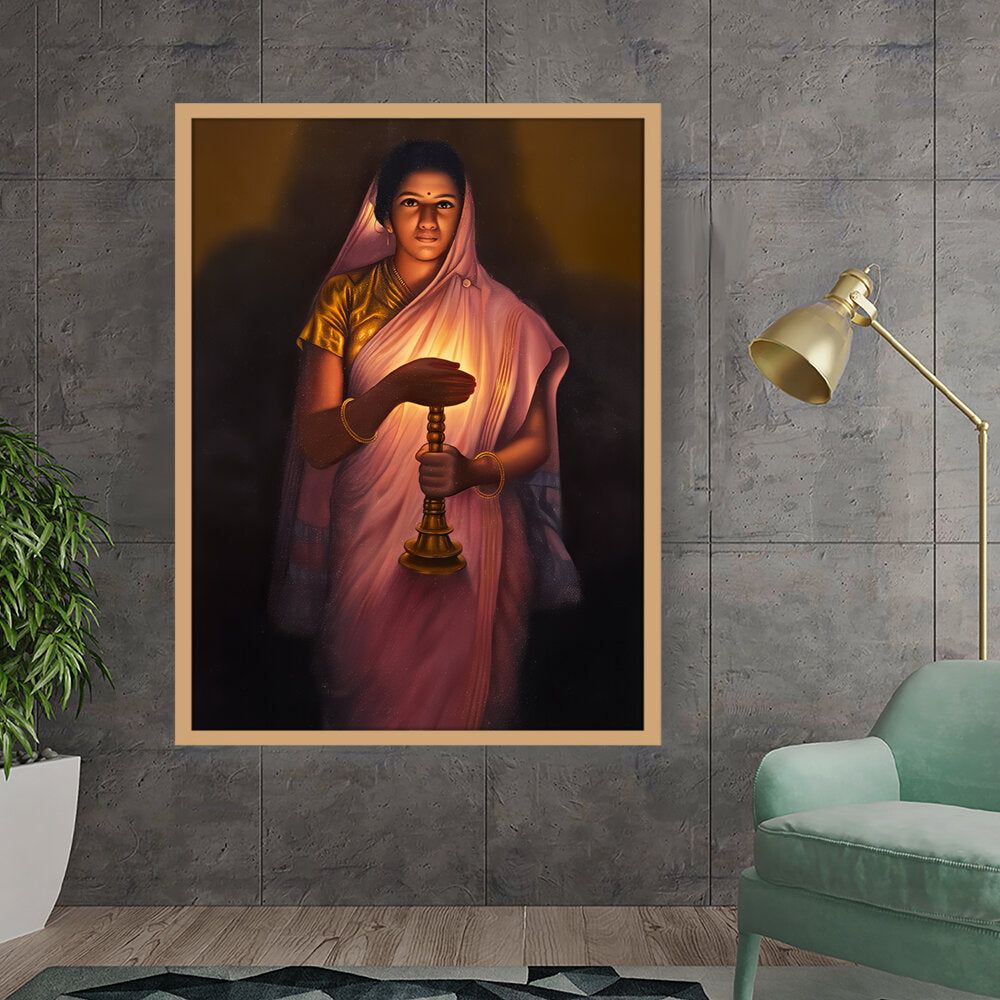 The painting is admired for Haldankarƒ??s exceptional skill in capturing the delicate glow of the lamp.