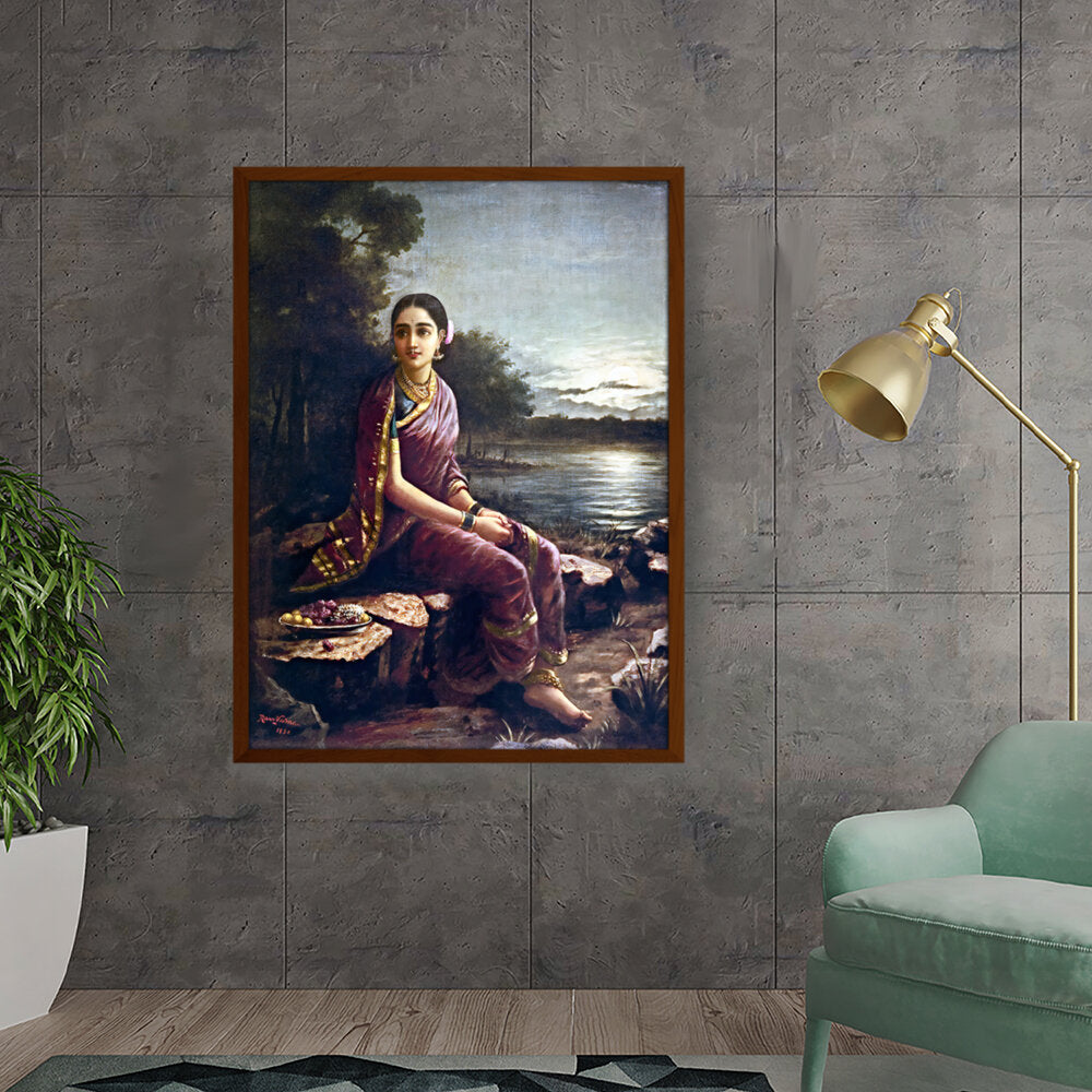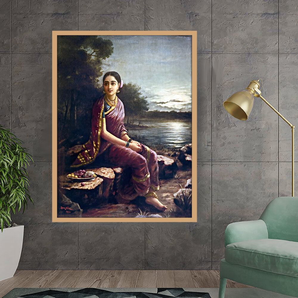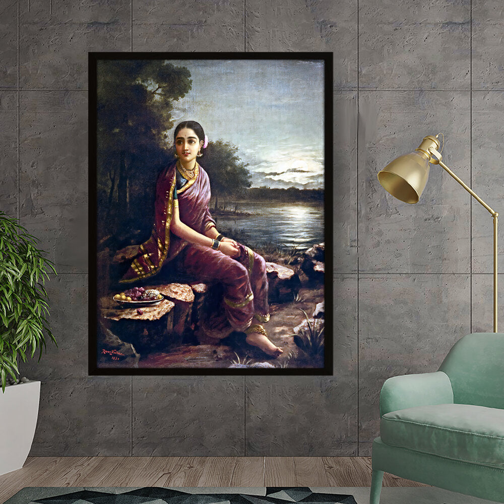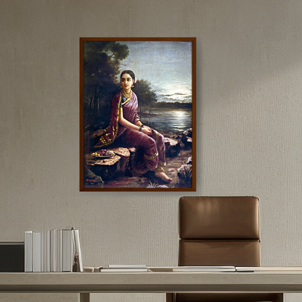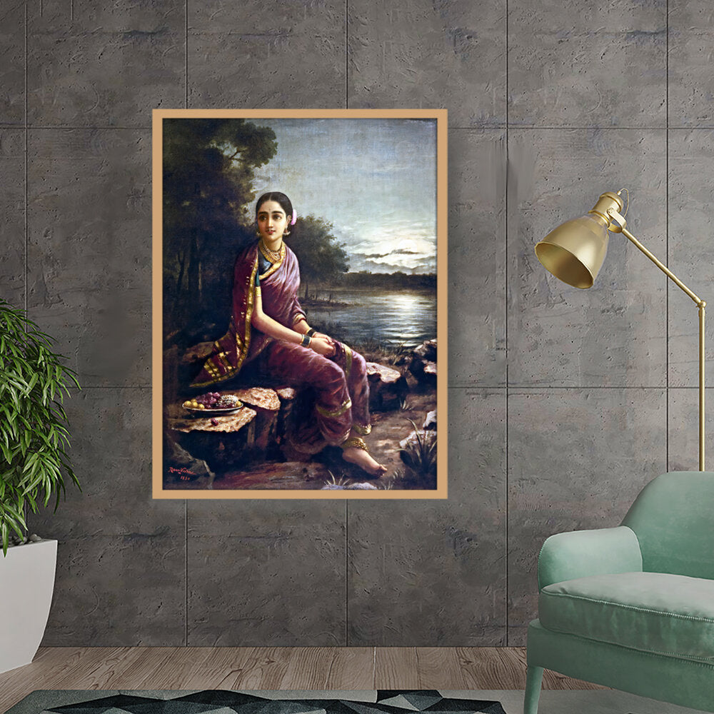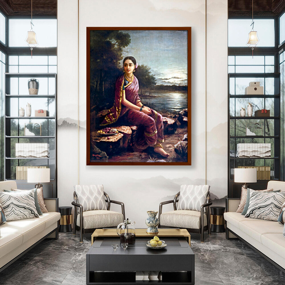 The painting depicts Radha, a central figure in Hindu mythology known for her unconditional love and devotion to Krishna. In "Radha by the Moonlight,"