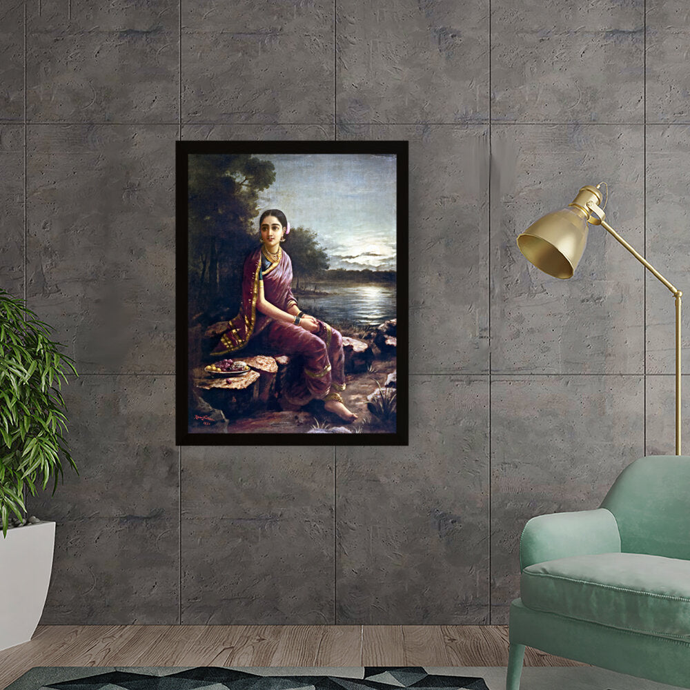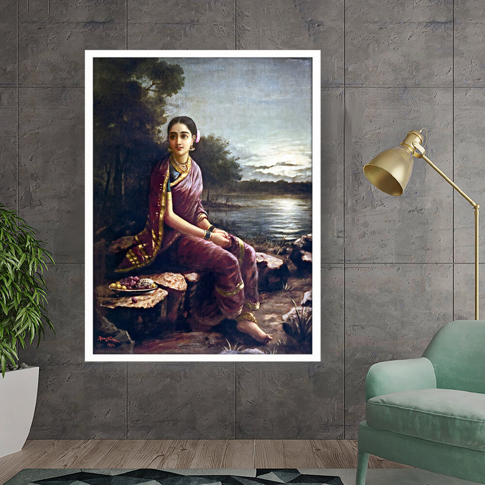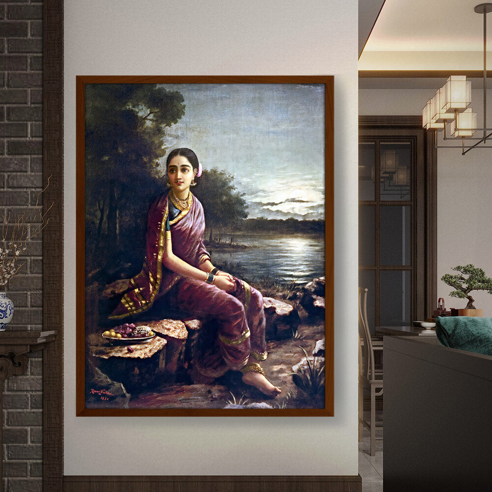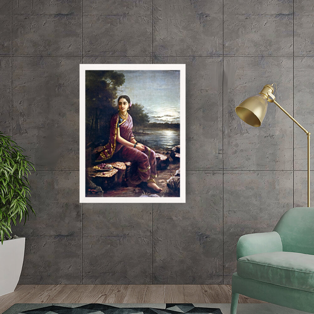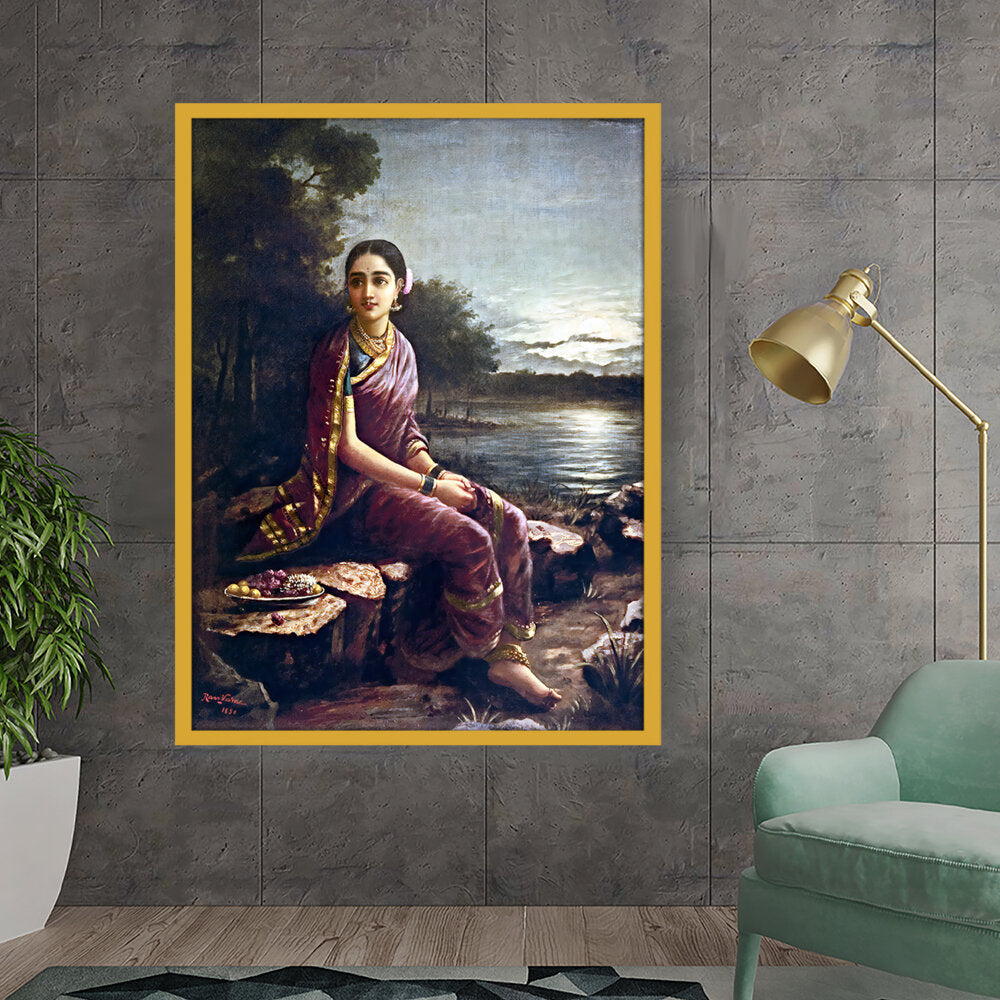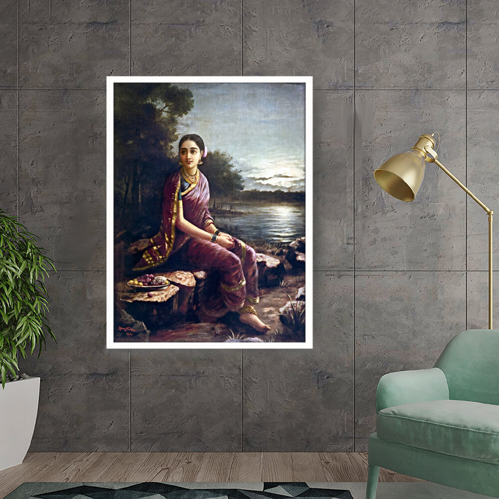 The painting depicts Radha, a central figure in Hindu mythology known for her unconditional love and devotion to Krishna. In "Radha by the Moonlight,"