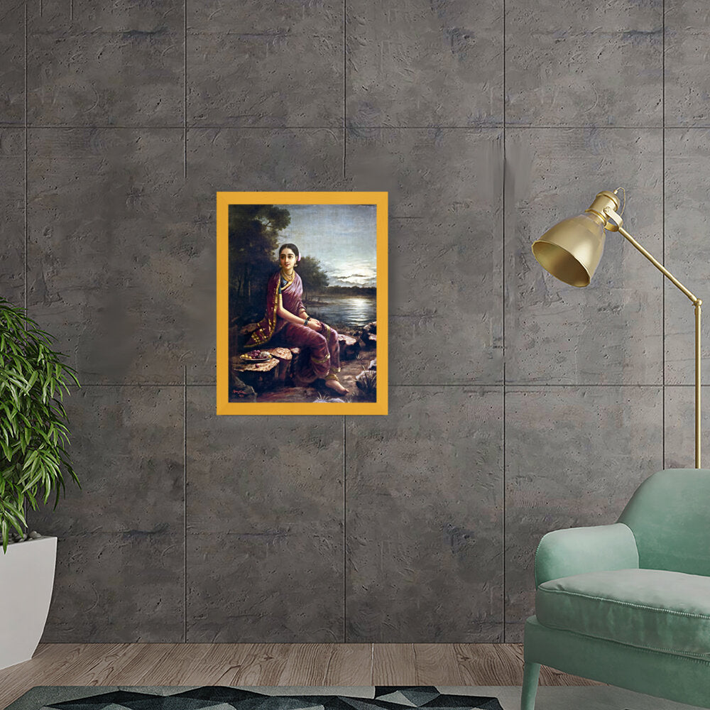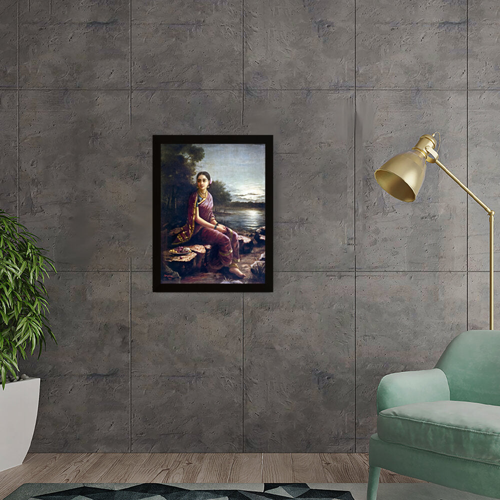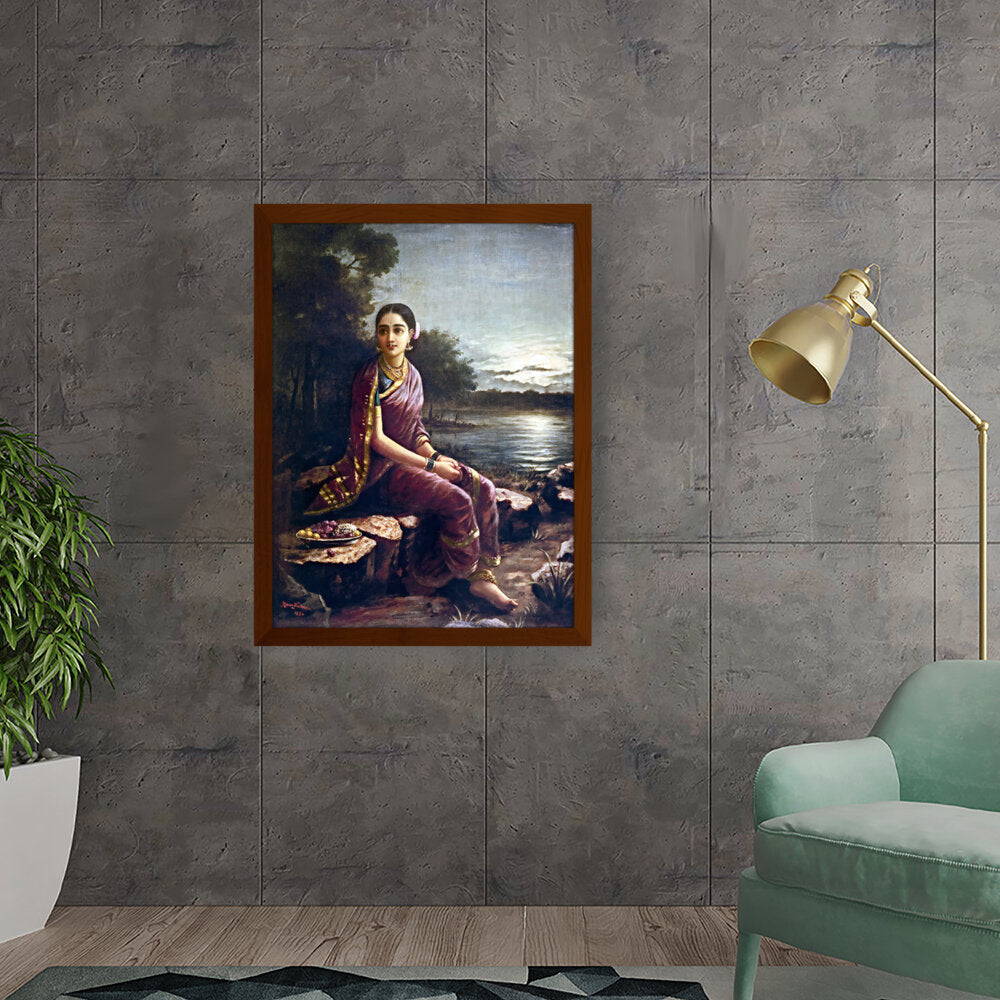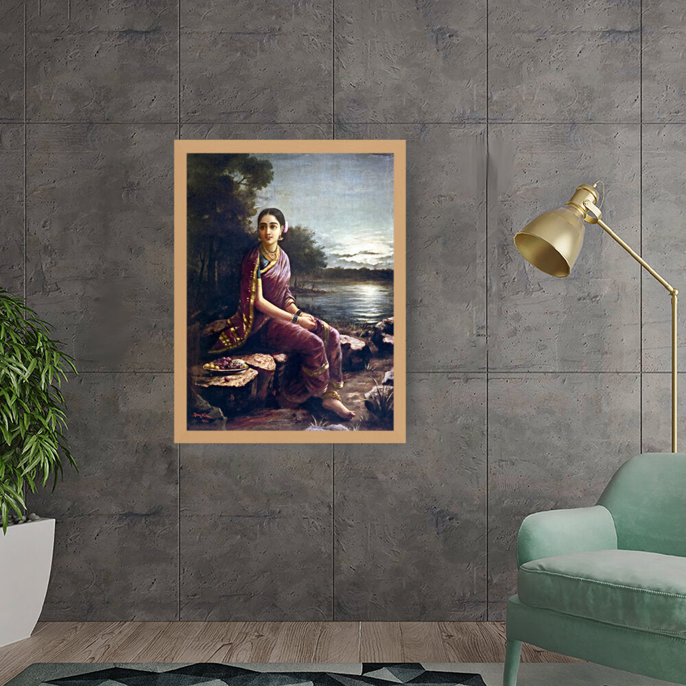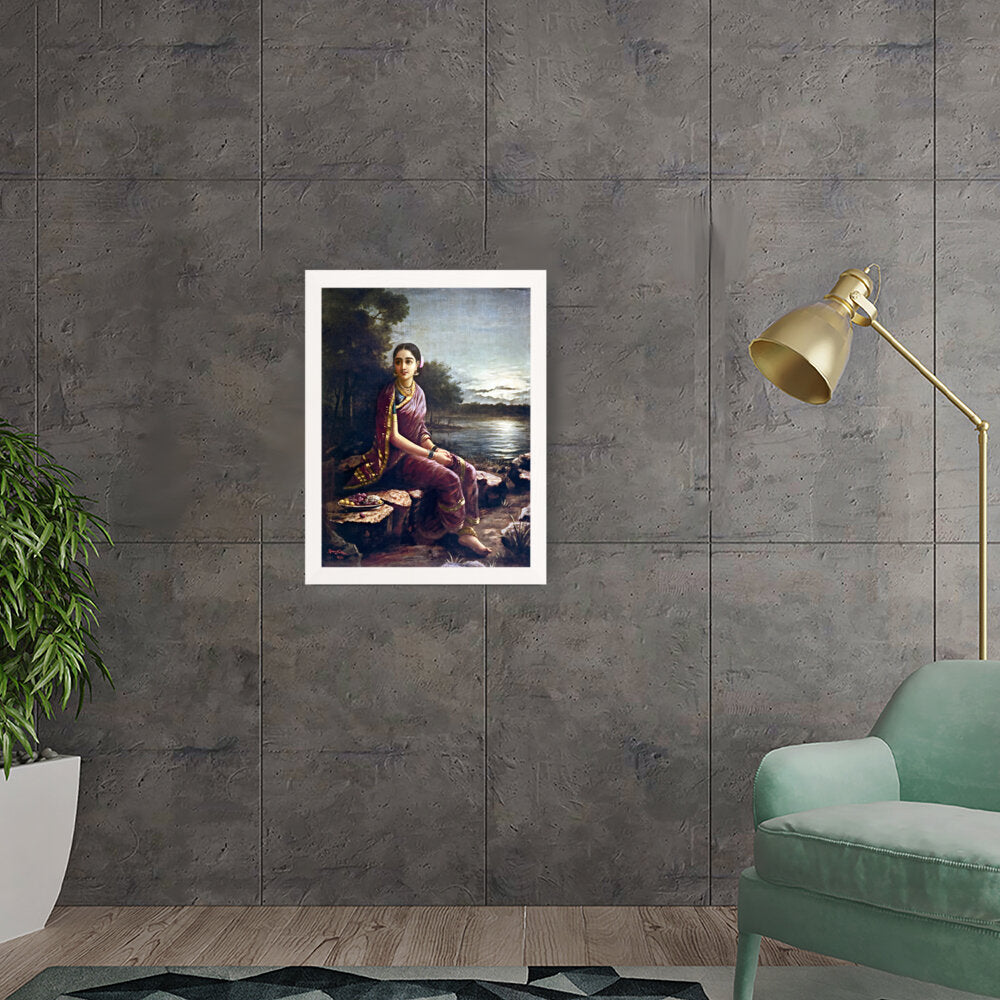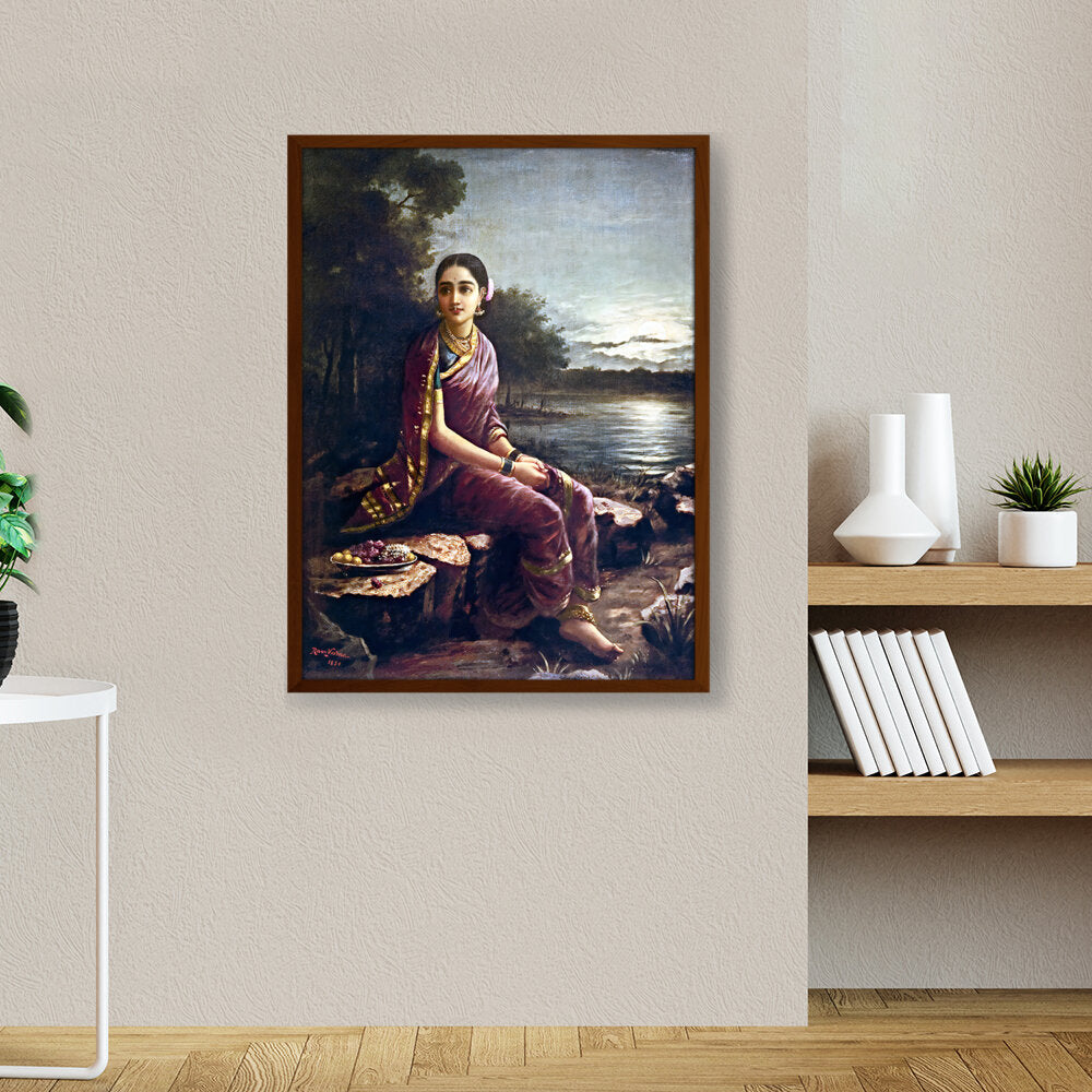 The painting depicts Radha, a central figure in Hindu mythology known for her unconditional love and devotion to Krishna. In "Radha by the Moonlight,"
