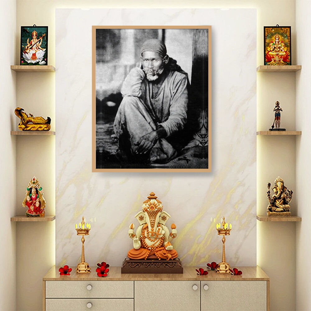 The photograph of Shirdi Sai Baba sitting on a stone with his right leg crossed over his left knee is one of the most widely recognized images of him.