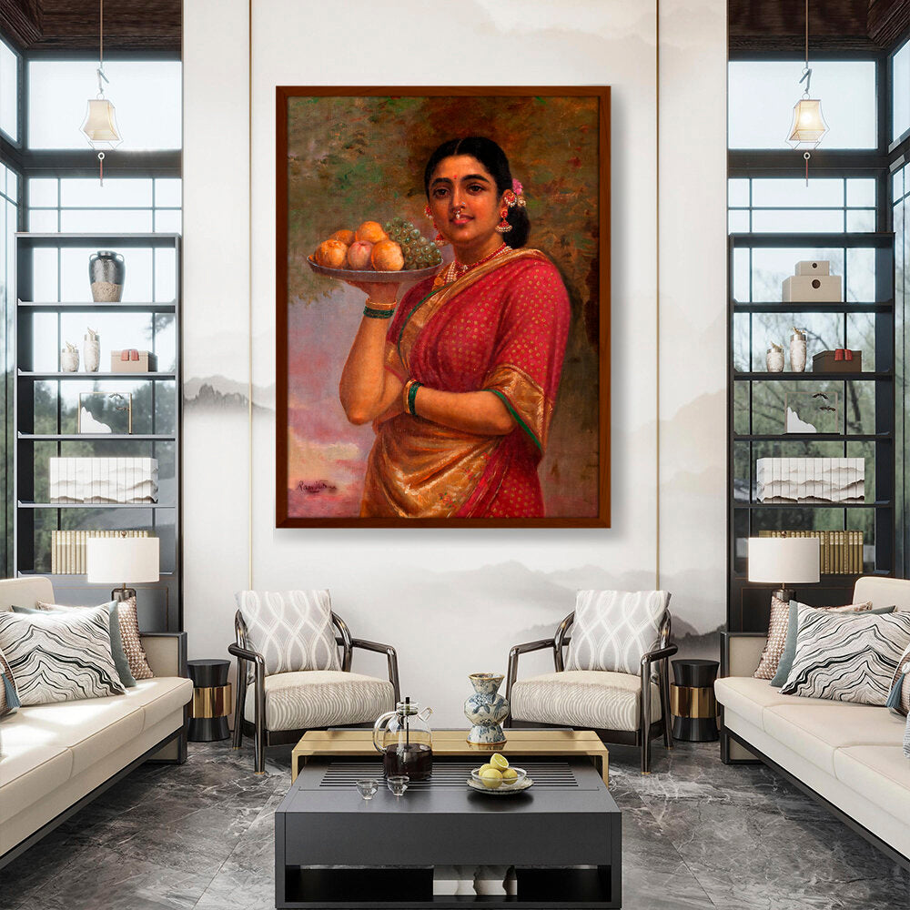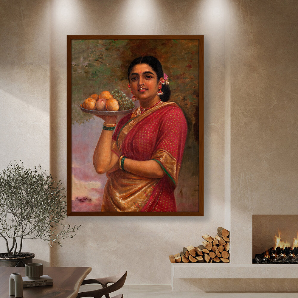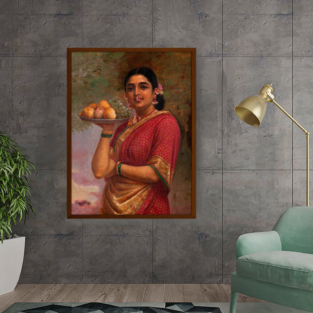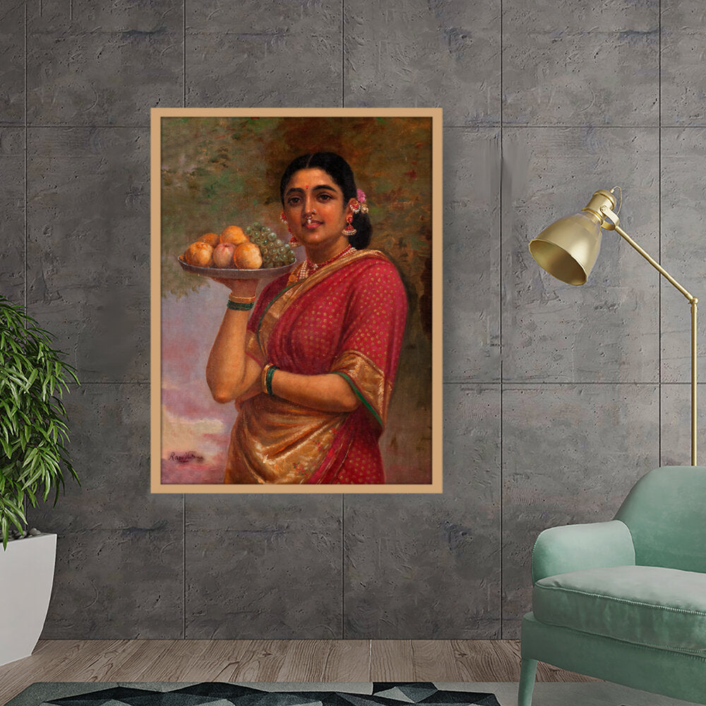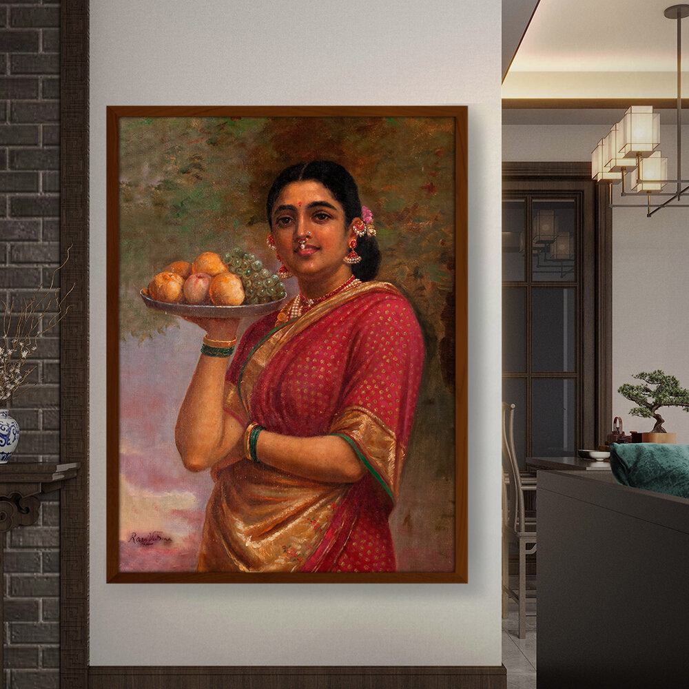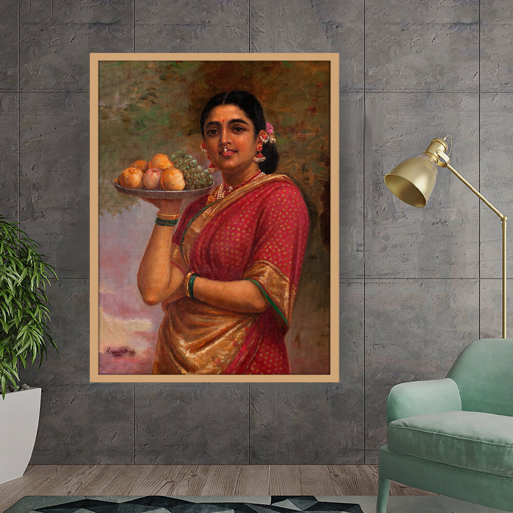 "The Maharashtrian Lady" is one of the famous works by Raja Ravi Varma, a celebrated Indian painter known for his mastery in combining European techniques with traditional Indian themes.