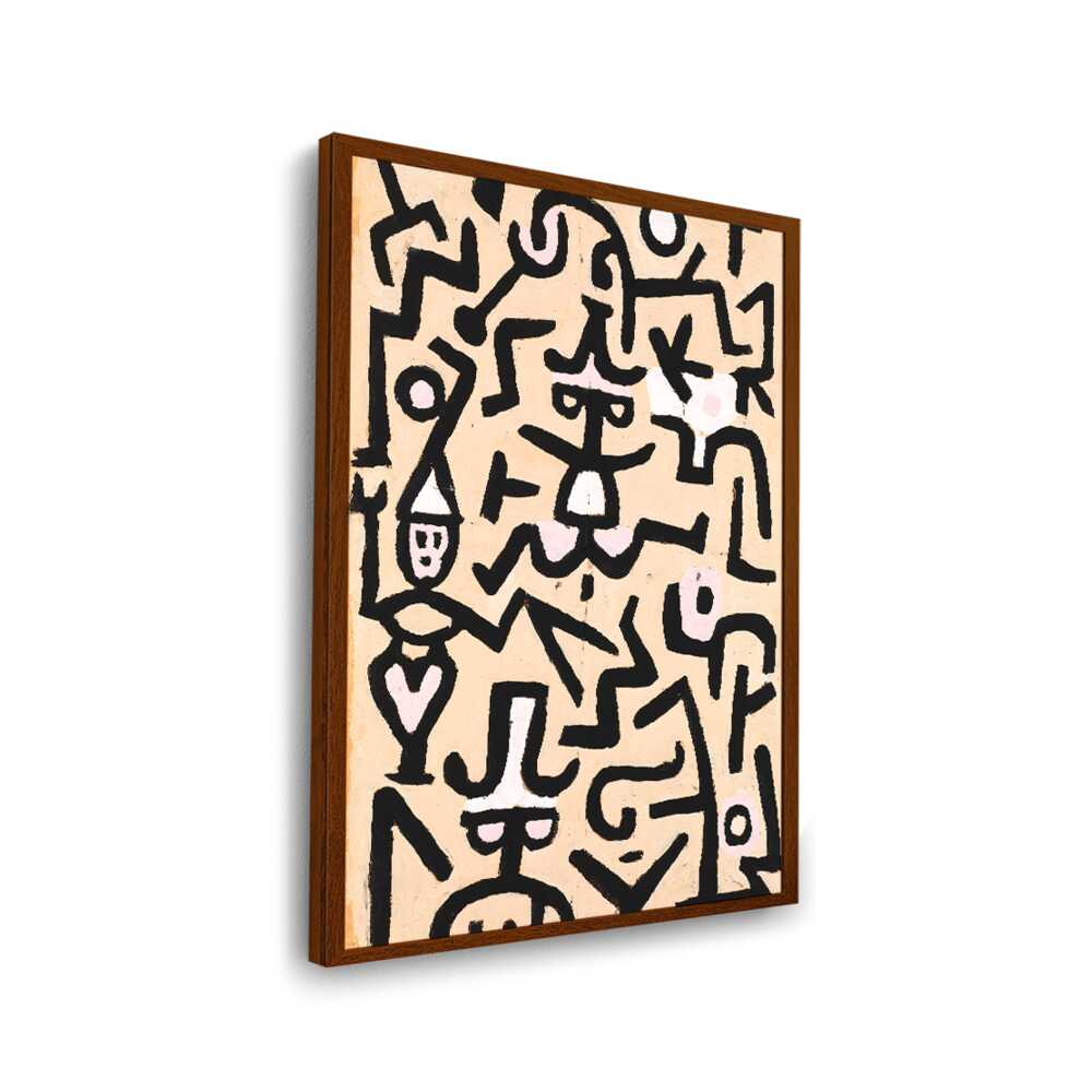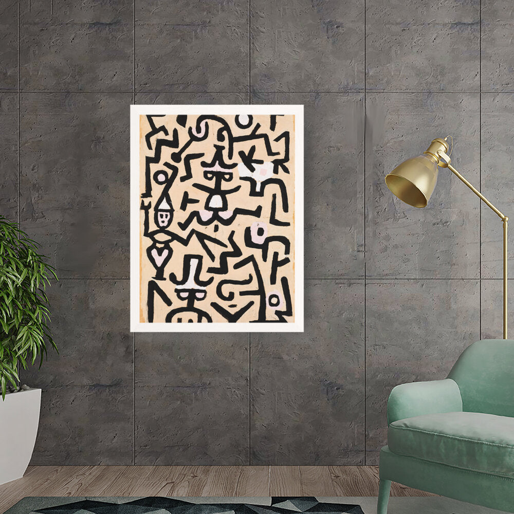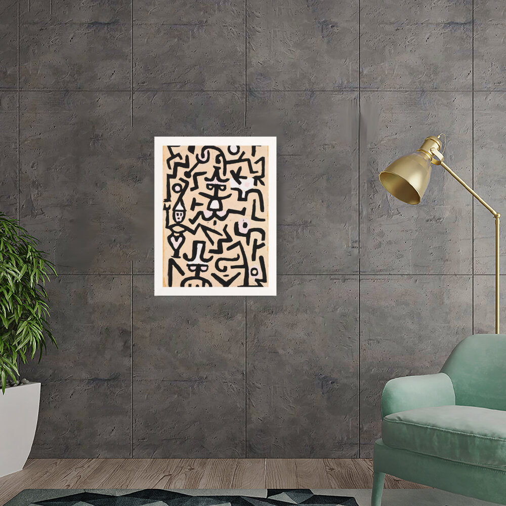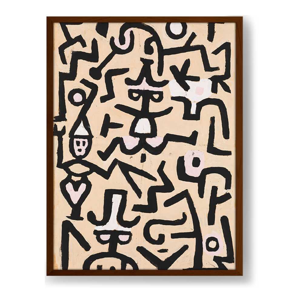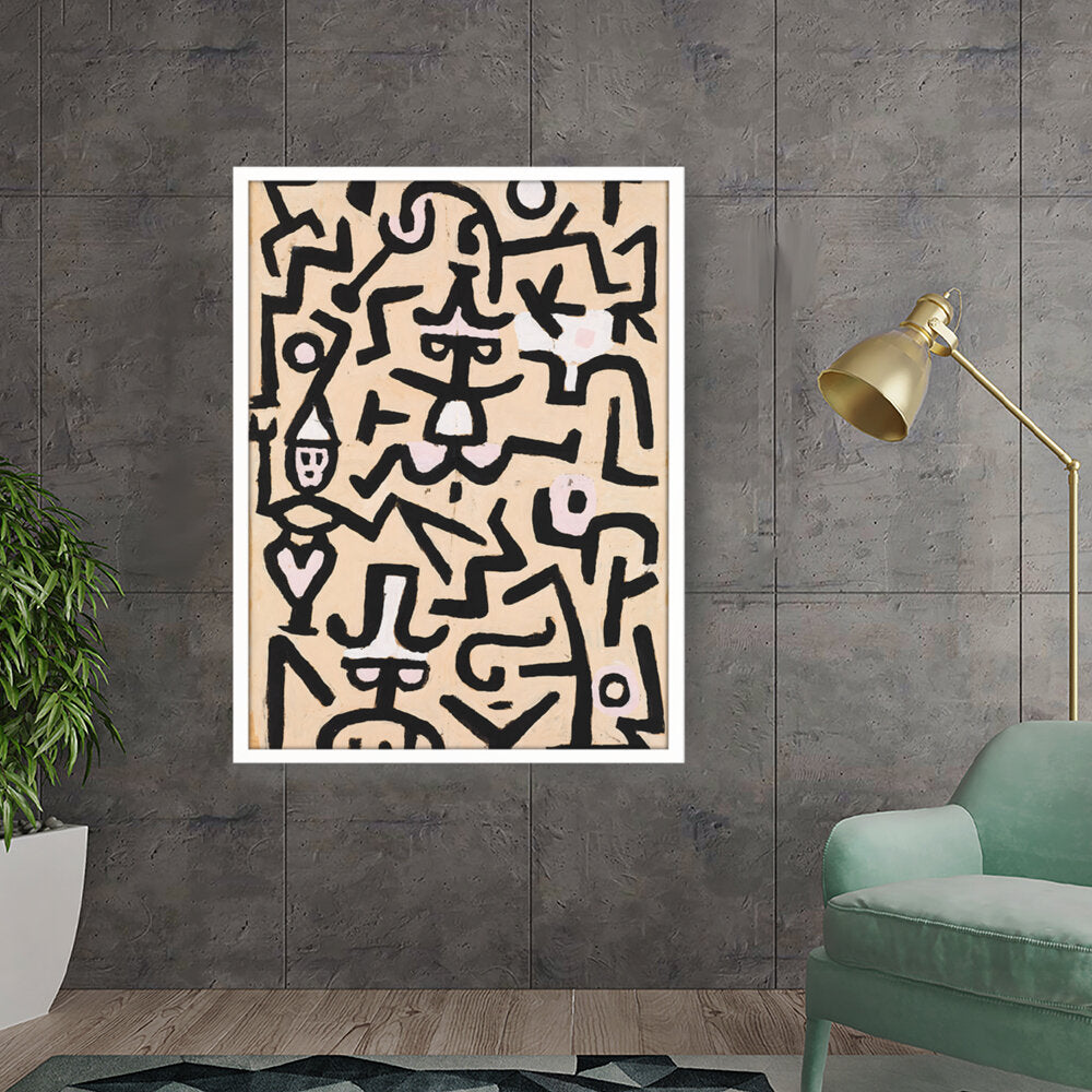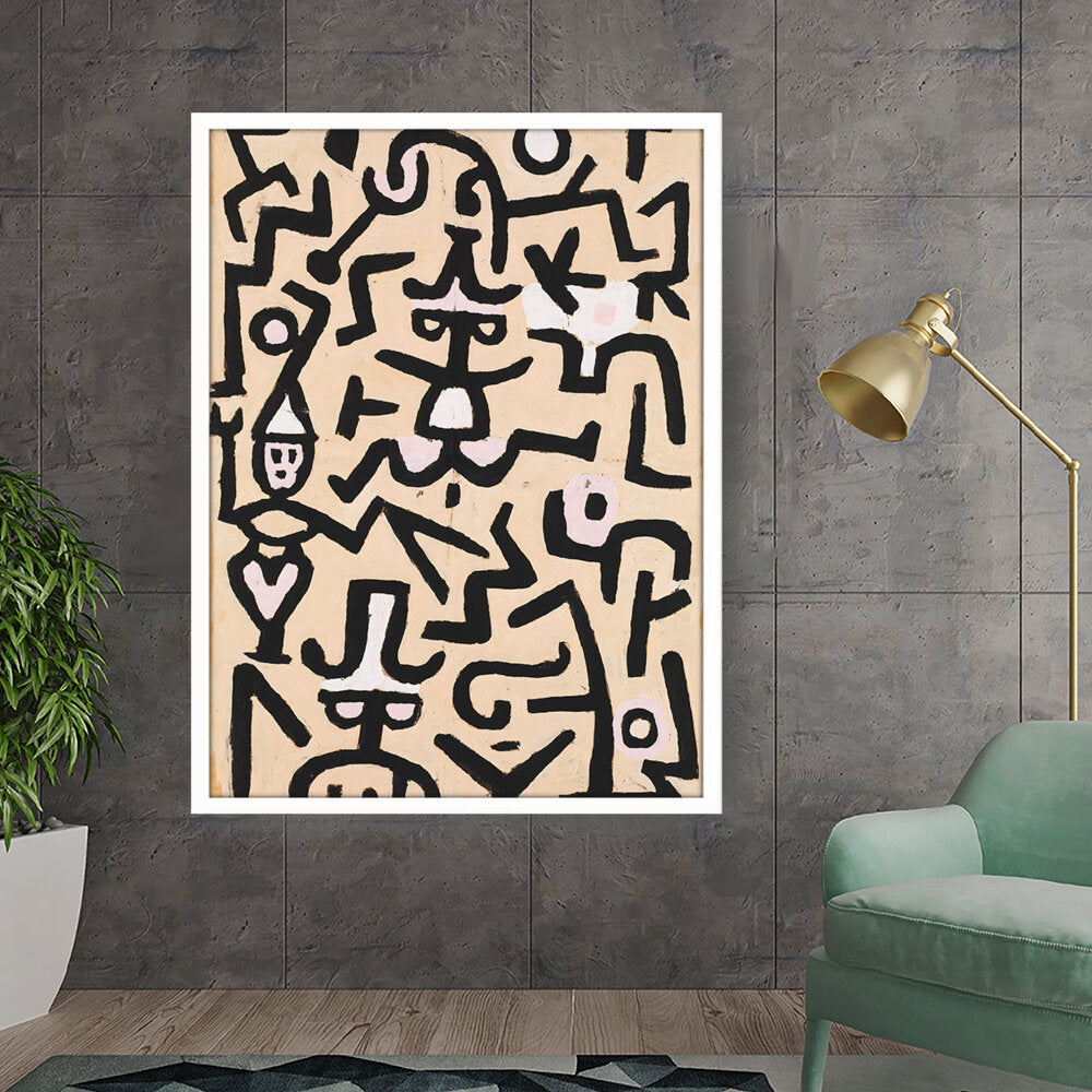 This vibrant abstract painting features a dynamic interplay of shapes and colors. The bold black lines against a warm background evoke a sense of movement and energy, making it a striking addition to any contemporary space.