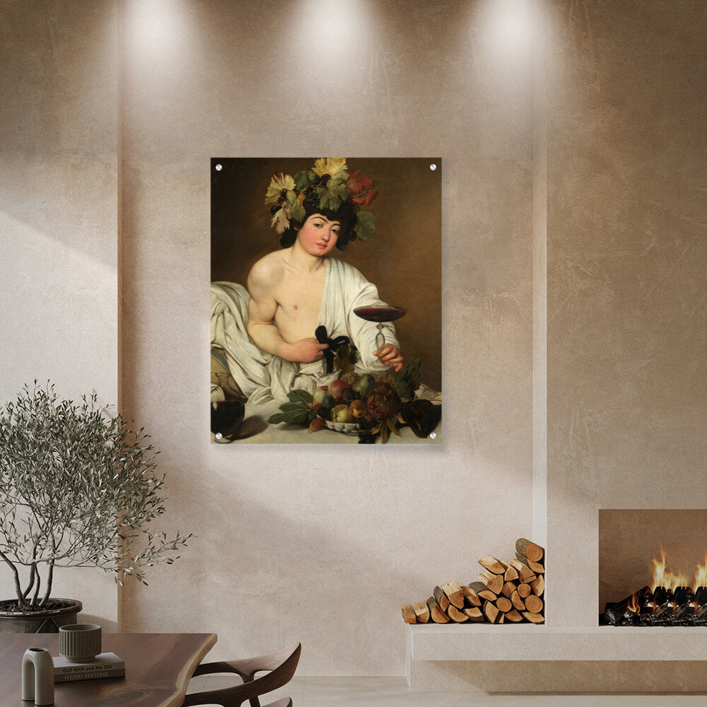 This classic painting of Bacchus captures the essence of indulgence and celebration through its rich colors and detailed textures. The depiction of fruits and wine highlights the theme of abundance and festivity, making it a vibrant addition to any social space.