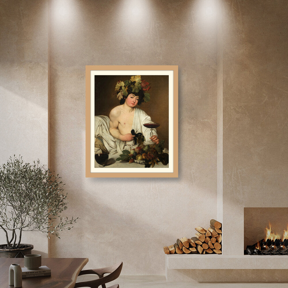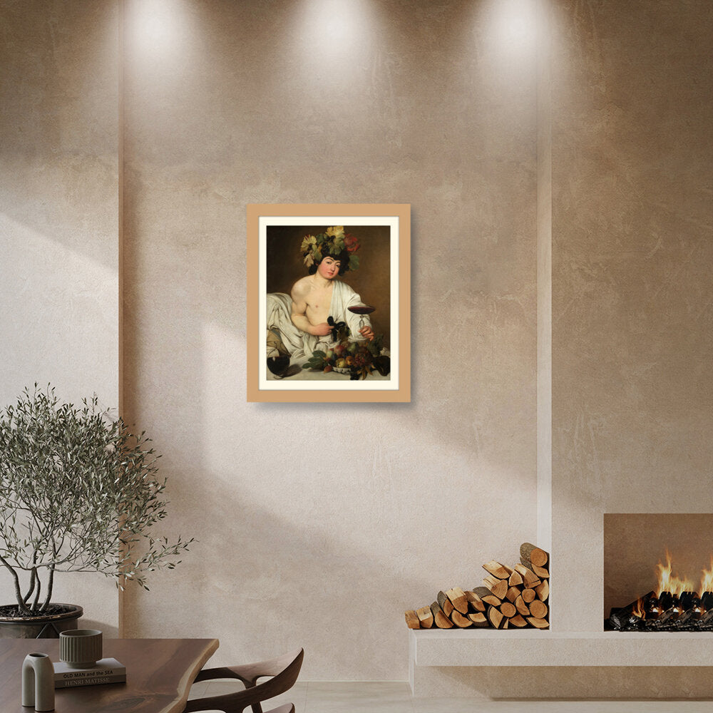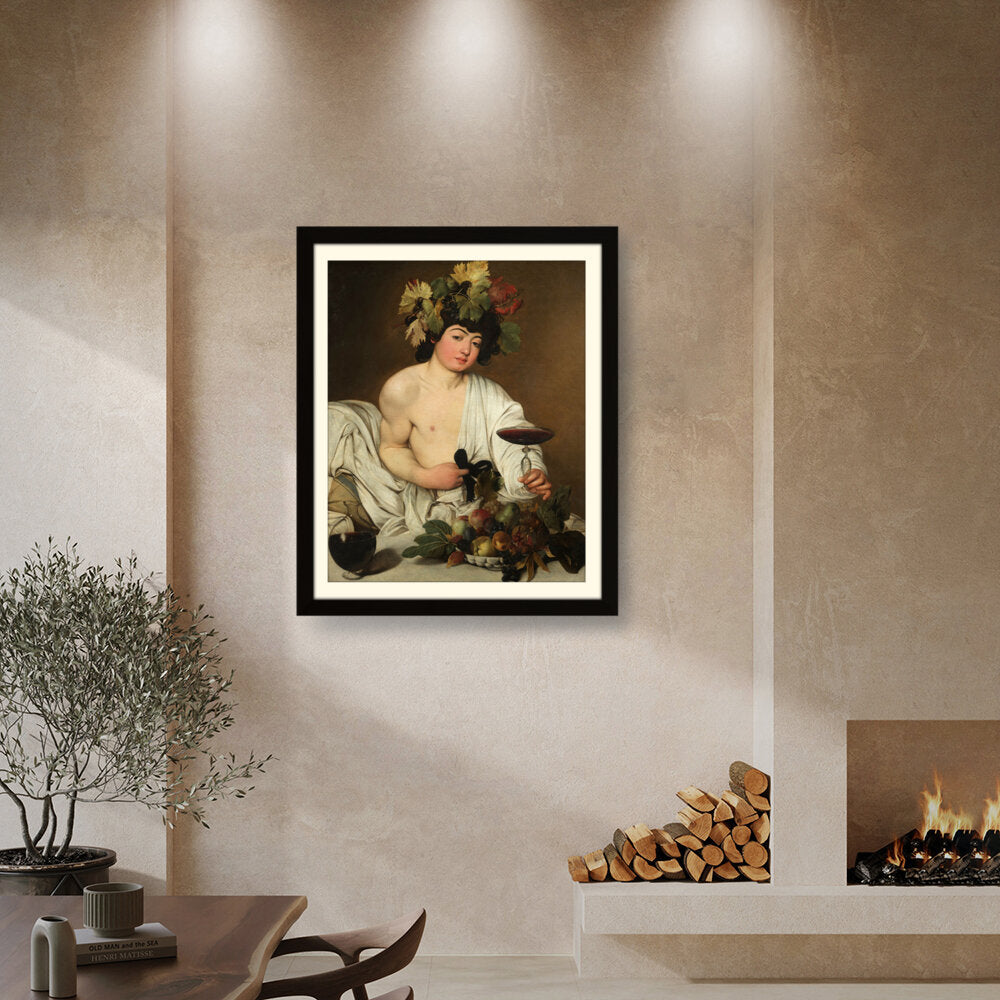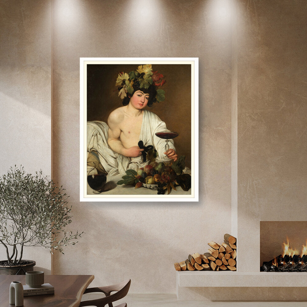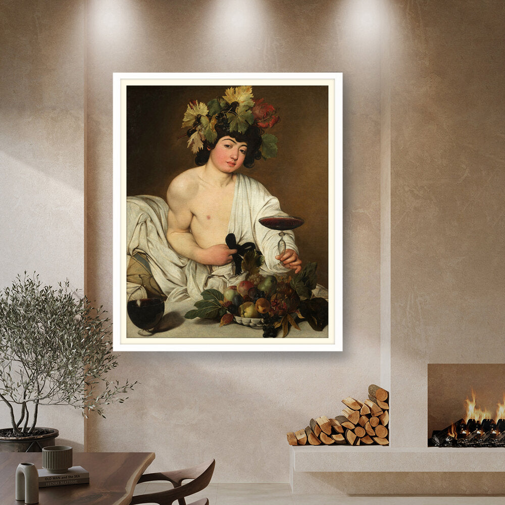 This classic painting of Bacchus captures the essence of indulgence and celebration through its rich colors and detailed textures. The depiction of fruits and wine highlights the theme of abundance and festivity, making it a vibrant addition to any social space.