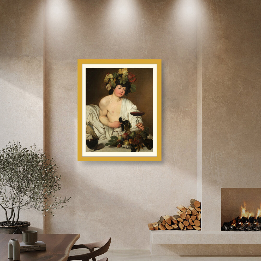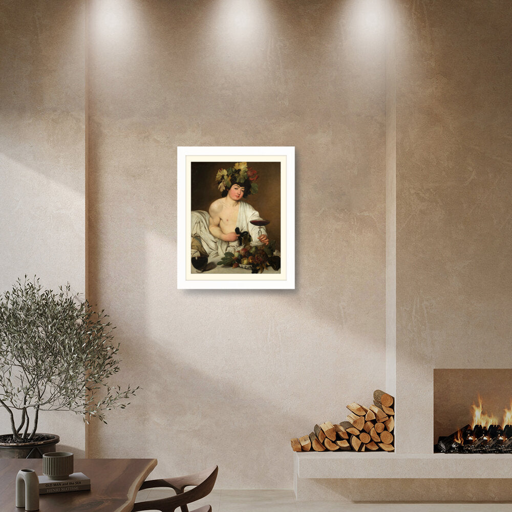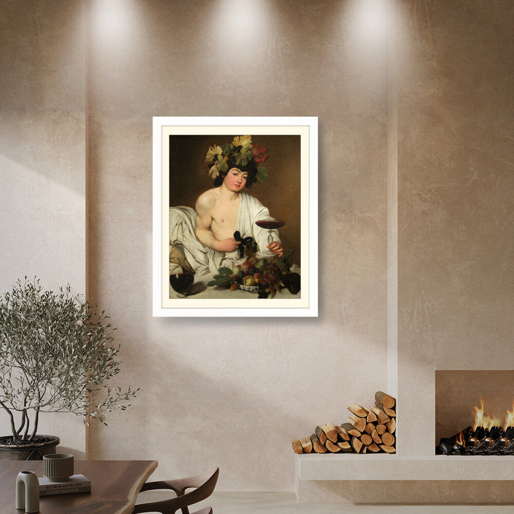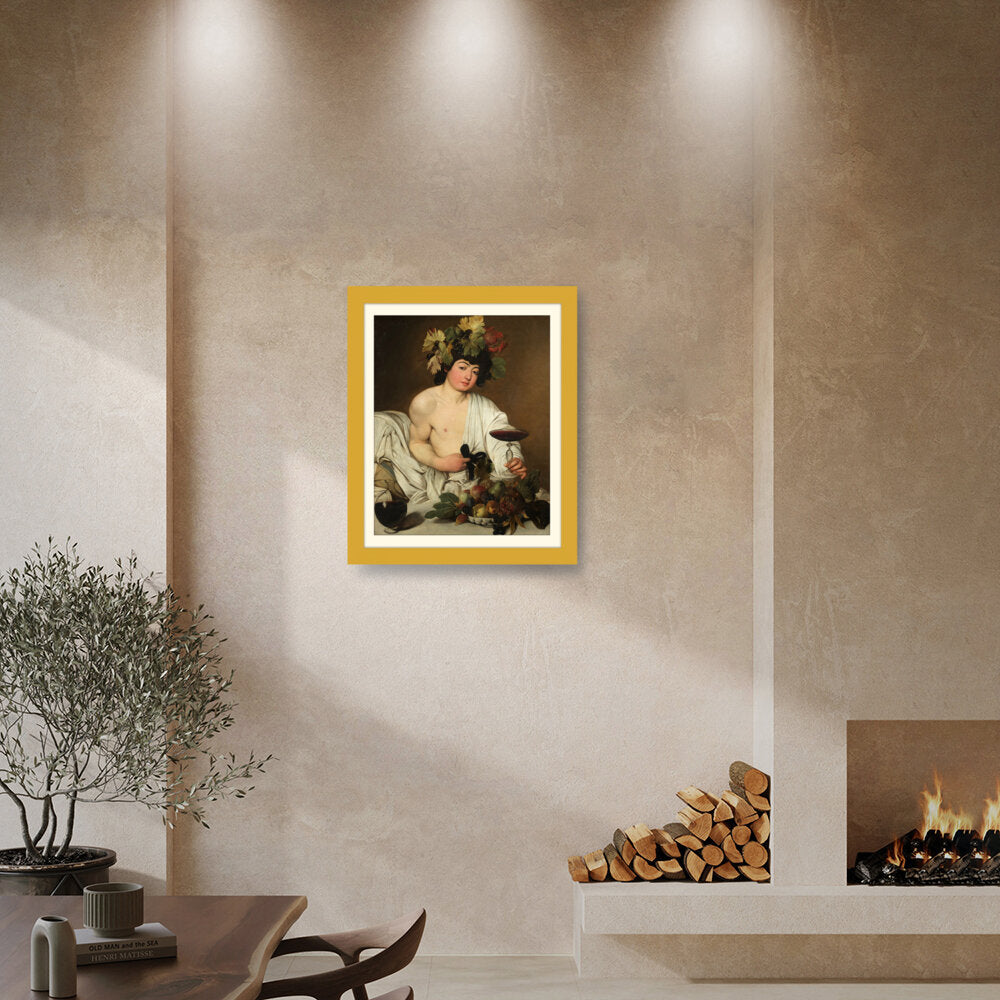 This classic painting of Bacchus captures the essence of indulgence and celebration through its rich colors and detailed textures. The depiction of fruits and wine highlights the theme of abundance and festivity, making it a vibrant addition to any social space.