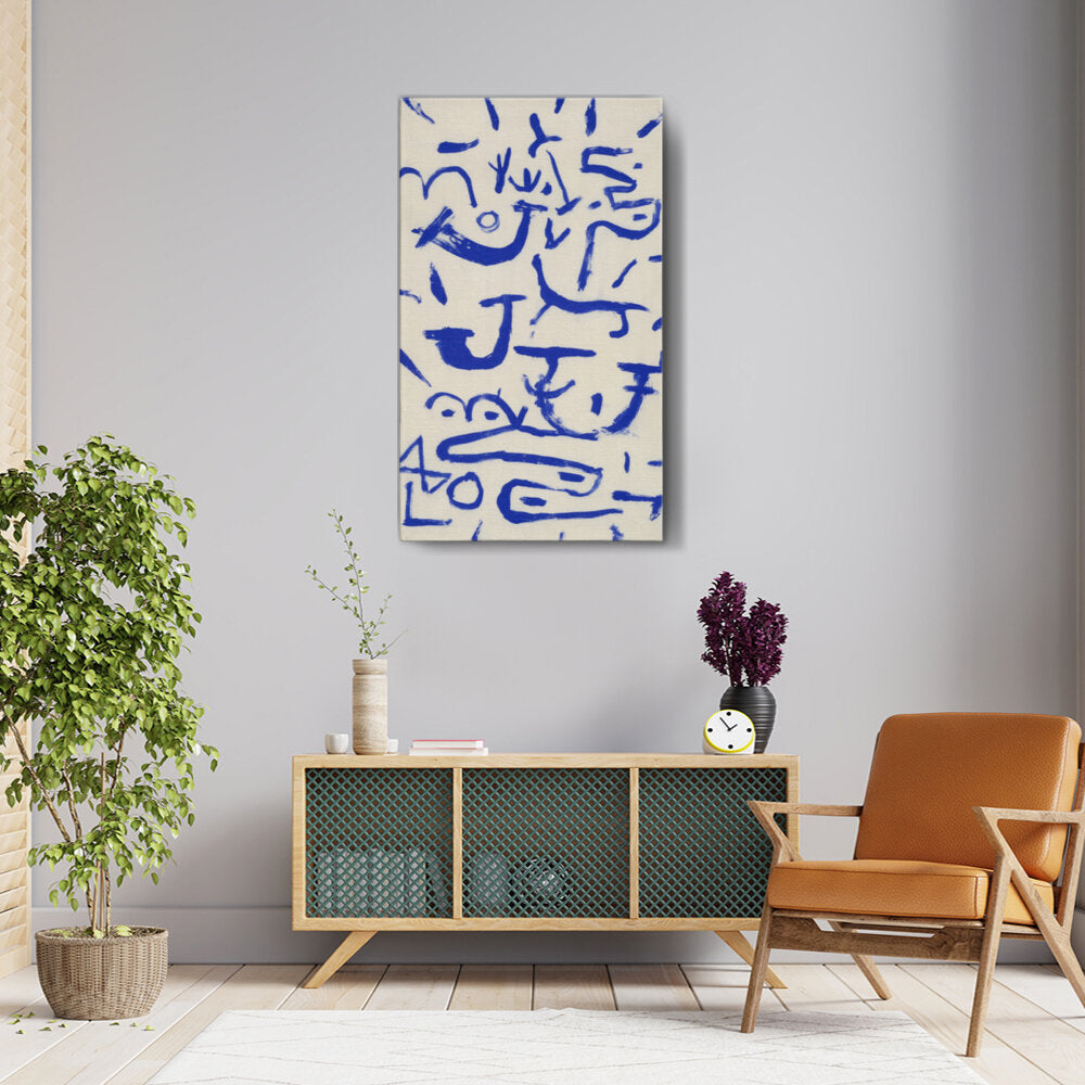 This artwork features bold blue strokes against a neutral background, creating a dynamic visual experience. Its abstract forms invite interpretation and engage the viewer's imagination. Perfect for modern and creative spaces.