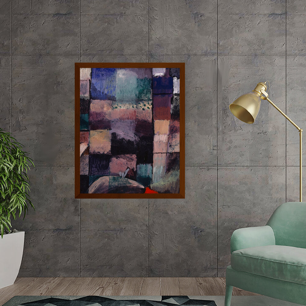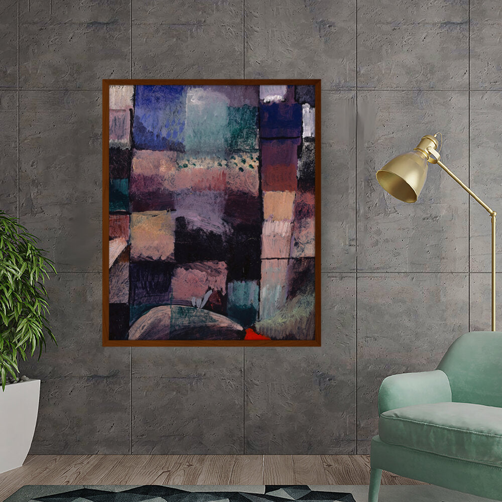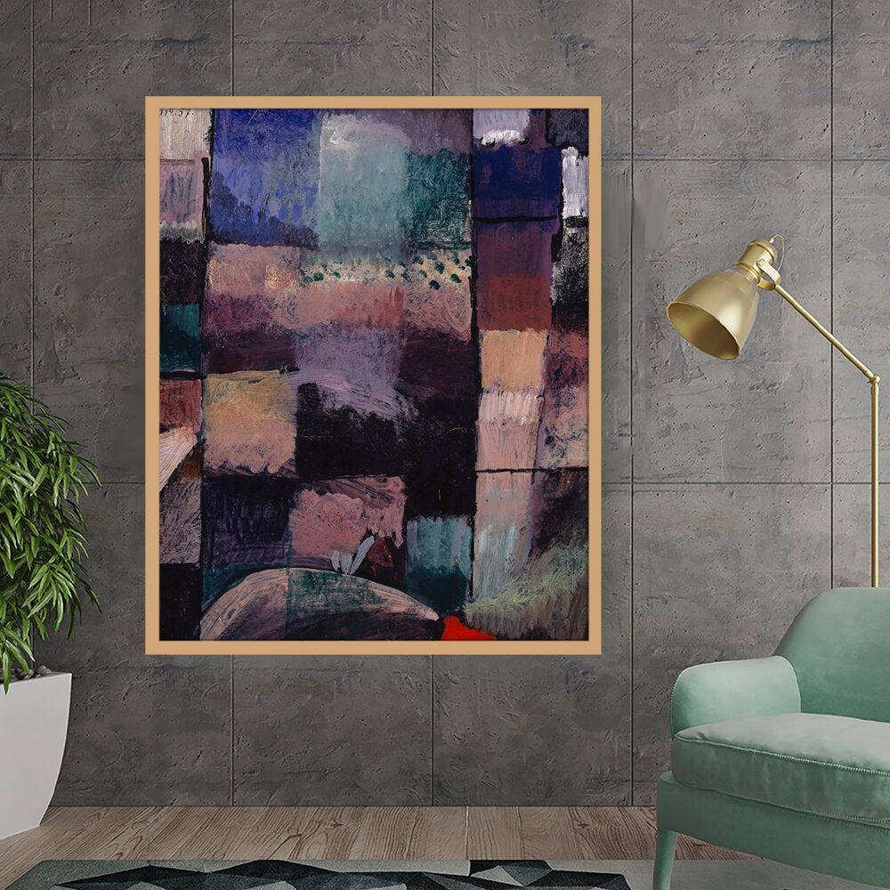 This vibrant abstract piece features a dynamic composition filled with rich textures and colors. The interplay of shapes creates a visually stimulating experience, perfect for contemporary spaces.