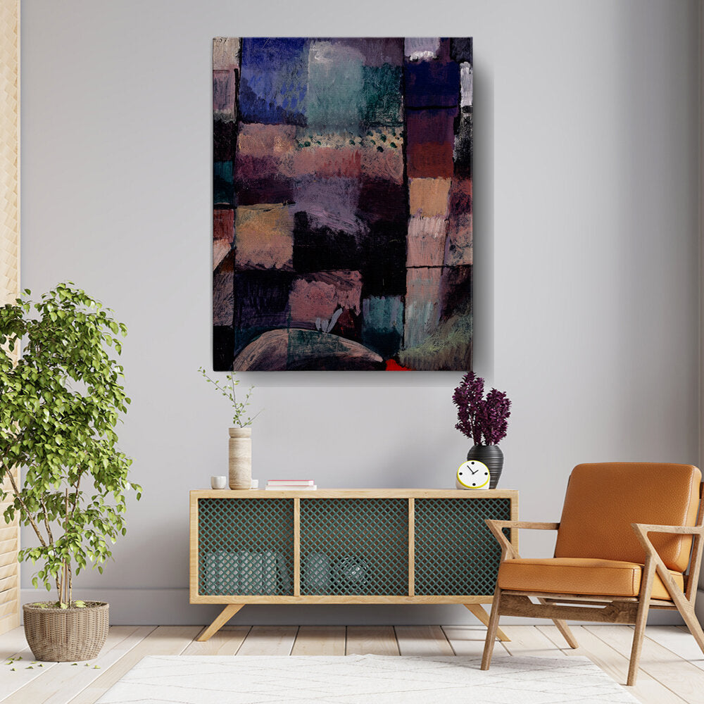 This vibrant abstract piece features a dynamic composition filled with rich textures and colors. The interplay of shapes creates a visually stimulating experience, perfect for contemporary spaces.