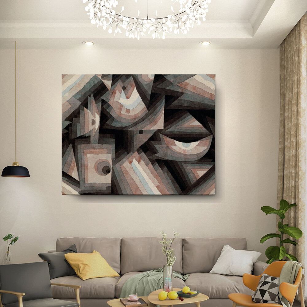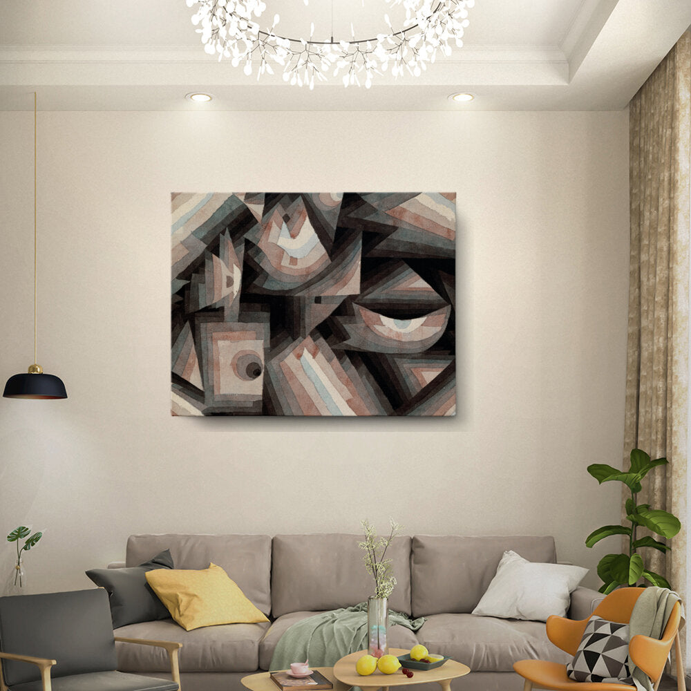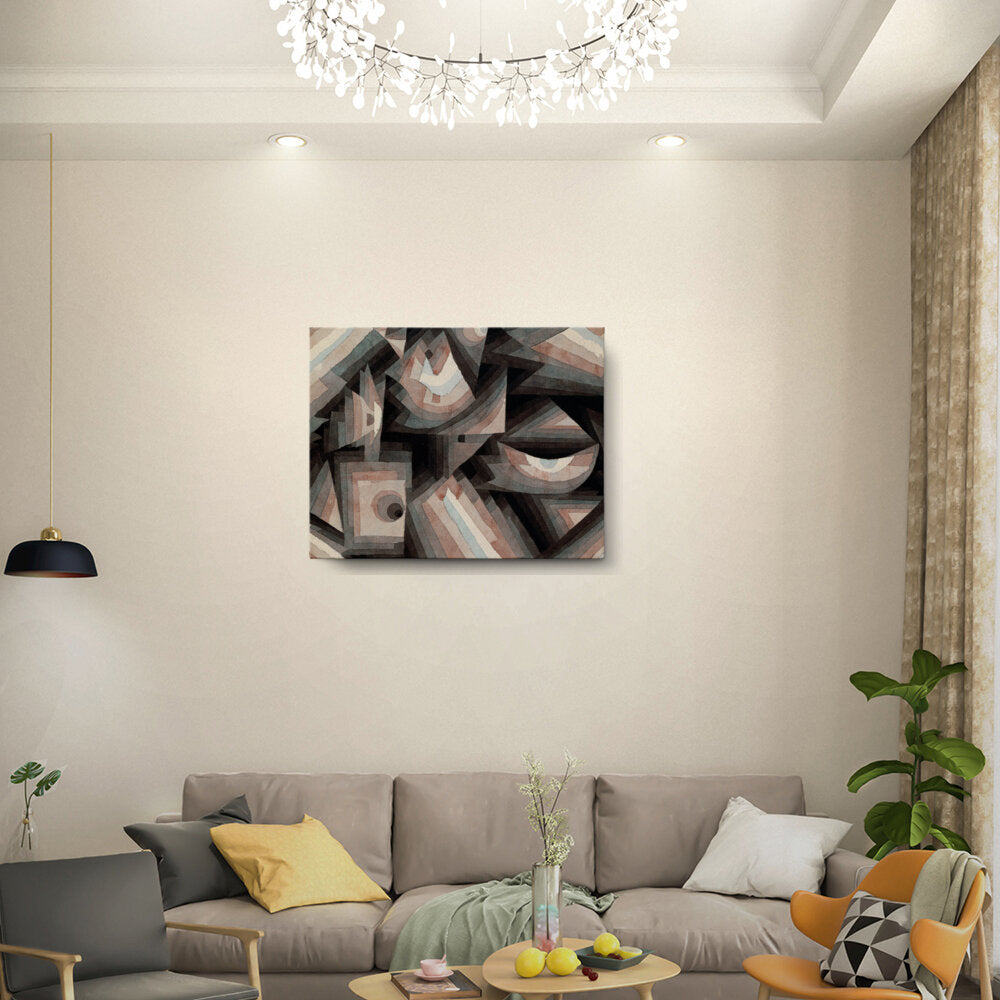 This abstract watercolor piece features intricate geometric shapes and soothing colors, creating a sense of depth and dimension. Its modern aesthetic makes it a perfect addition to contemporary living spaces.