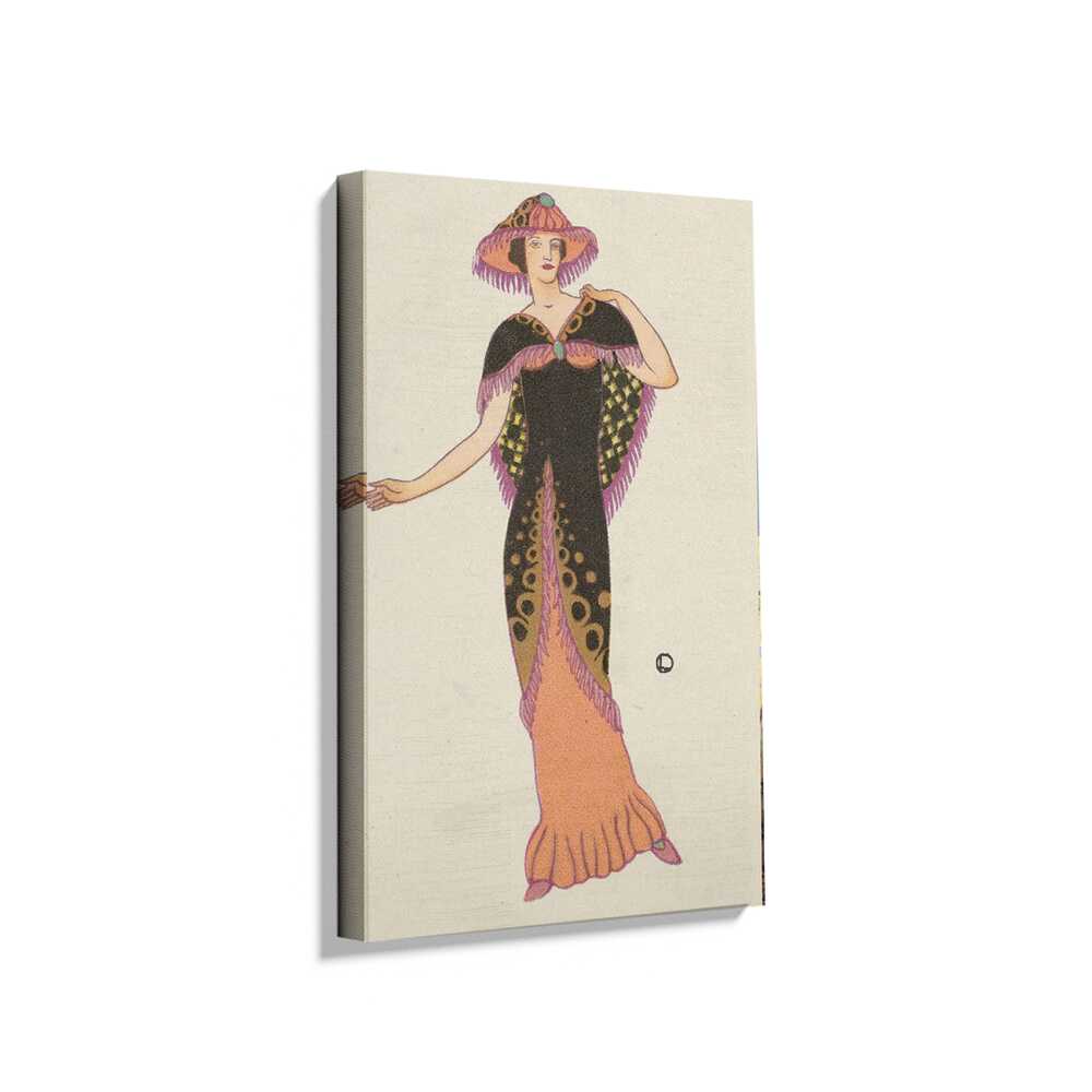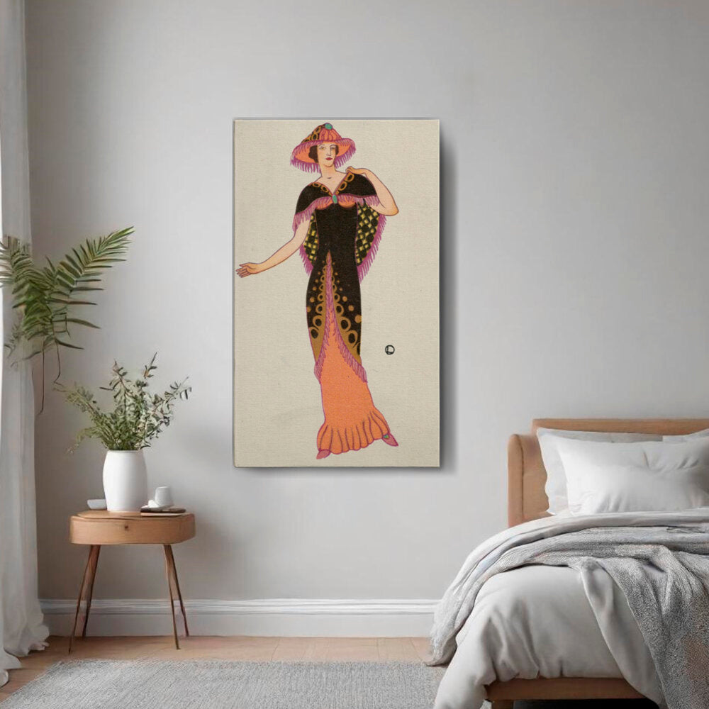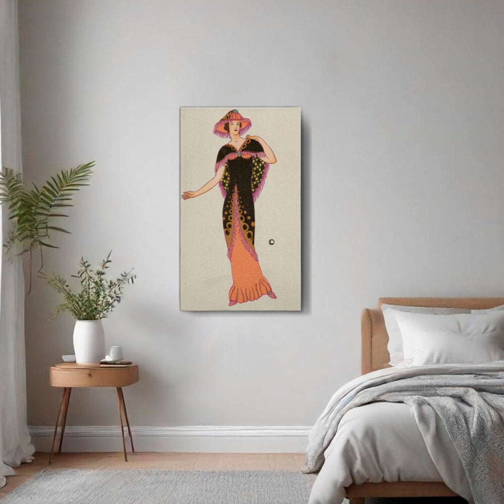 This charming illustration features a stylish lady in a vintage dress, embodying the elegance of a bygone era. Perfect for adding a touch of sophistication to your space, this artwork captures the essence of classic fashion aesthetics.