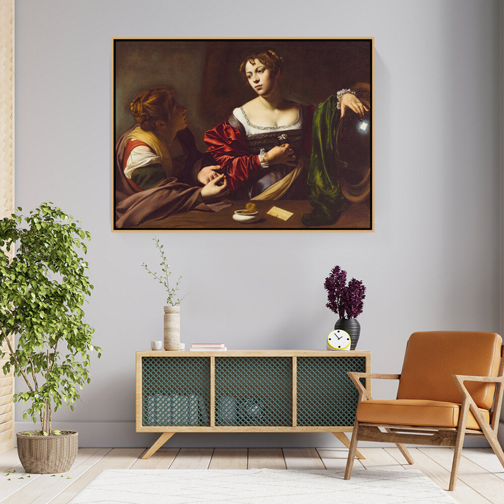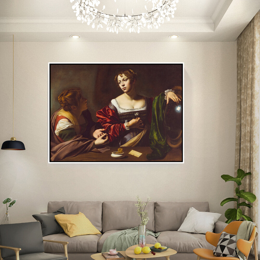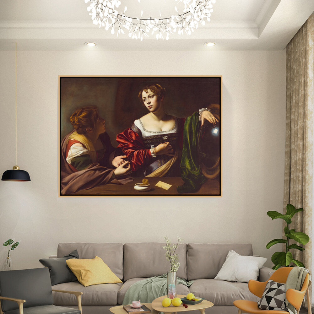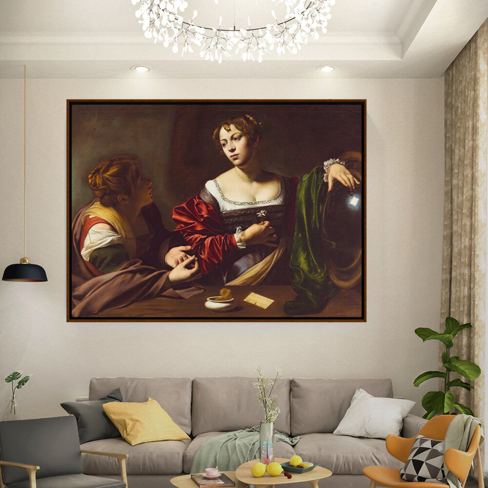 This exquisite painting captures the nuanced expressions of two women, showcasing the interplay of light and shadow. The attention to detail and rich colors evoke a sense of intrigue and emotion, making it a perfect statement piece for any art lover.