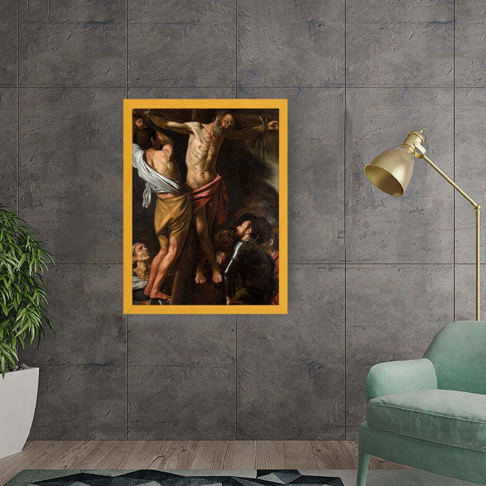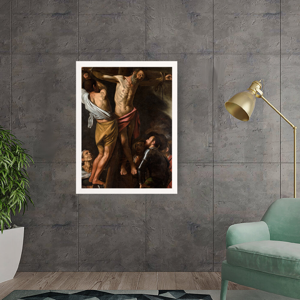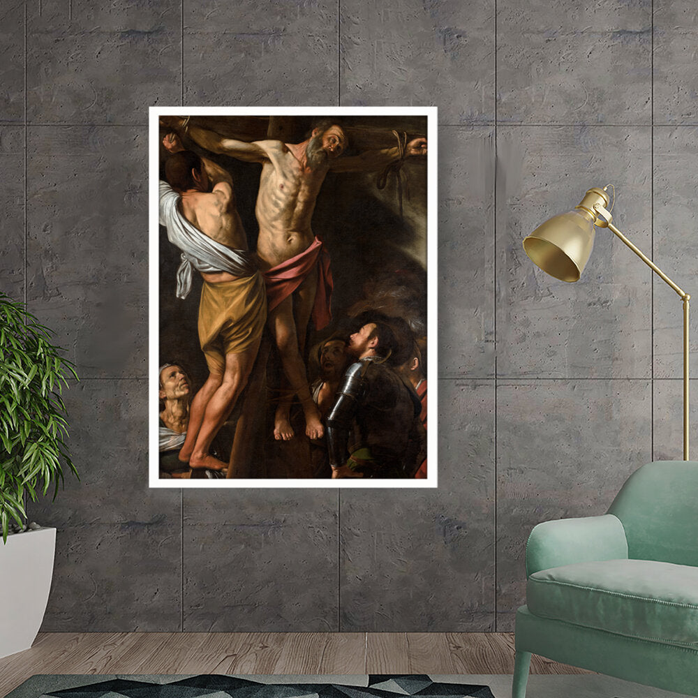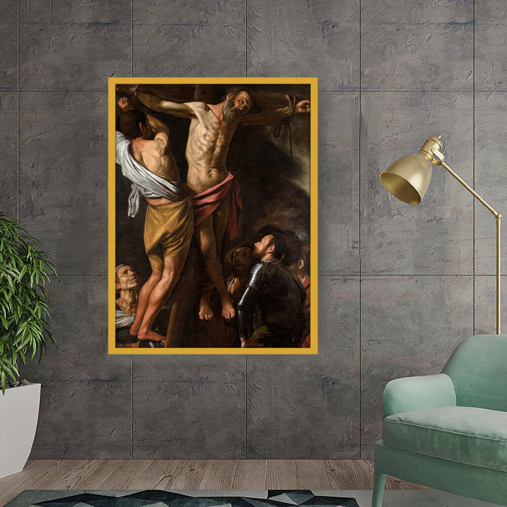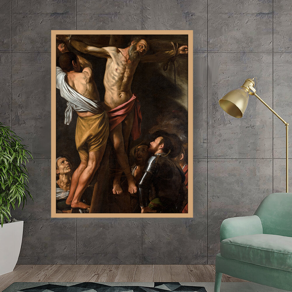 This powerful artwork depicts the crucifixion scene, capturing raw emotion and dramatic lighting. It presents the somber atmosphere surrounding one of history's most profound events. The intricate details and realism evoke a strong connection to the viewer.