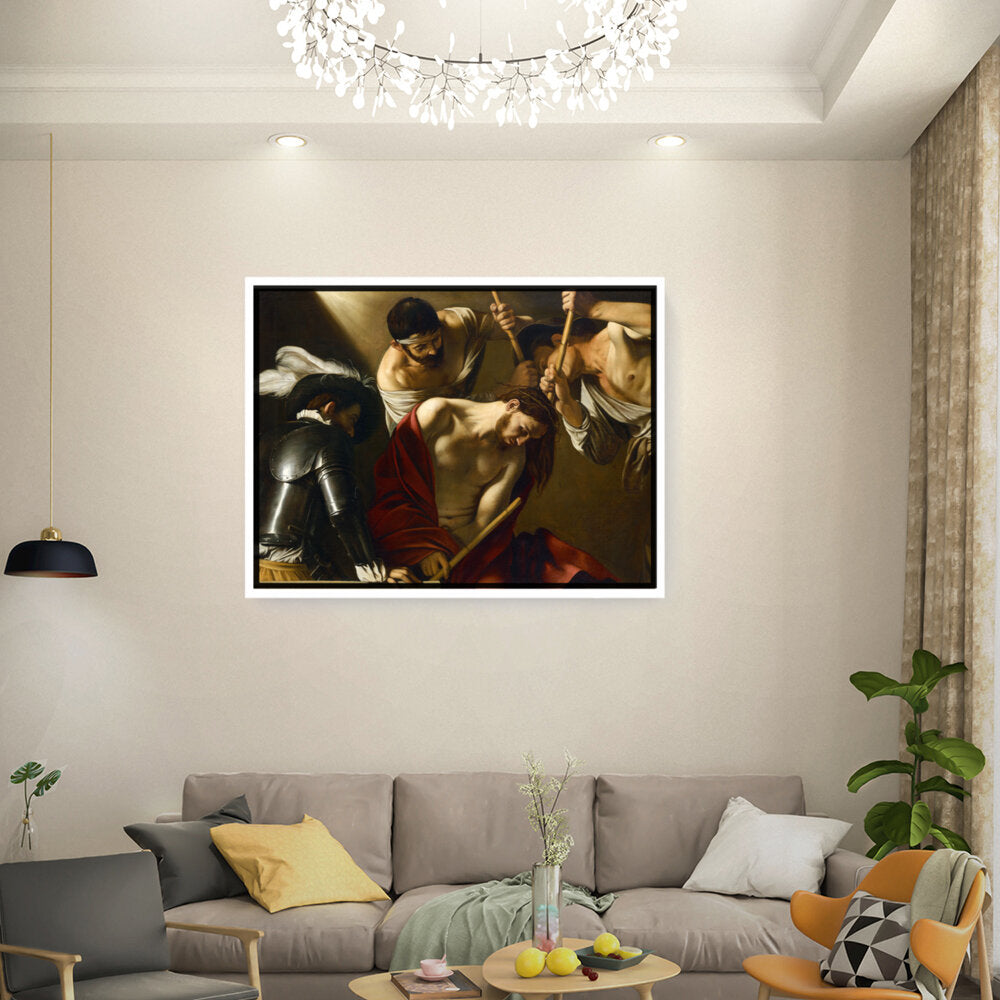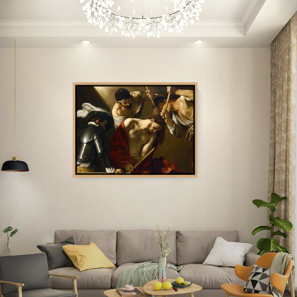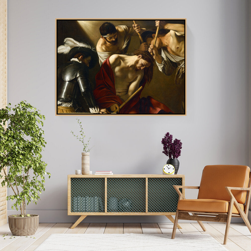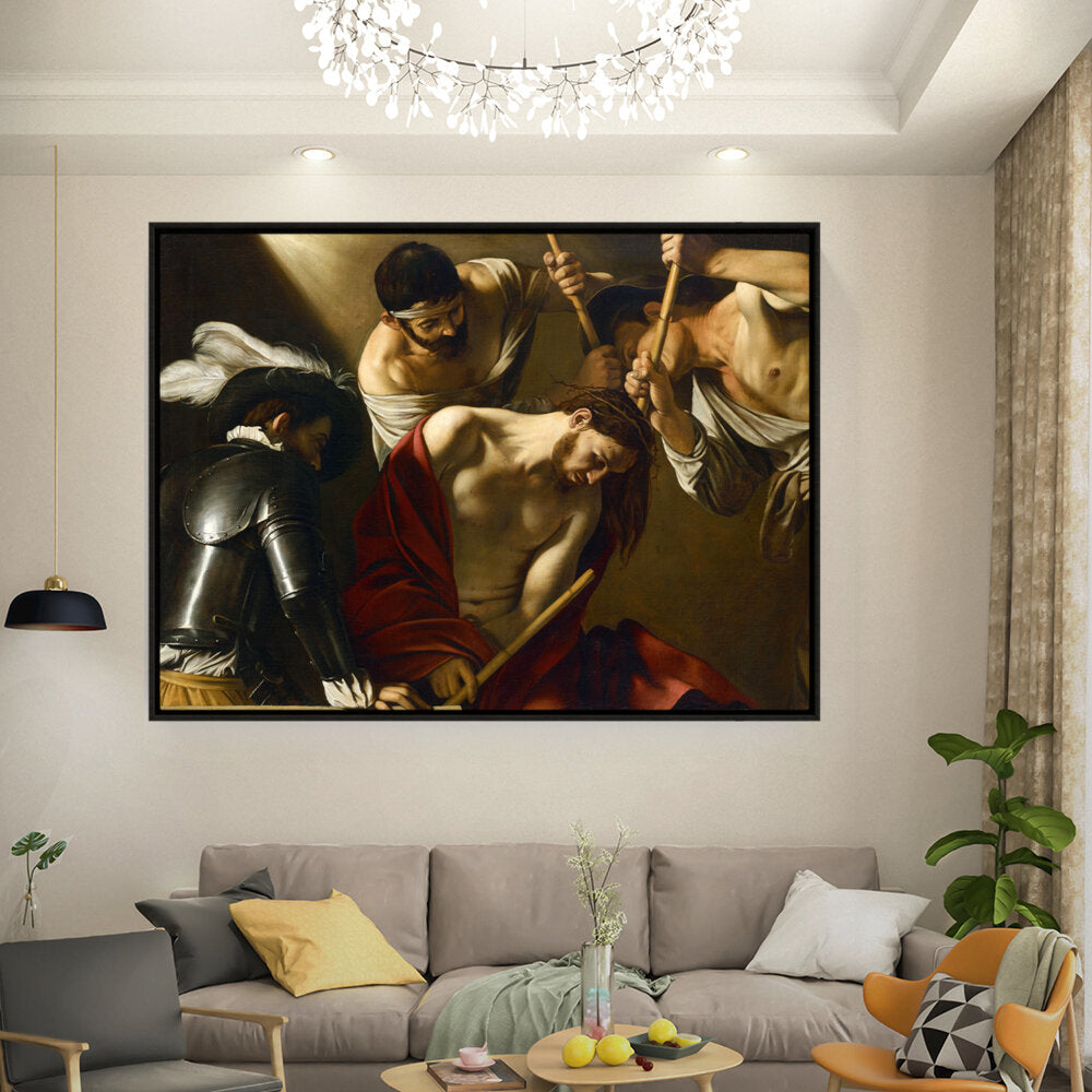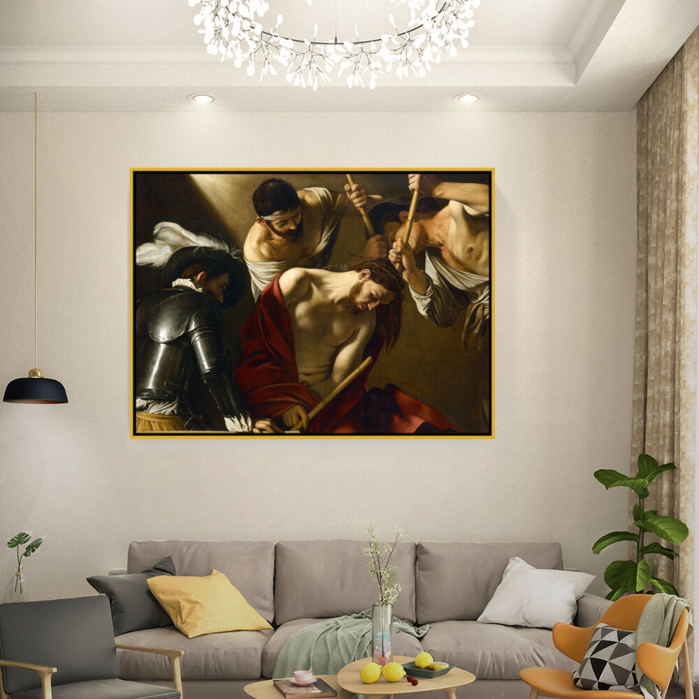 This powerful artwork depicts a poignant moment from the crucifixion of Christ, showcasing dramatic contrasts and intense emotions. The detailed expressions and dynamic poses draw viewers into the emotional turmoil of the scene, highlighting themes of suffering and redemption.