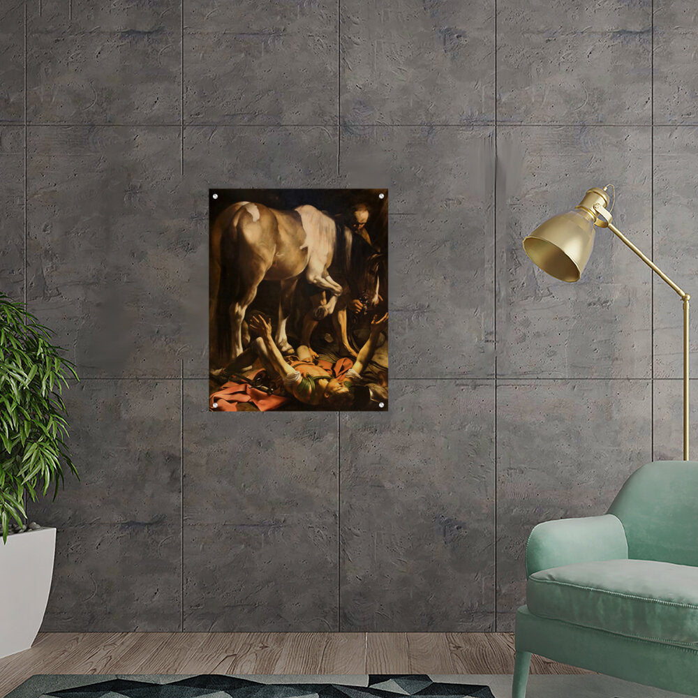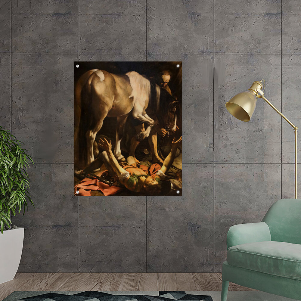 This striking artwork captures an intense moment of a fallen knight, surrounded by a horse and a figure tending to him. The dramatic lighting and realistic portrayal evoke strong emotions, making it a captivating piece for any art lover. A perfect focal point for a living space or creative studio.
