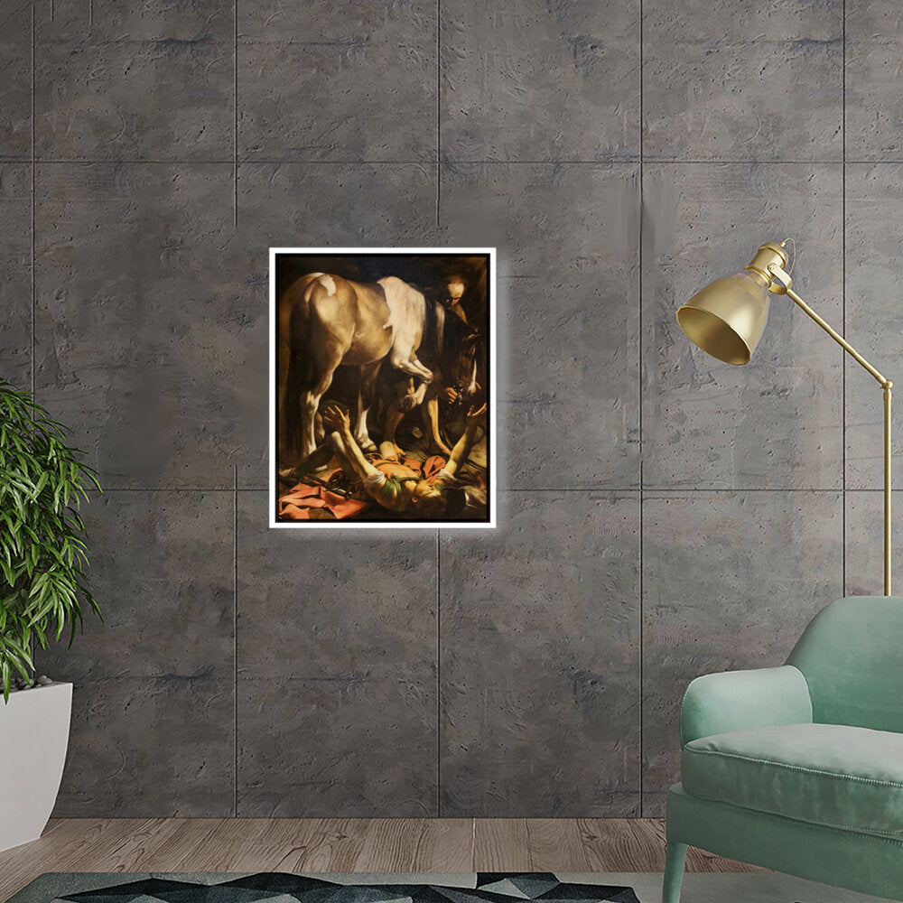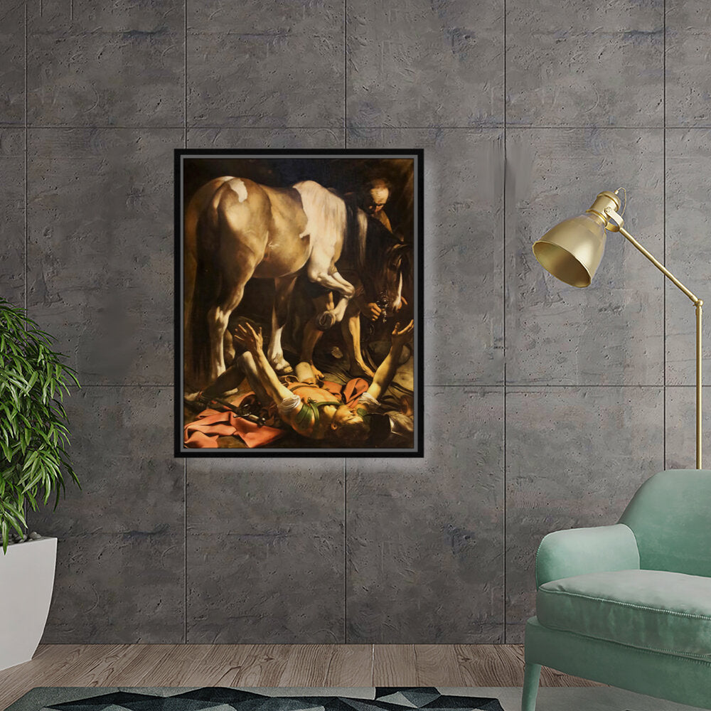 This striking artwork captures an intense moment of a fallen knight, surrounded by a horse and a figure tending to him. The dramatic lighting and realistic portrayal evoke strong emotions, making it a captivating piece for any art lover. A perfect focal point for a living space or creative studio.