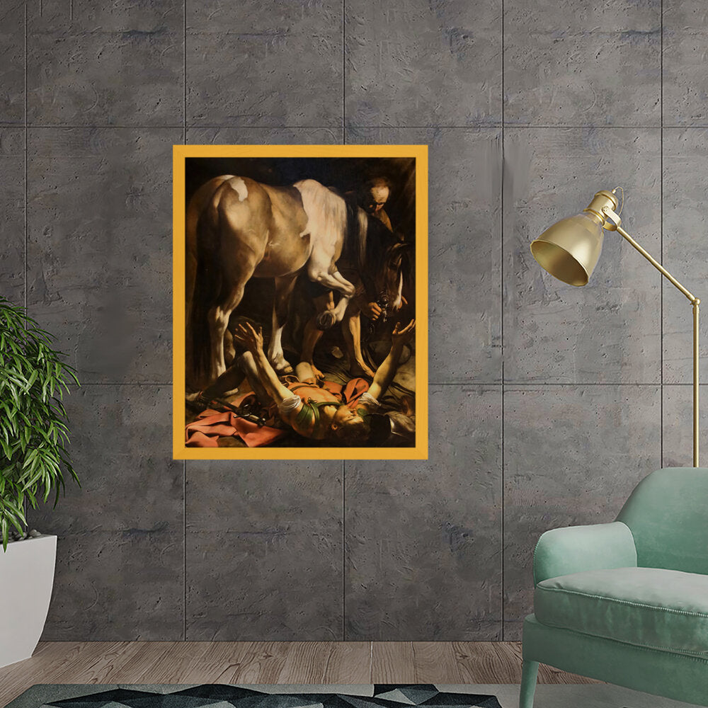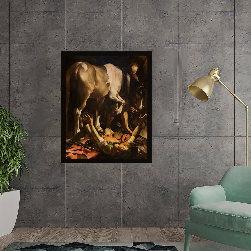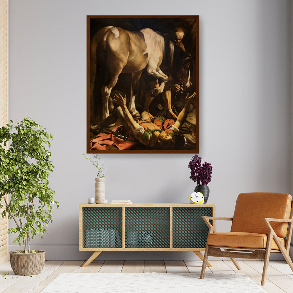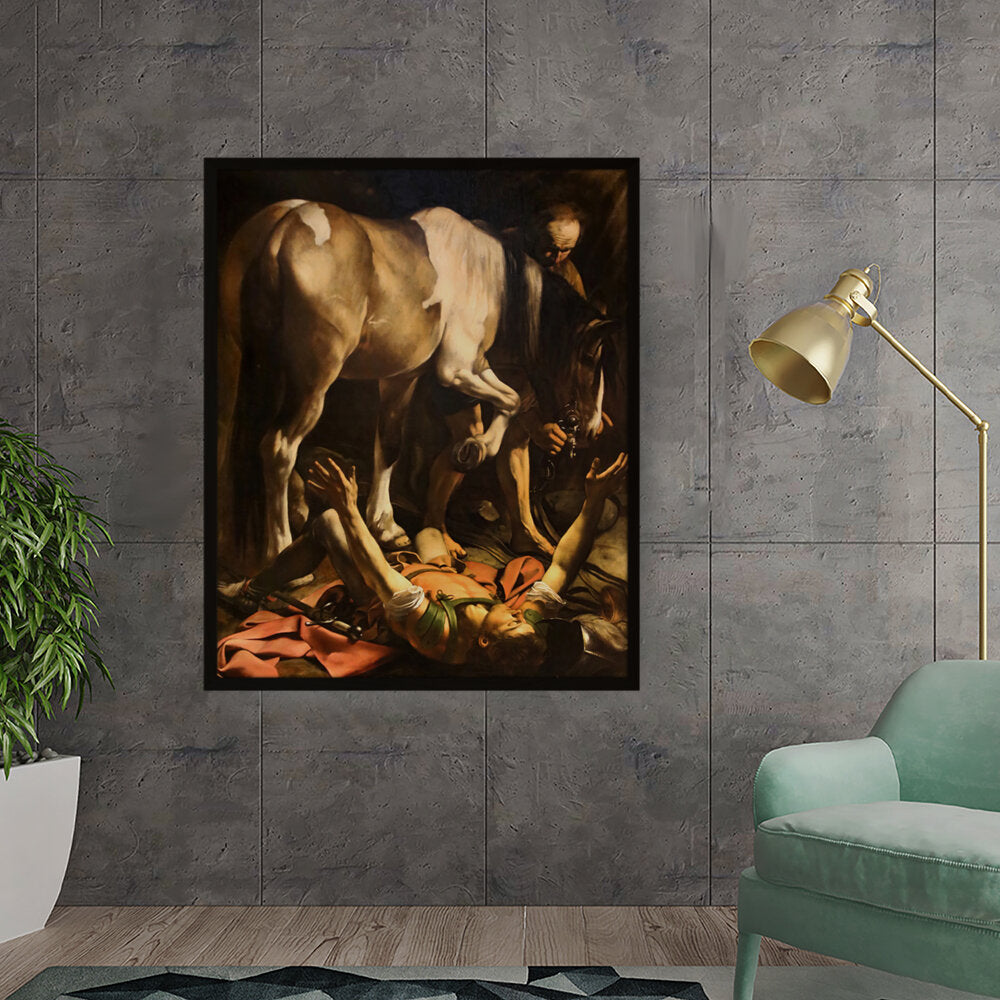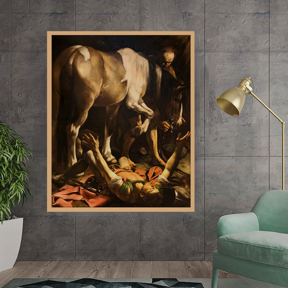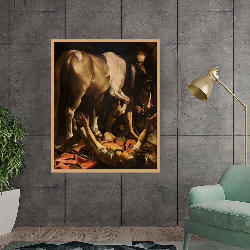 This striking artwork captures an intense moment of a fallen knight, surrounded by a horse and a figure tending to him. The dramatic lighting and realistic portrayal evoke strong emotions, making it a captivating piece for any art lover. A perfect focal point for a living space or creative studio.