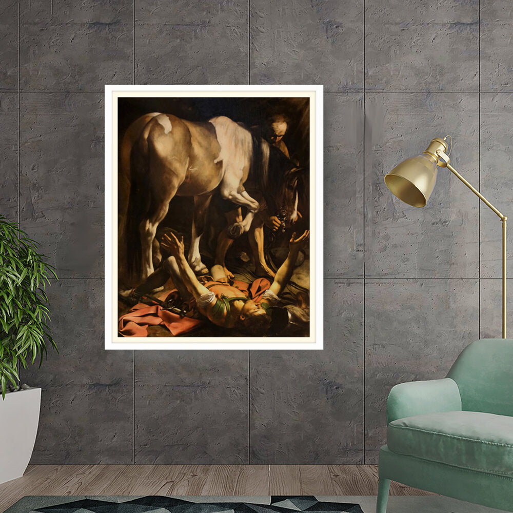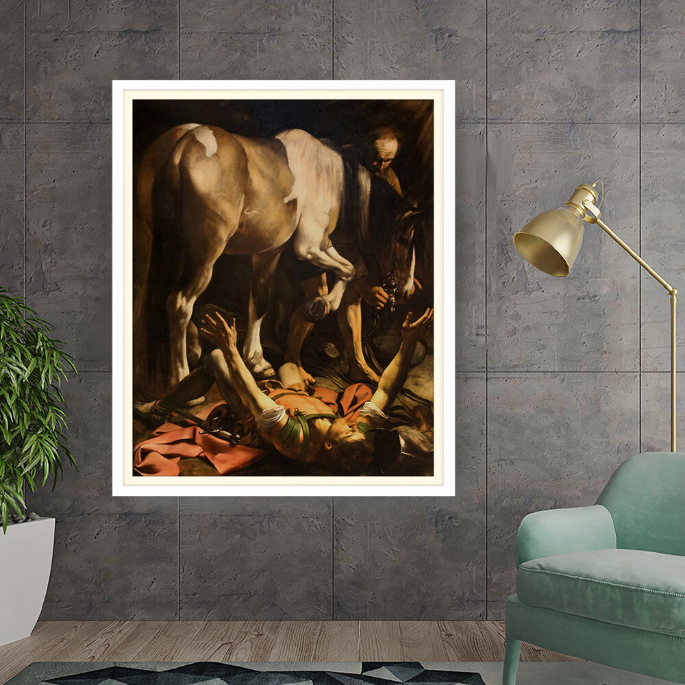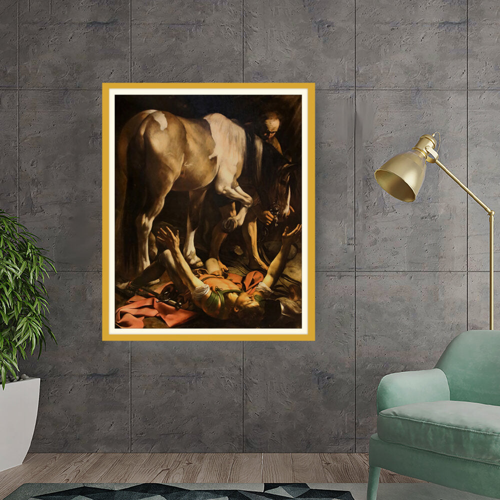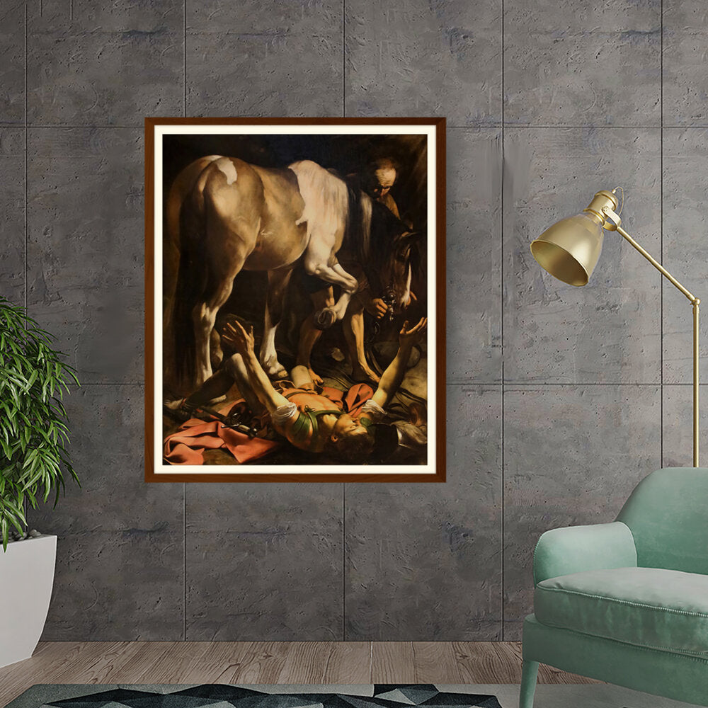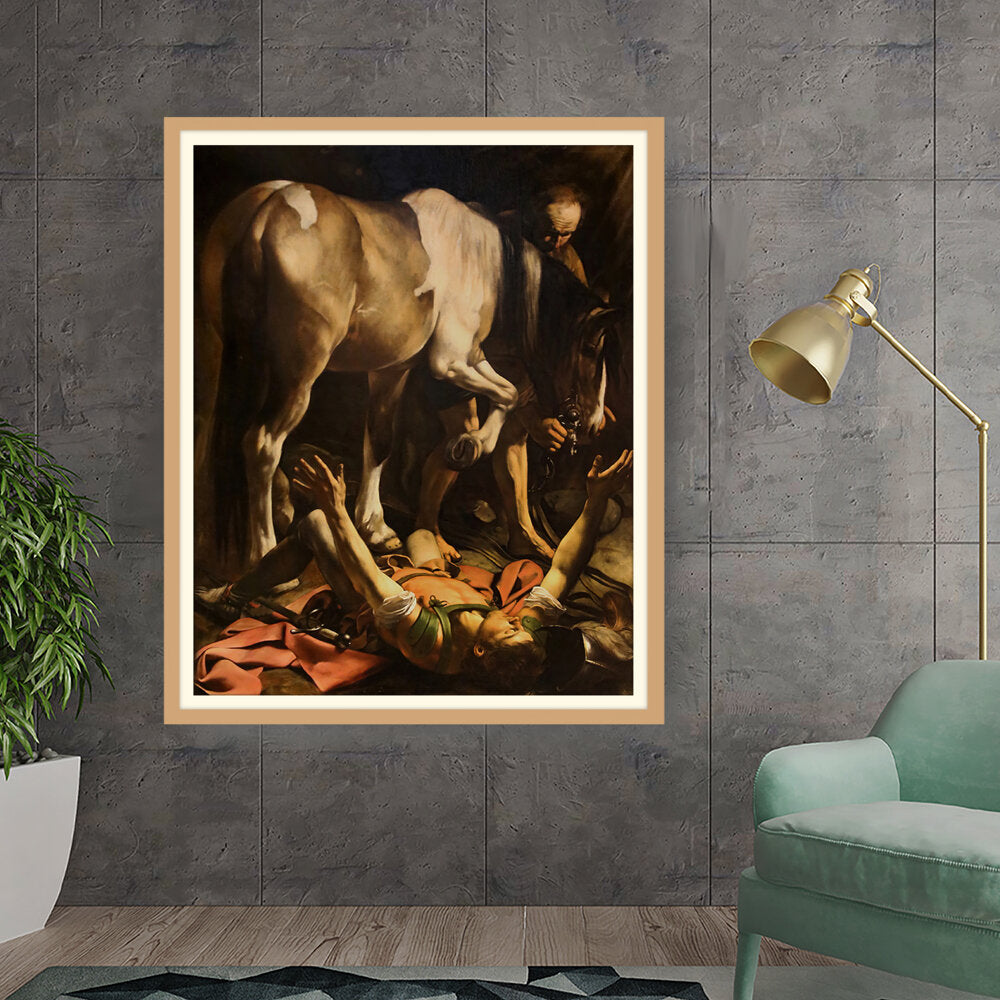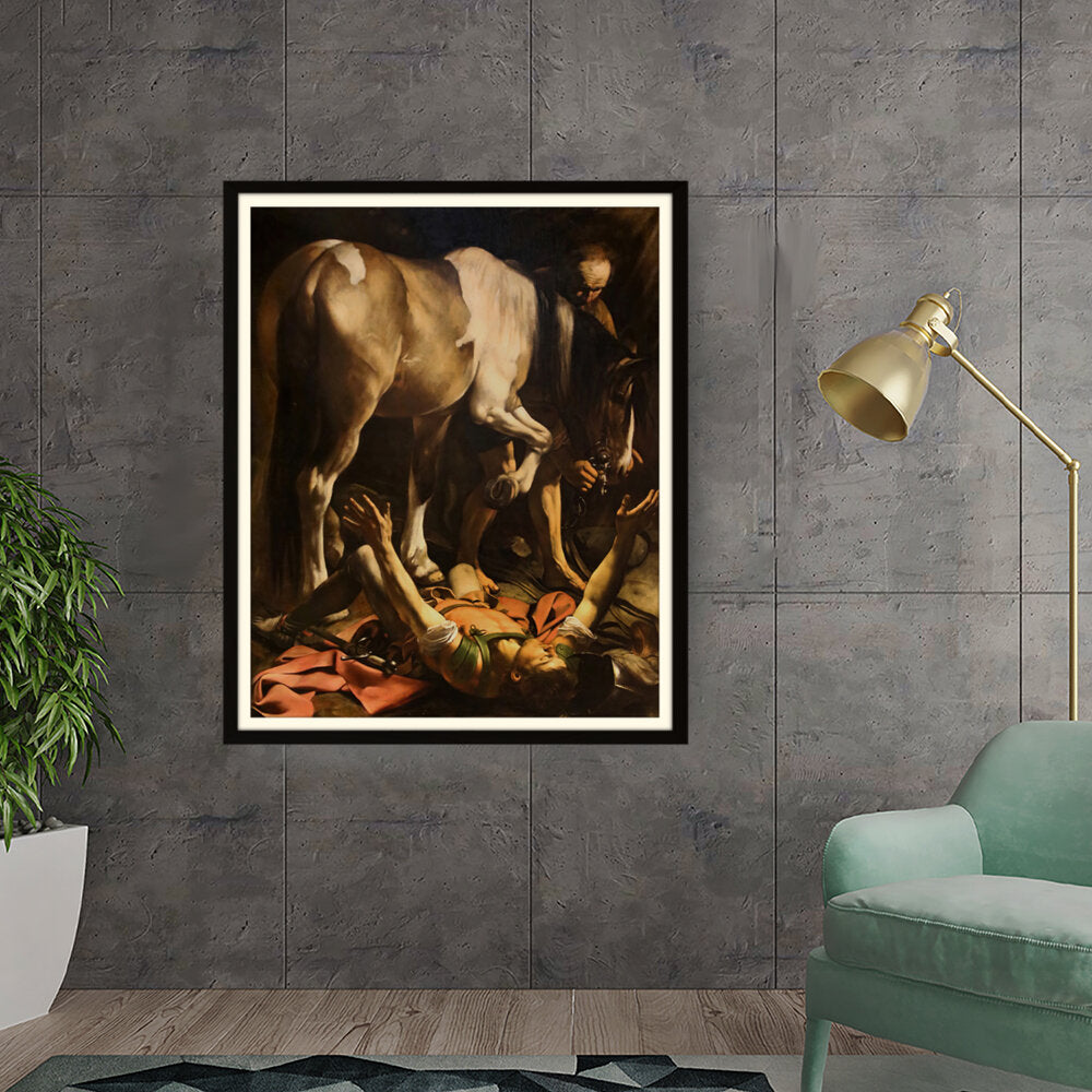 This striking artwork captures an intense moment of a fallen knight, surrounded by a horse and a figure tending to him. The dramatic lighting and realistic portrayal evoke strong emotions, making it a captivating piece for any art lover. A perfect focal point for a living space or creative studio.
