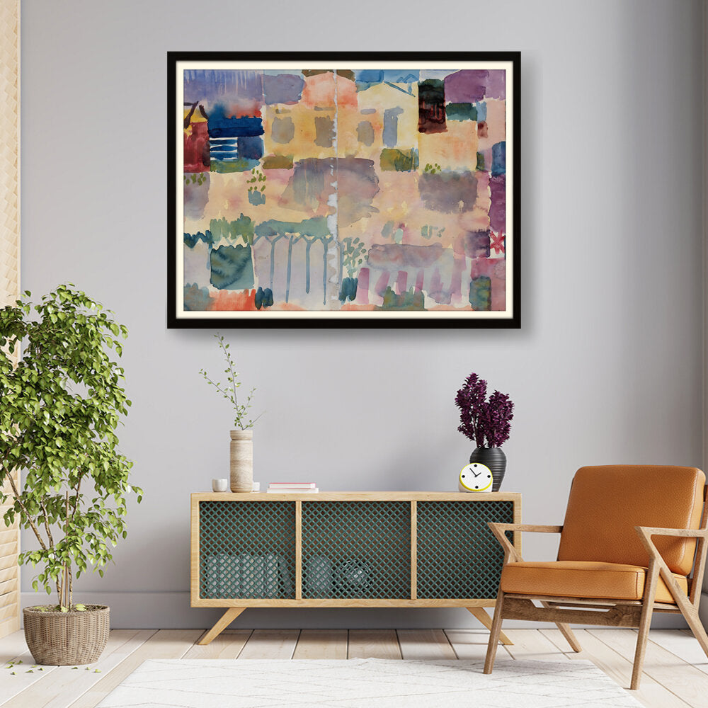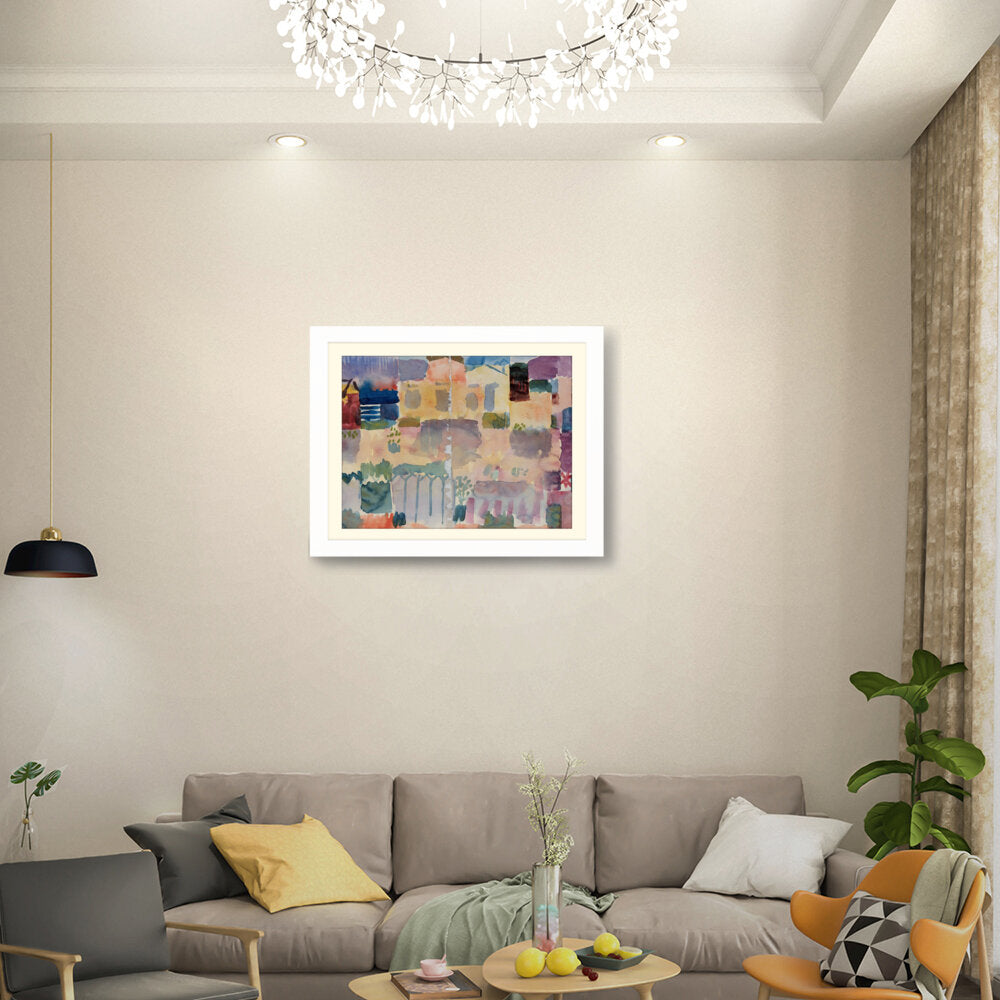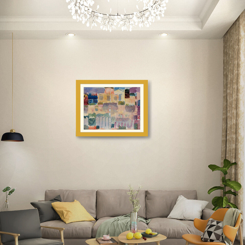 This captivating watercolor piece features a blend of soft colors and abstract shapes, evoking a sense of tranquility and creativity. Ideal for modern interiors, it adds a touch of sophistication to any space.