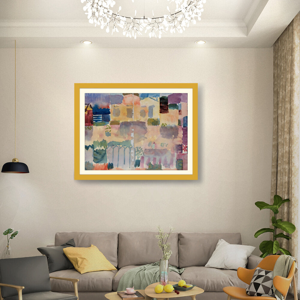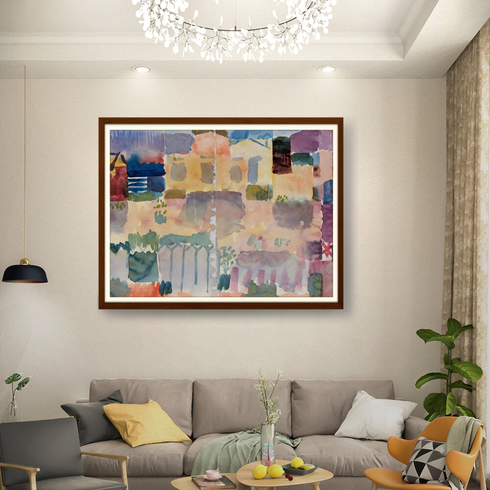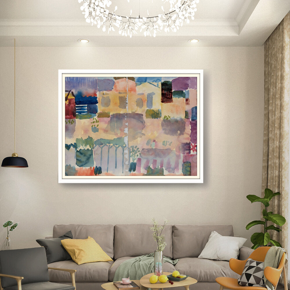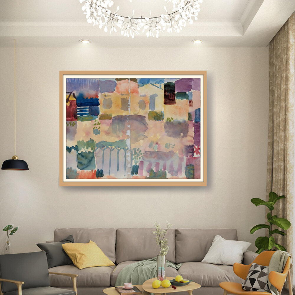 This captivating watercolor piece features a blend of soft colors and abstract shapes, evoking a sense of tranquility and creativity. Ideal for modern interiors, it adds a touch of sophistication to any space.