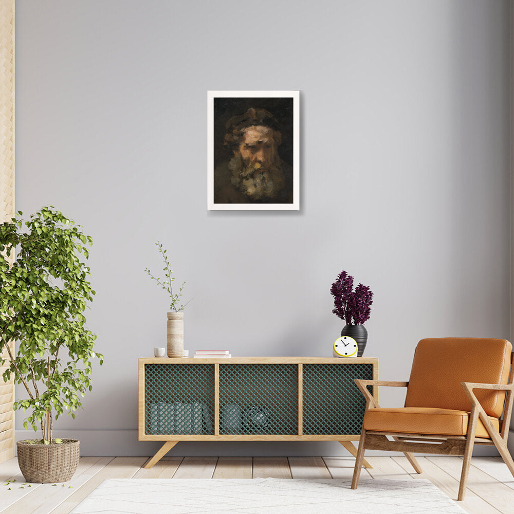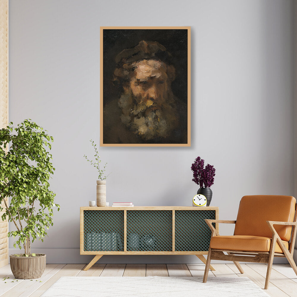 Explore the depth of human experience depicted in this poignant painting. The aged figure's expressive features invite contemplation of life's wisdom and resilience, making it a striking addition to any art collection.