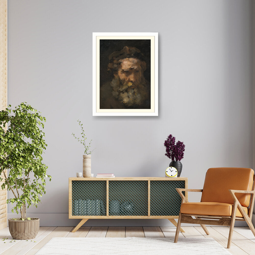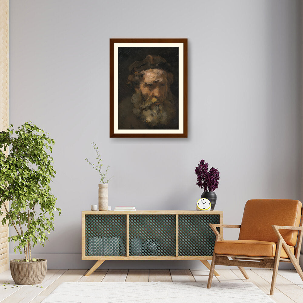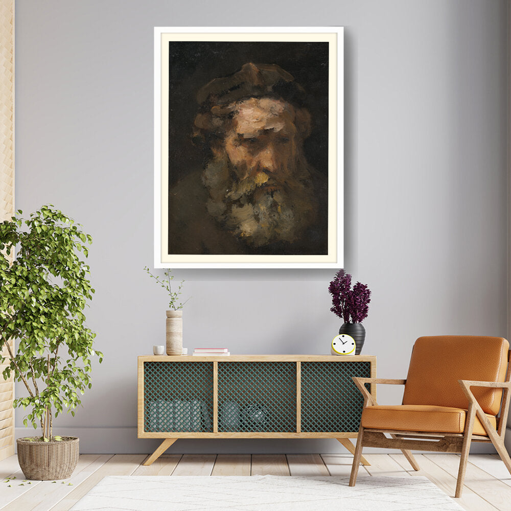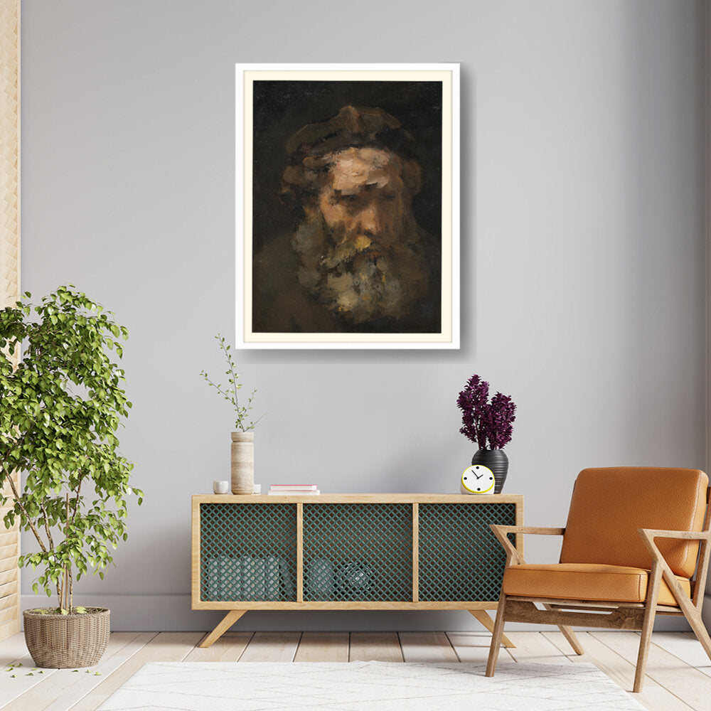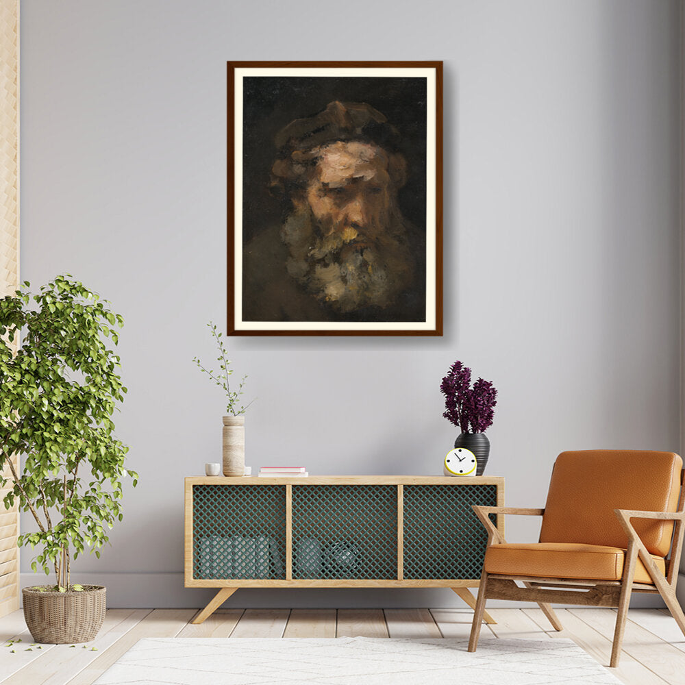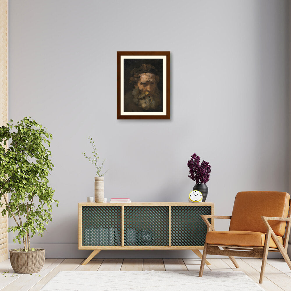 Explore the depth of human experience depicted in this poignant painting. The aged figure's expressive features invite contemplation of life's wisdom and resilience, making it a striking addition to any art collection.