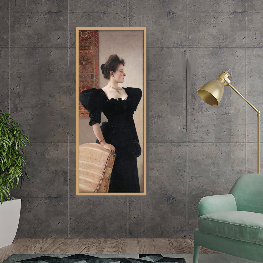 This captivating portrait of a young woman in a black gown exudes elegance and grace. The soft, realistic rendering showcases Klimt's mastery in capturing the allure and character of his subjects.