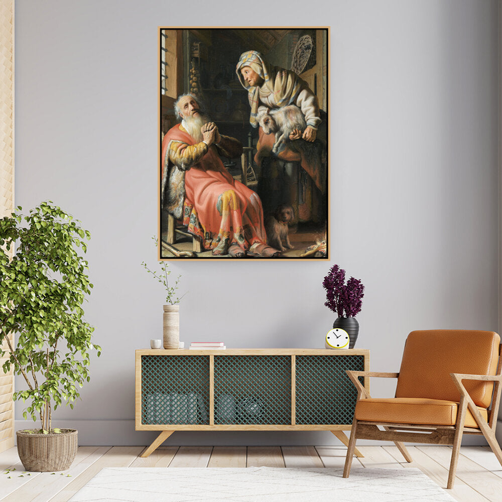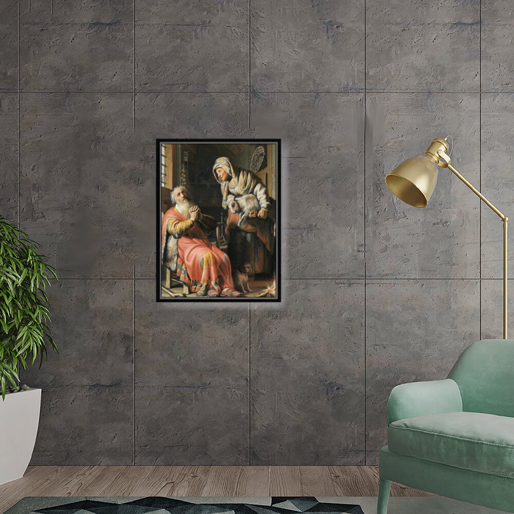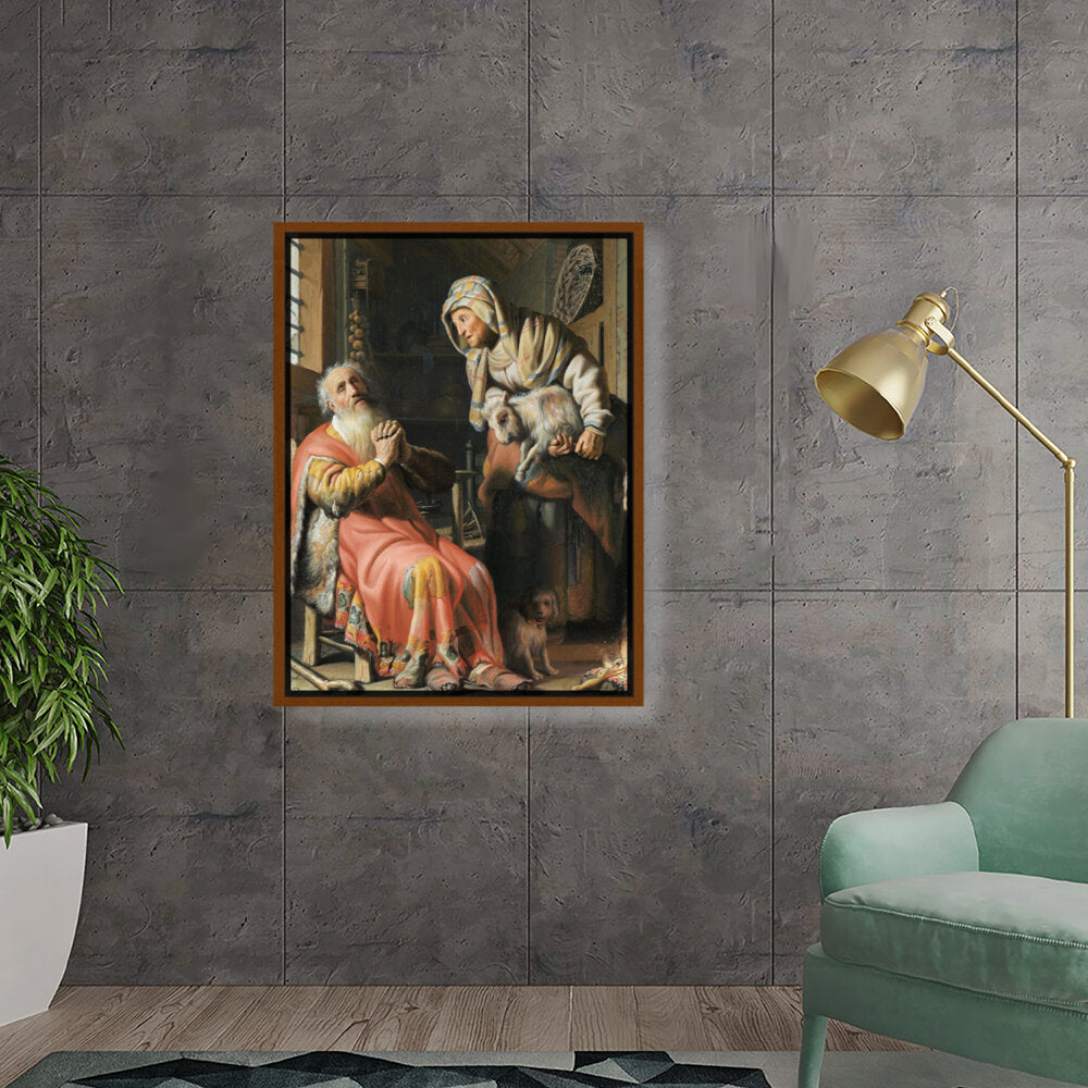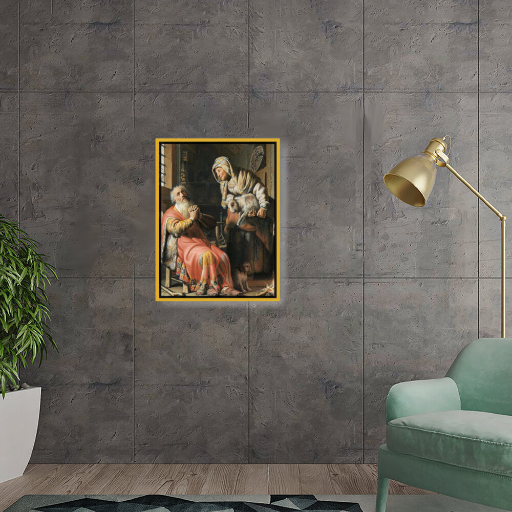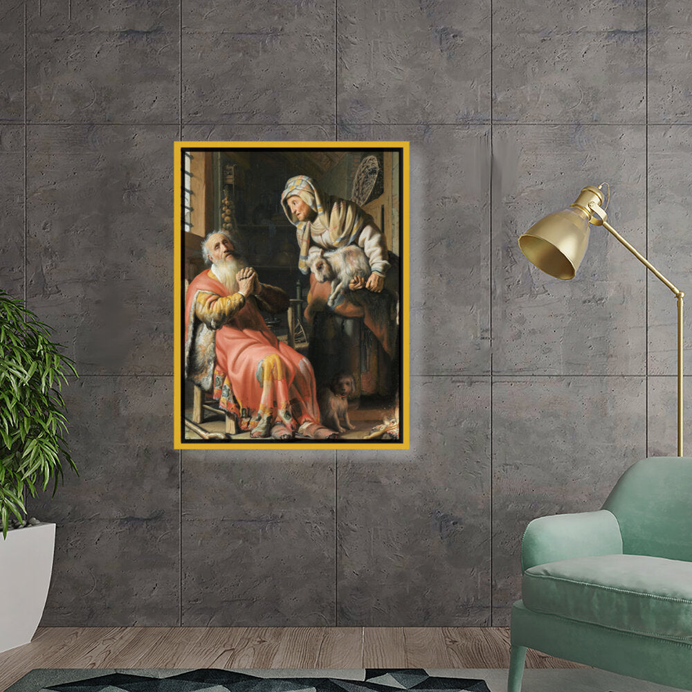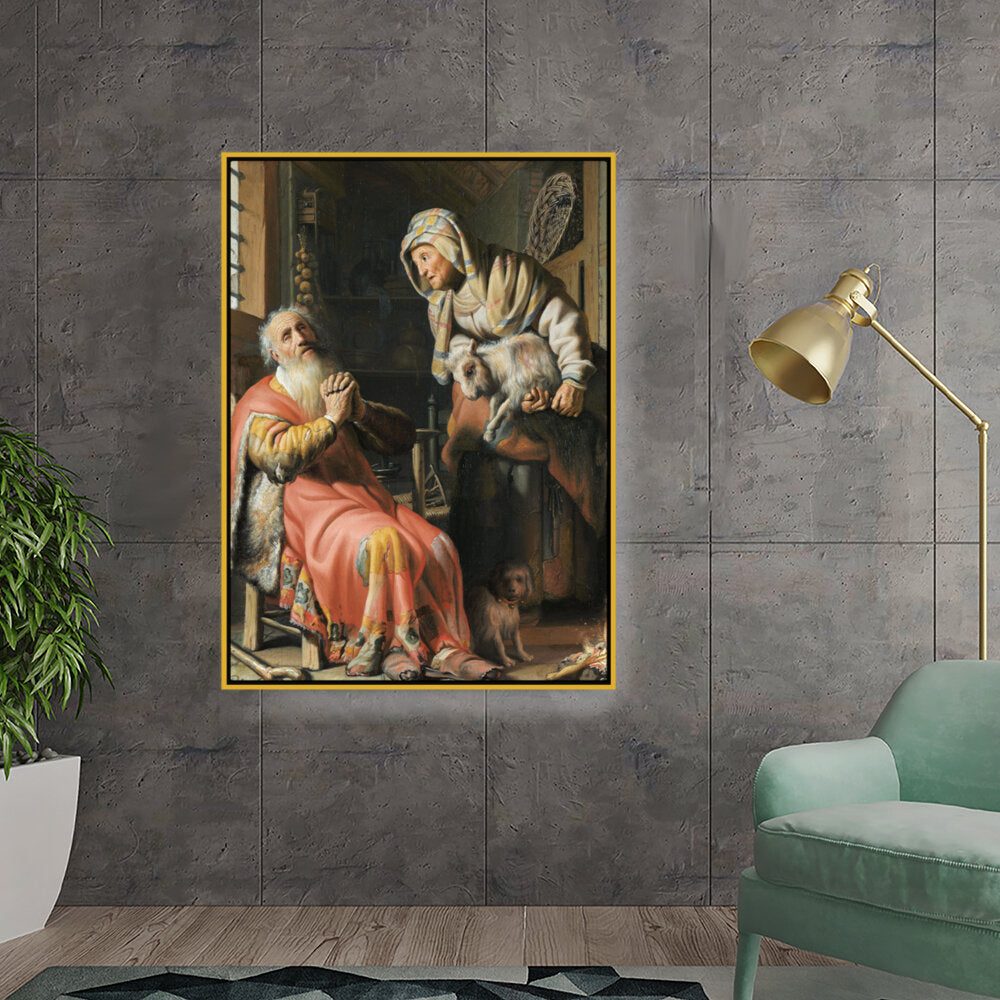 This evocative artwork captures a moment of deep prayer between an elderly man and woman, surrounded by a warm, rustic setting. The detailed expressions and rich colors create a sense of intimacy and connection that embodies the essence of human emotion.