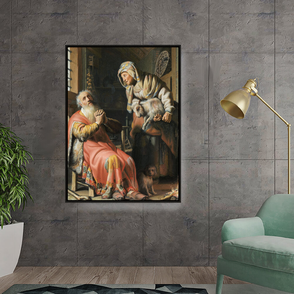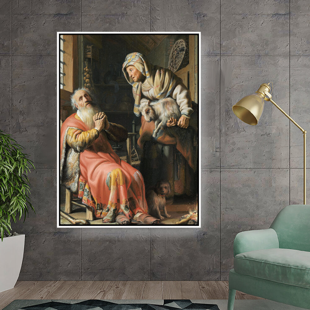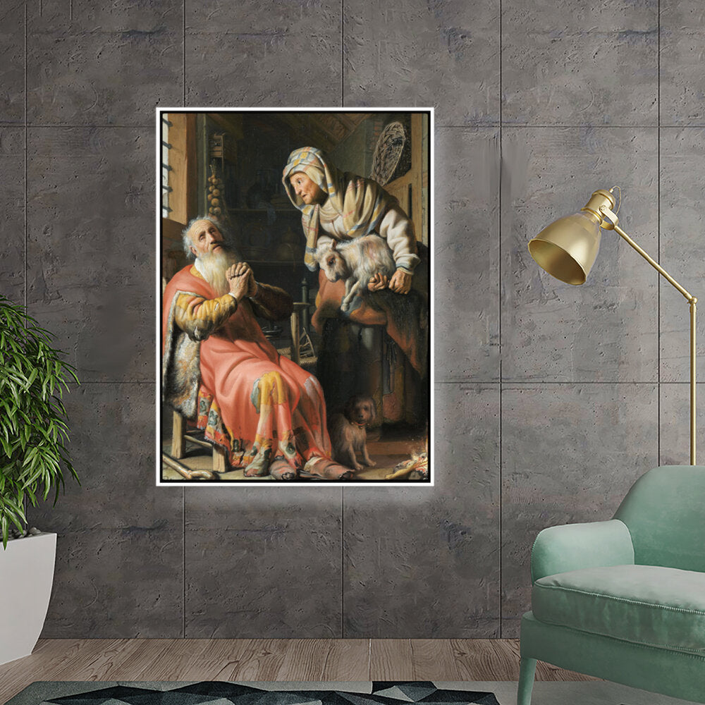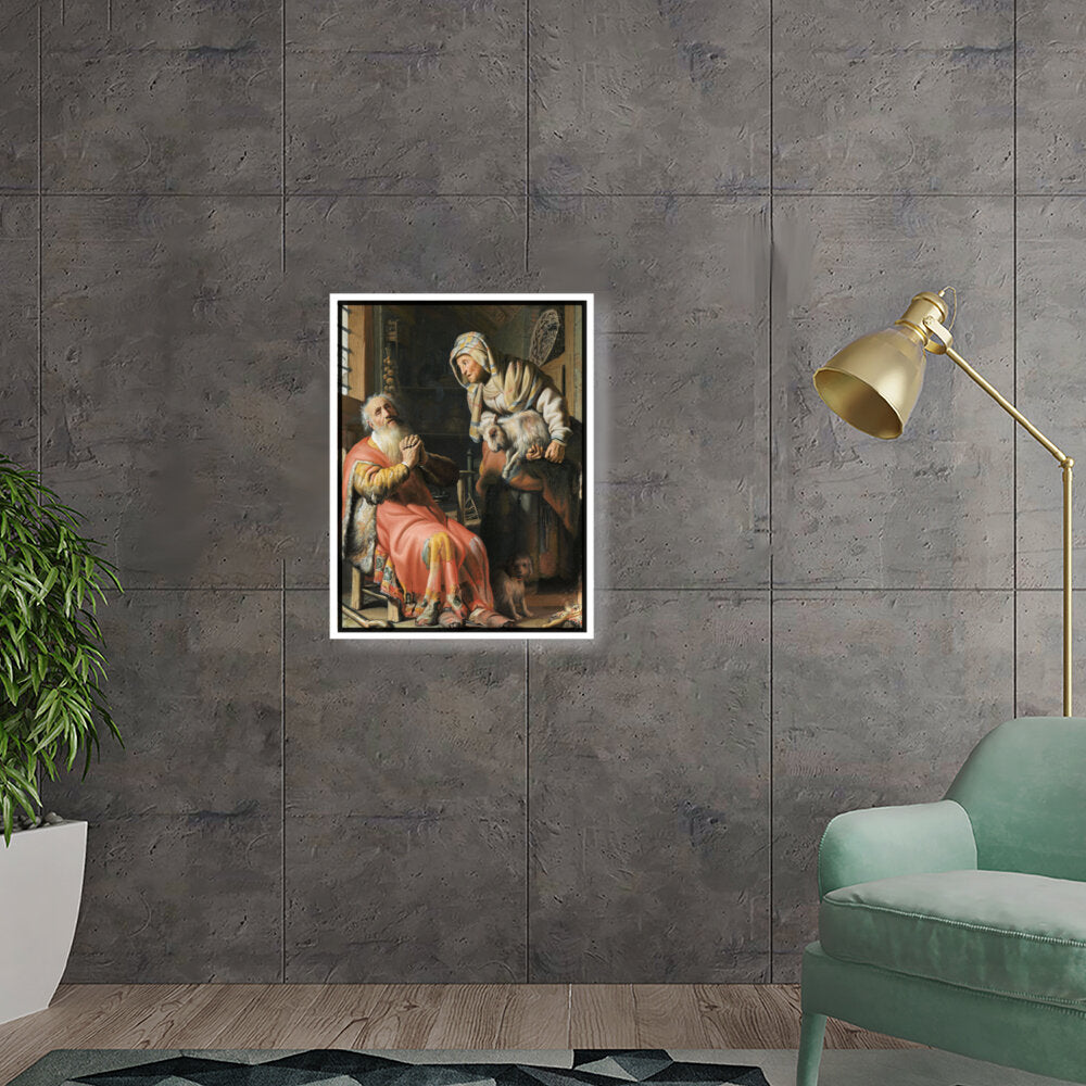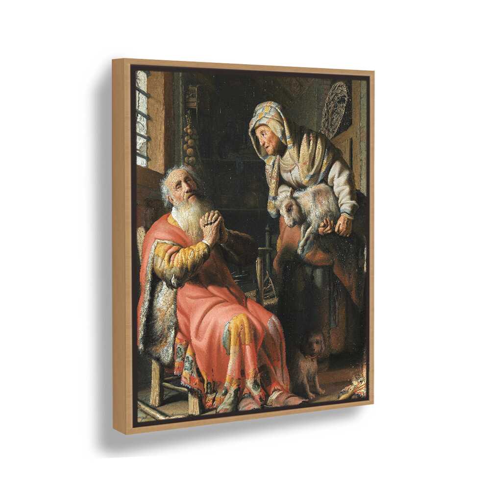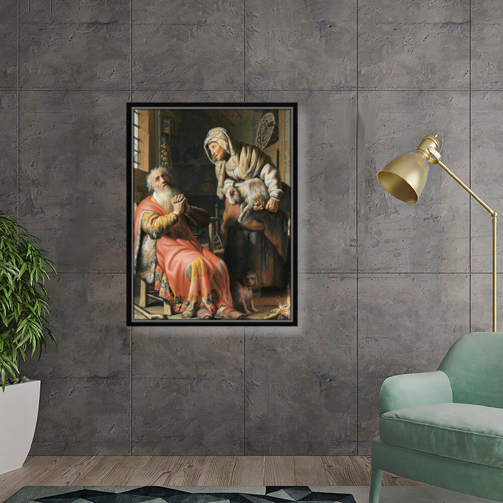 This evocative artwork captures a moment of deep prayer between an elderly man and woman, surrounded by a warm, rustic setting. The detailed expressions and rich colors create a sense of intimacy and connection that embodies the essence of human emotion.