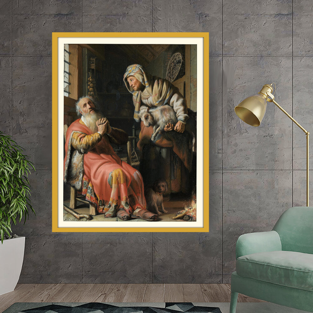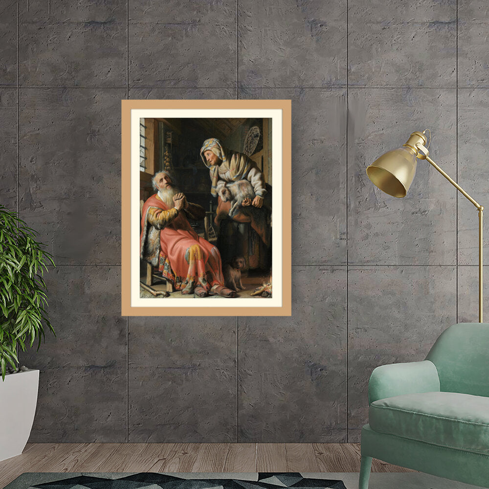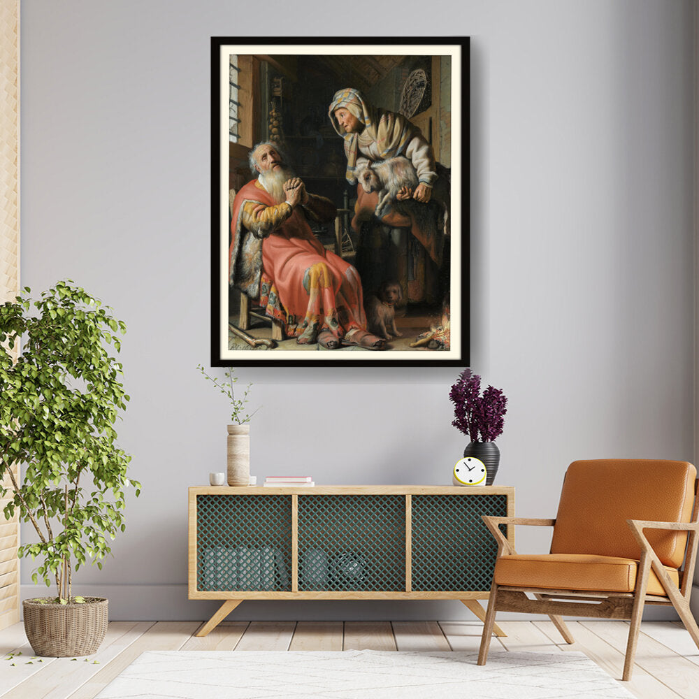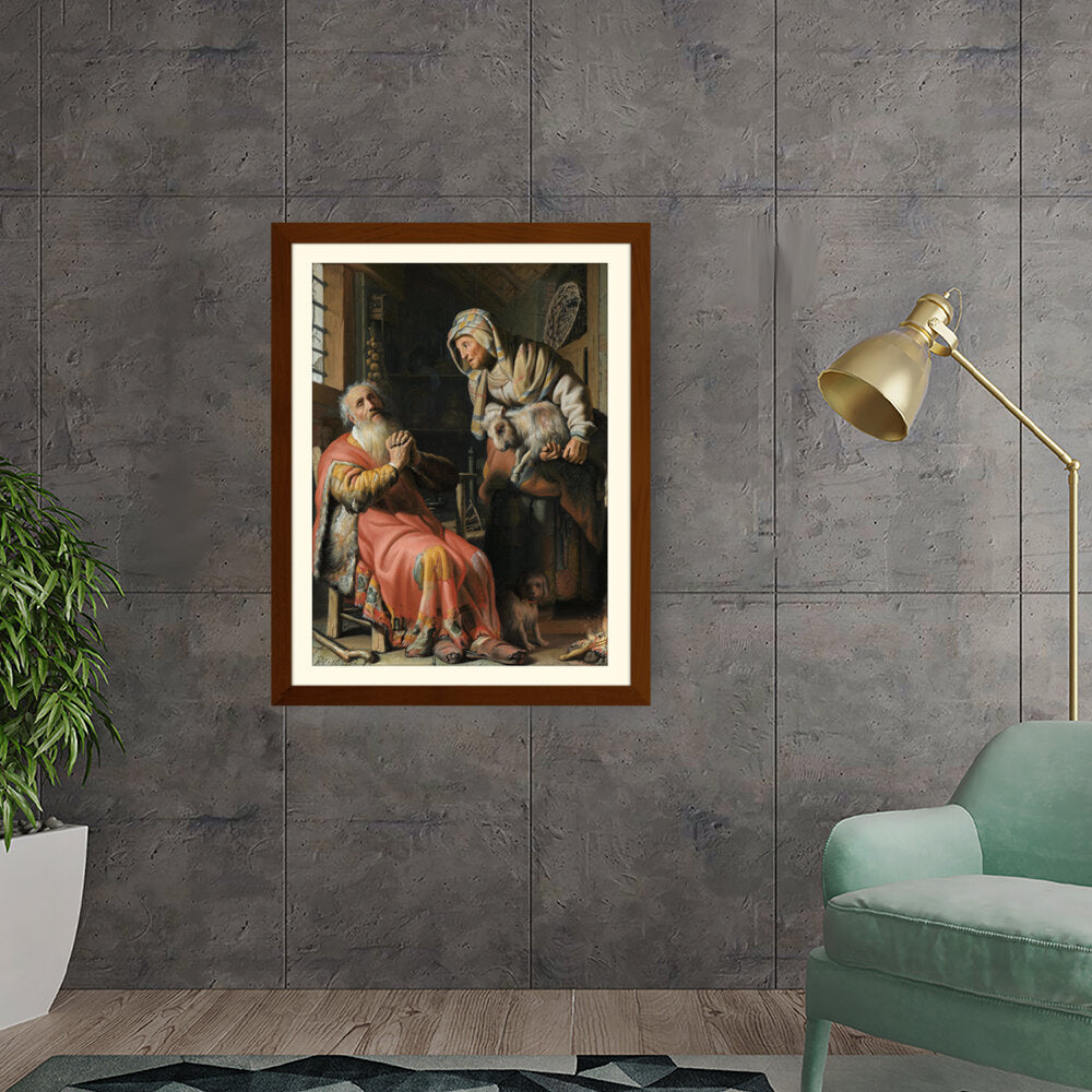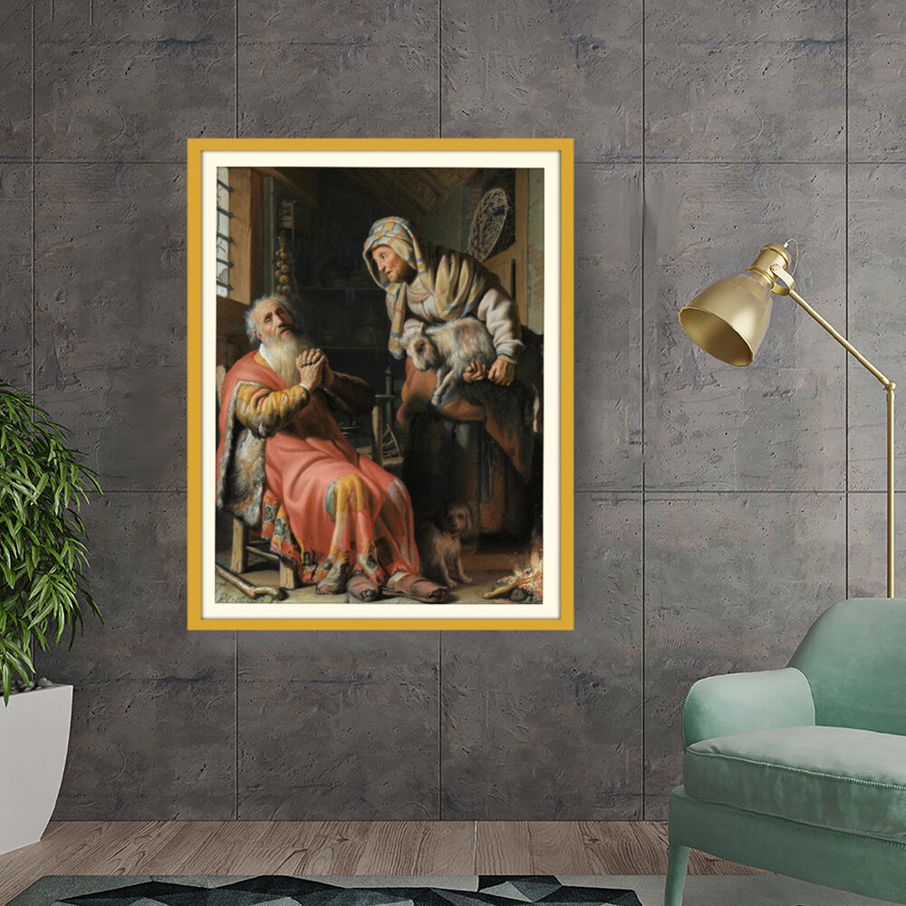 This evocative artwork captures a moment of deep prayer between an elderly man and woman, surrounded by a warm, rustic setting. The detailed expressions and rich colors create a sense of intimacy and connection that embodies the essence of human emotion.