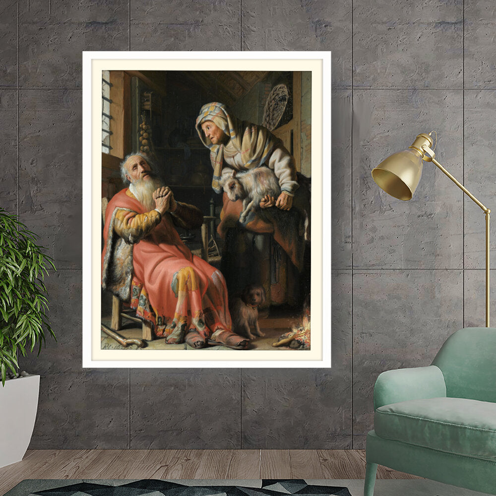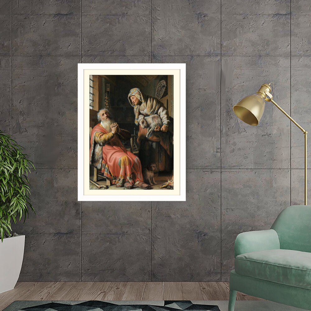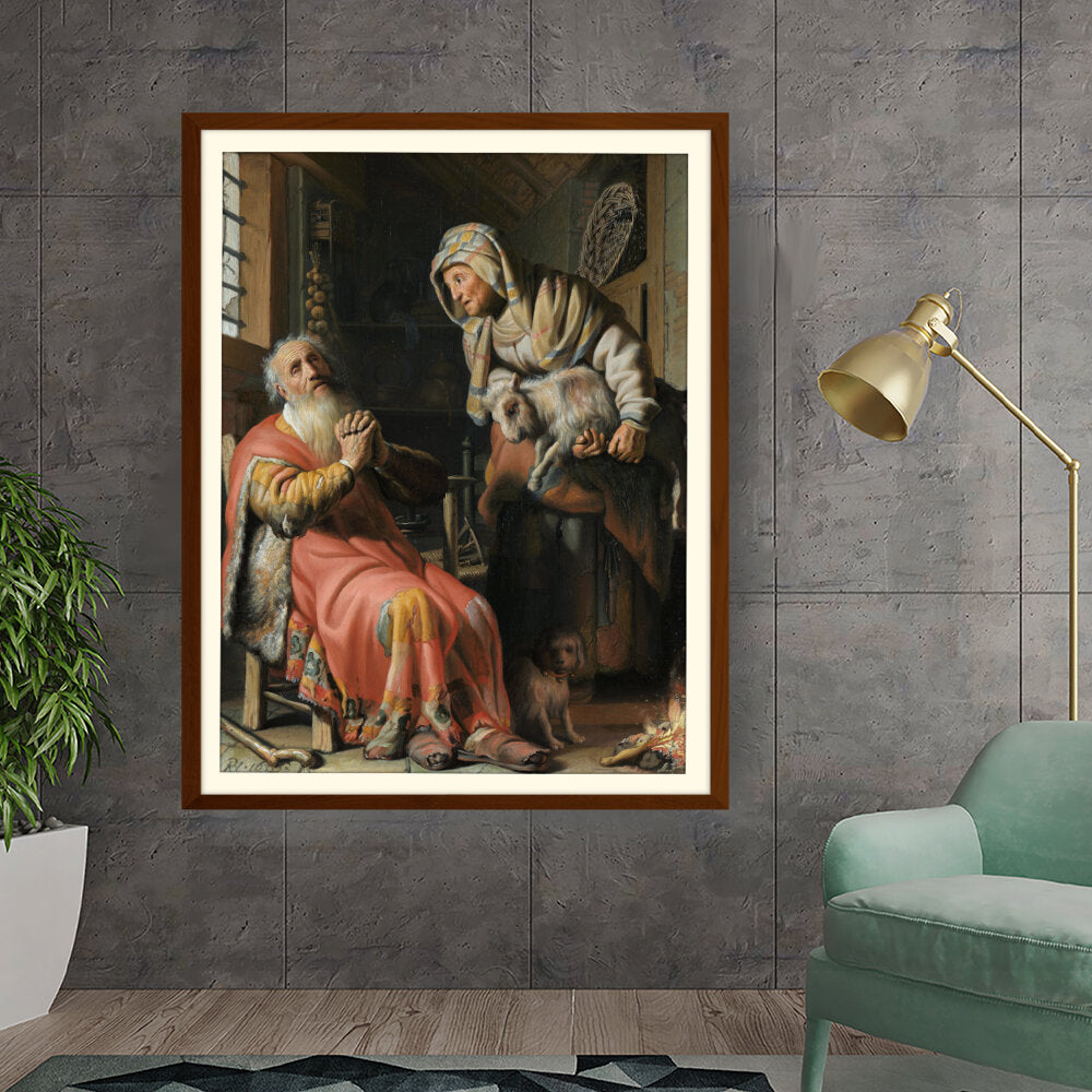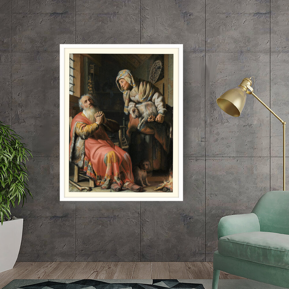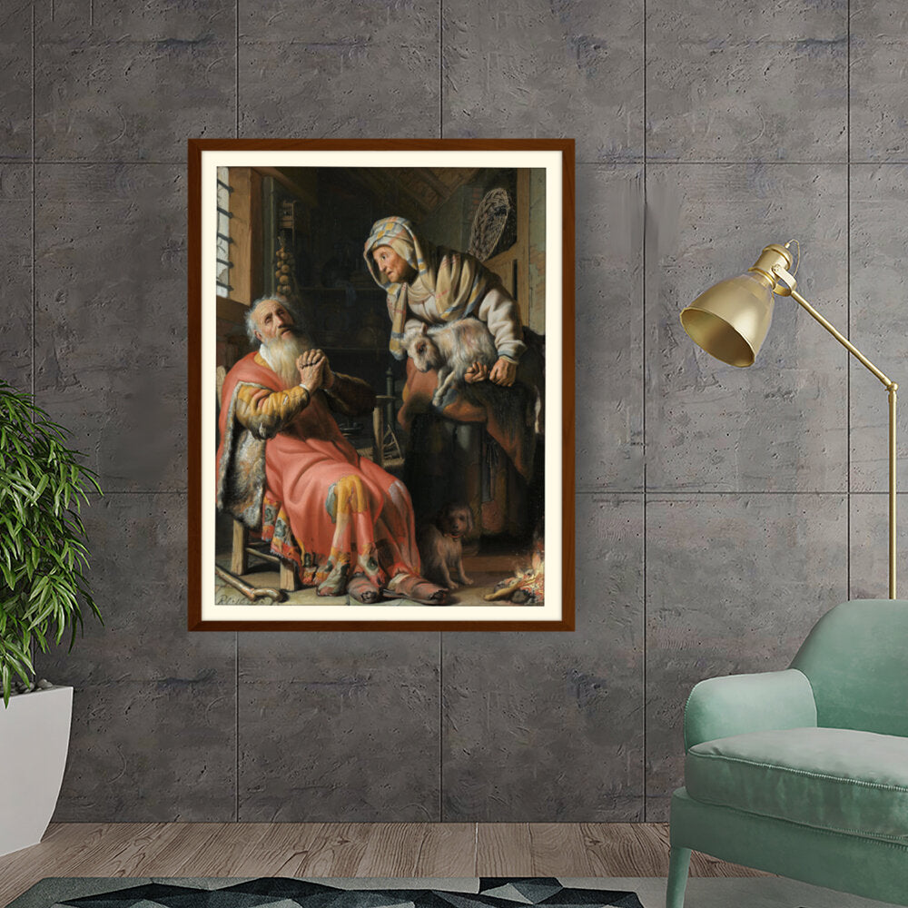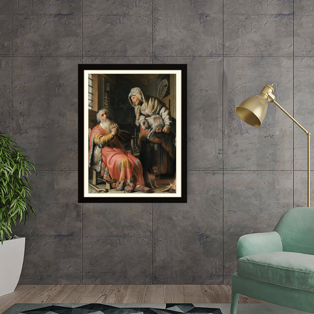 This evocative artwork captures a moment of deep prayer between an elderly man and woman, surrounded by a warm, rustic setting. The detailed expressions and rich colors create a sense of intimacy and connection that embodies the essence of human emotion.