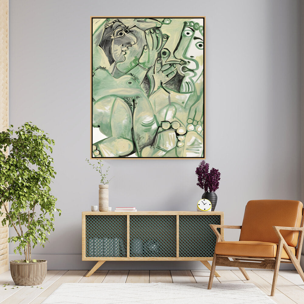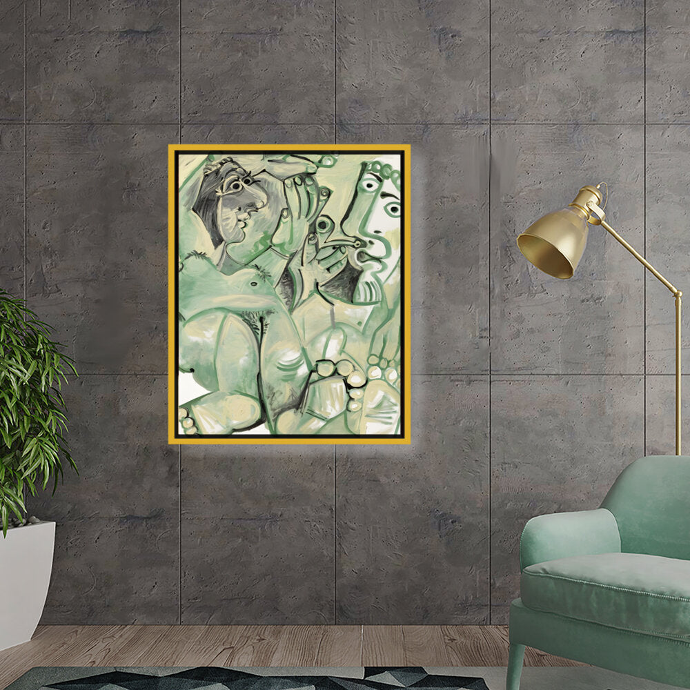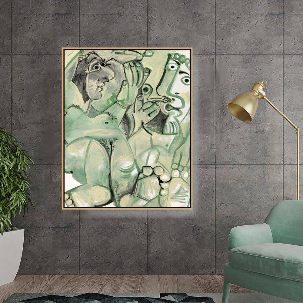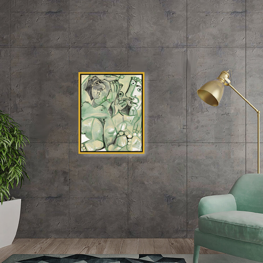 This striking abstract painting captures the complexity of human emotions through bold forms and a unique color palette. The use of fluid shapes and expressive lines invites viewers to explore the depths of their interpretations.