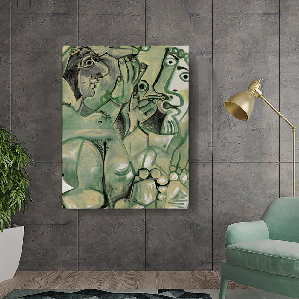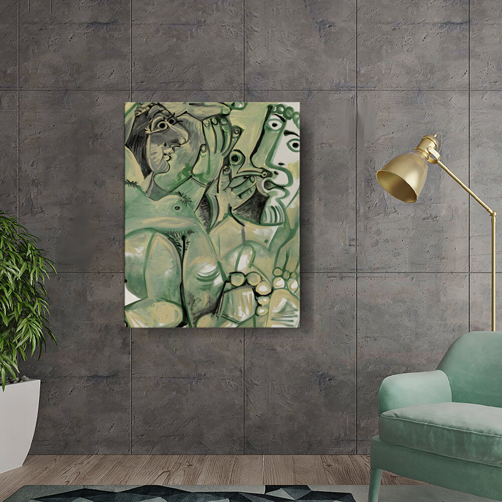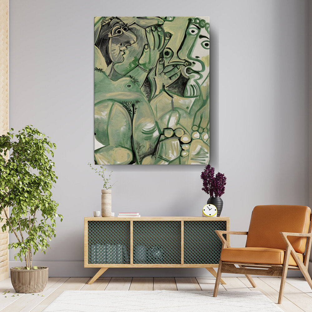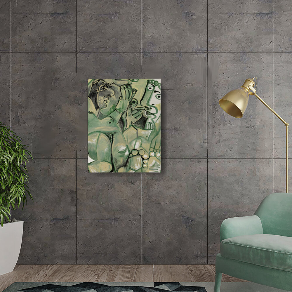 This striking abstract painting captures the complexity of human emotions through bold forms and a unique color palette. The use of fluid shapes and expressive lines invites viewers to explore the depths of their interpretations.