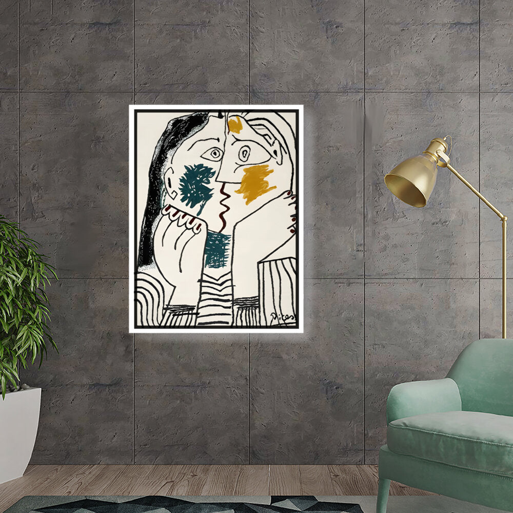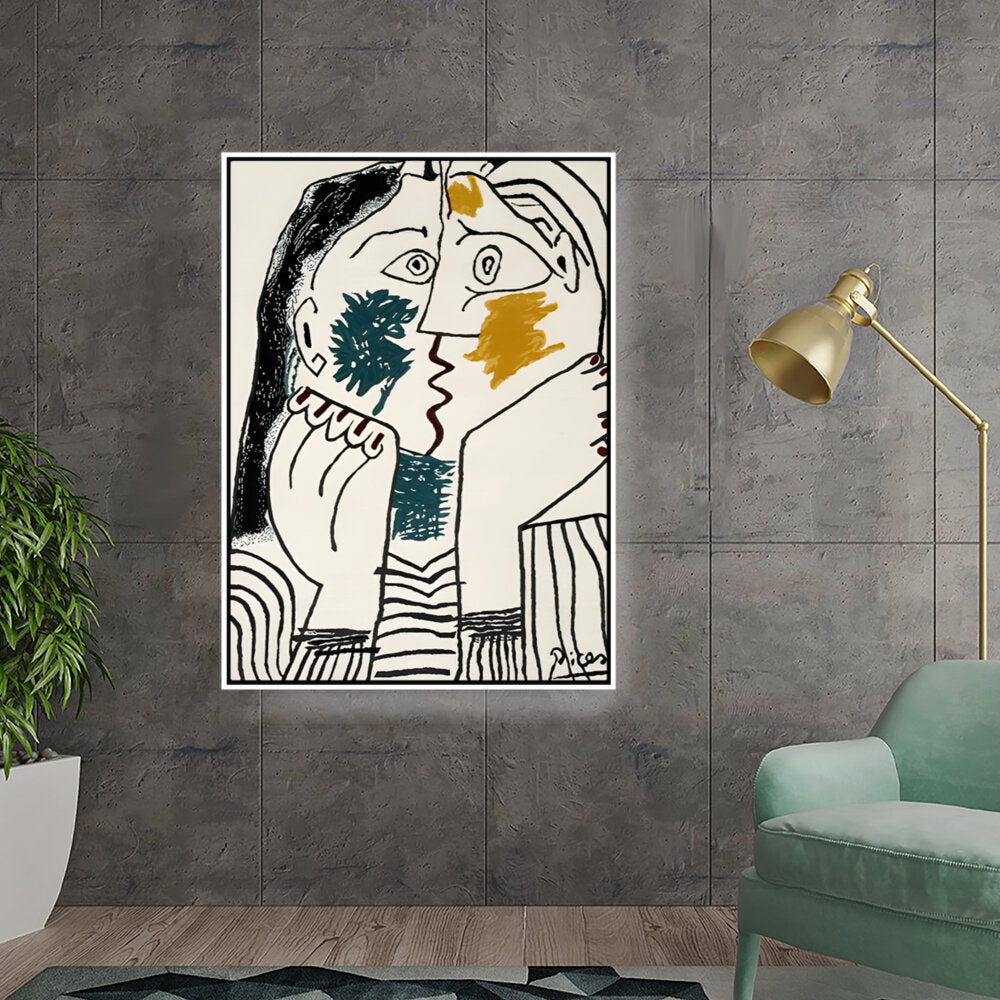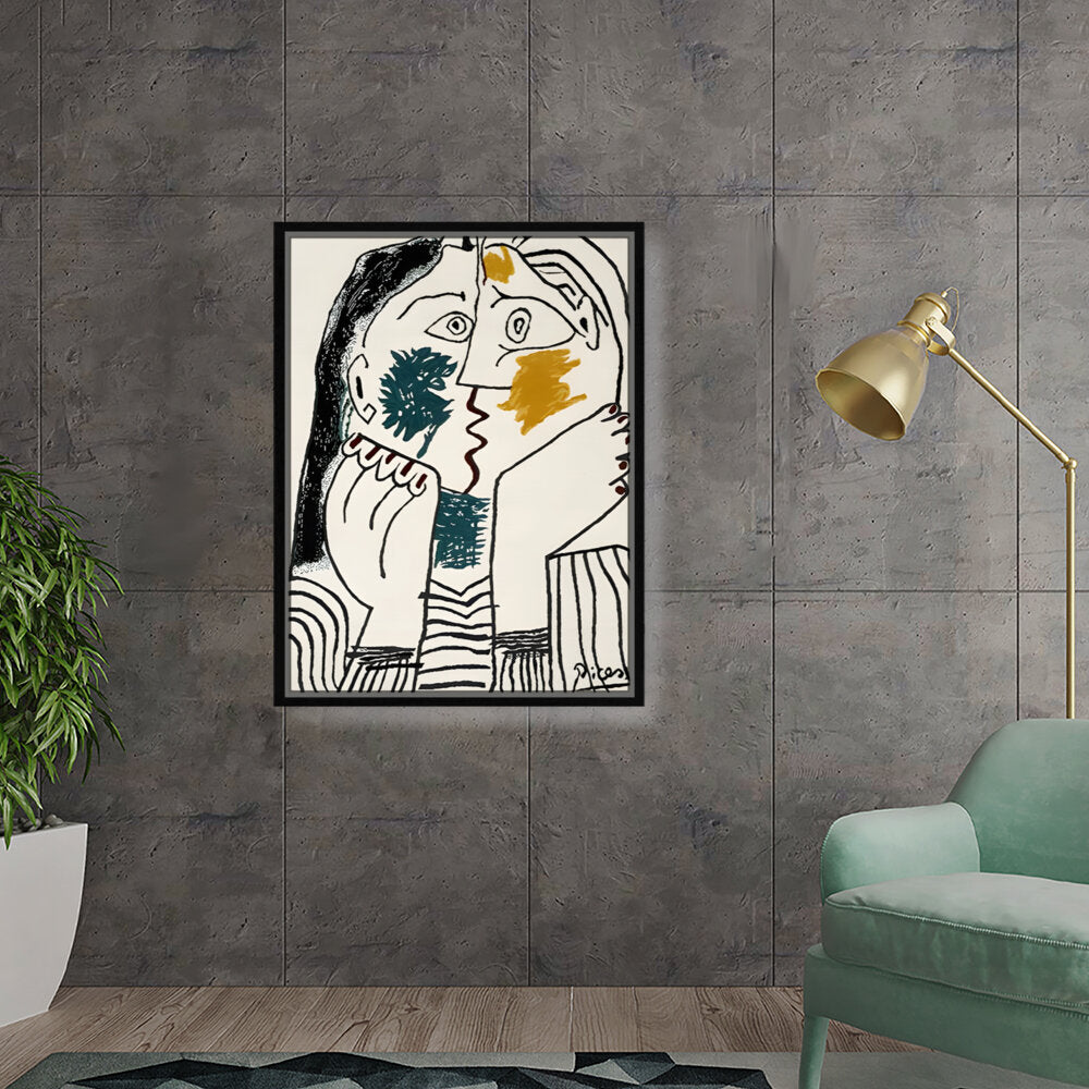 This artwork features bold, abstract faces that convey deep contemplation through striking colors and expressive lines. Perfect for adding a modern touch to your living space, it invites viewers to explore their emotions and interpretations.
