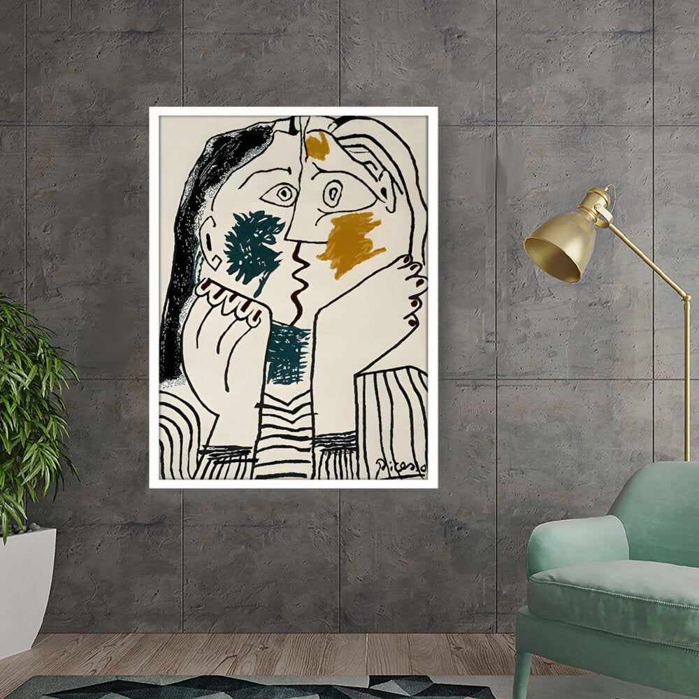 This artwork features bold, abstract faces that convey deep contemplation through striking colors and expressive lines. Perfect for adding a modern touch to your living space, it invites viewers to explore their emotions and interpretations.