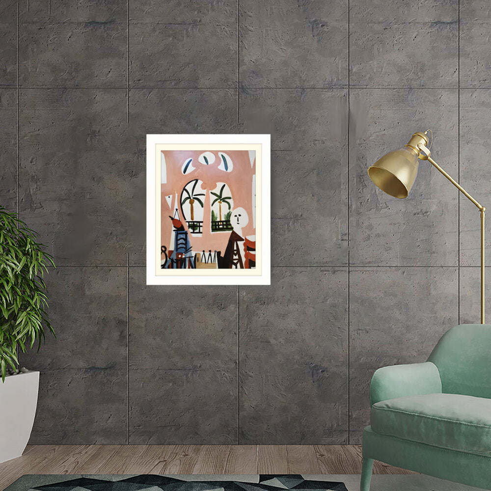 This vibrant artwork titled 'Palm View' features abstract shapes and tropical elements, perfect for adding a modern...