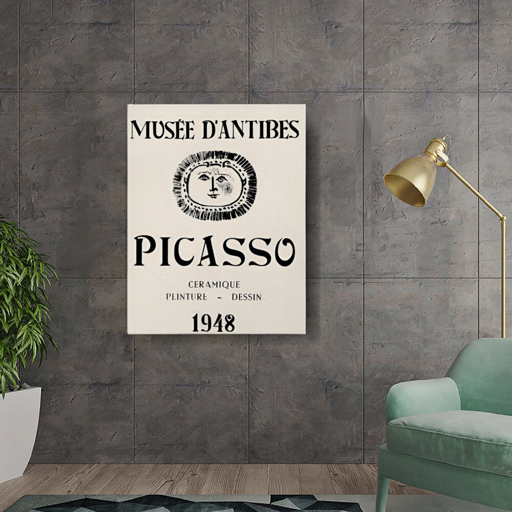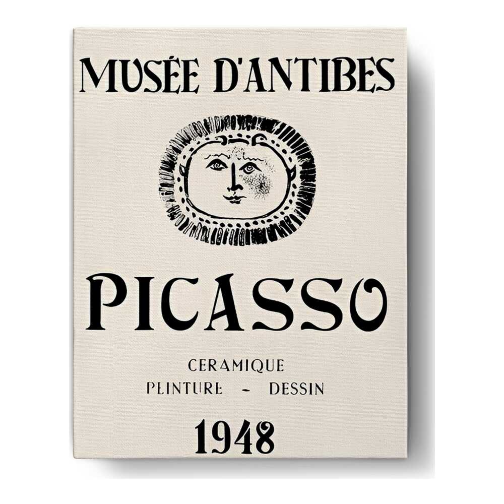 This artwork features a poster design celebrating Picasso's work at the Mus??e d'Antibes. The clean typography and minimalist face design create a striking visual that reflects the modern art movement. Perfect for art lovers and contemporary spaces.