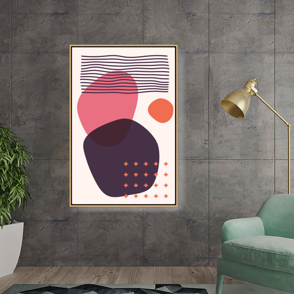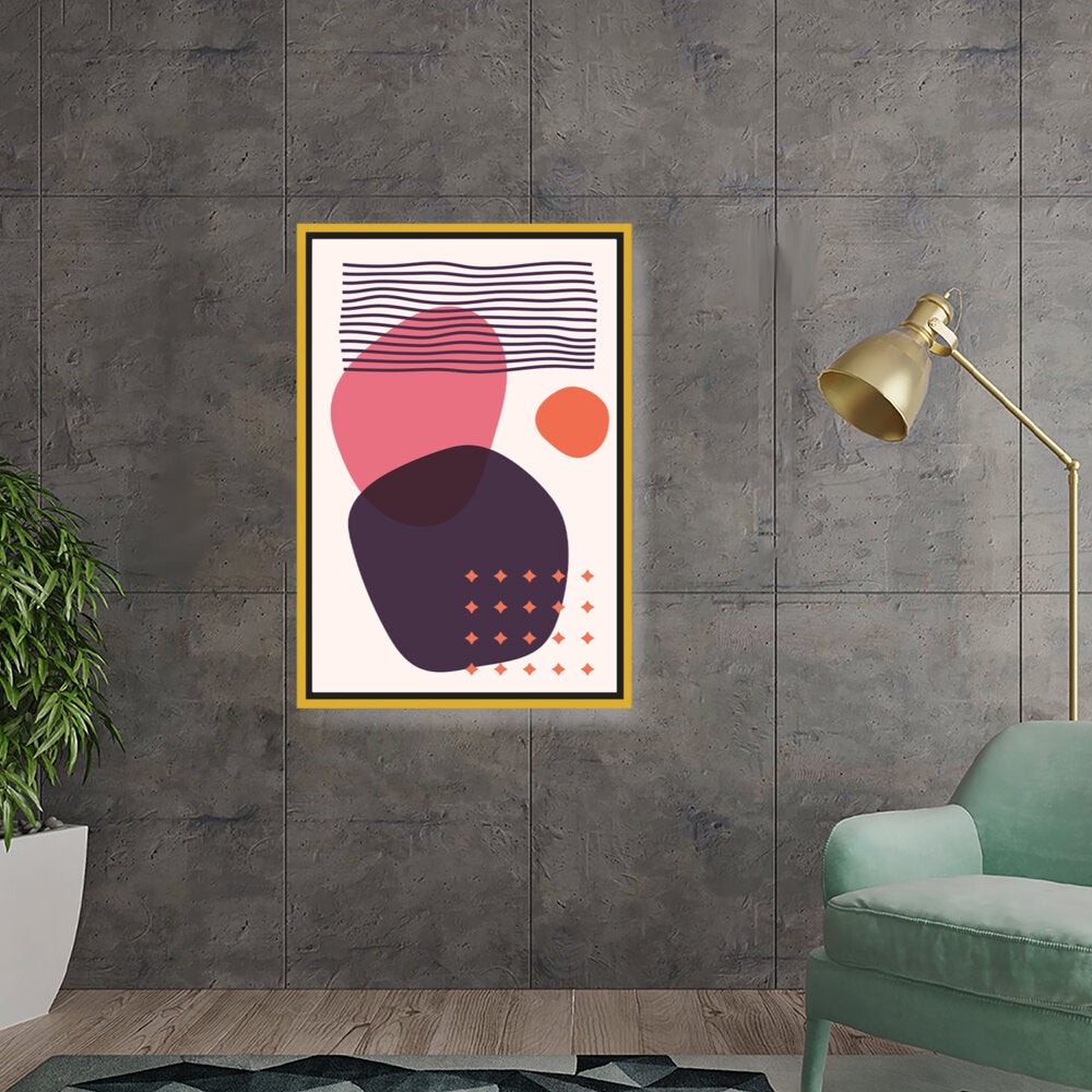 This artwork features a composition of abstract shapes and lines in a minimalistic style, perfect for modern interiors. The bold colors and playful forms create a vibrant visual impact, making it an ideal addition to any contemporary space.
