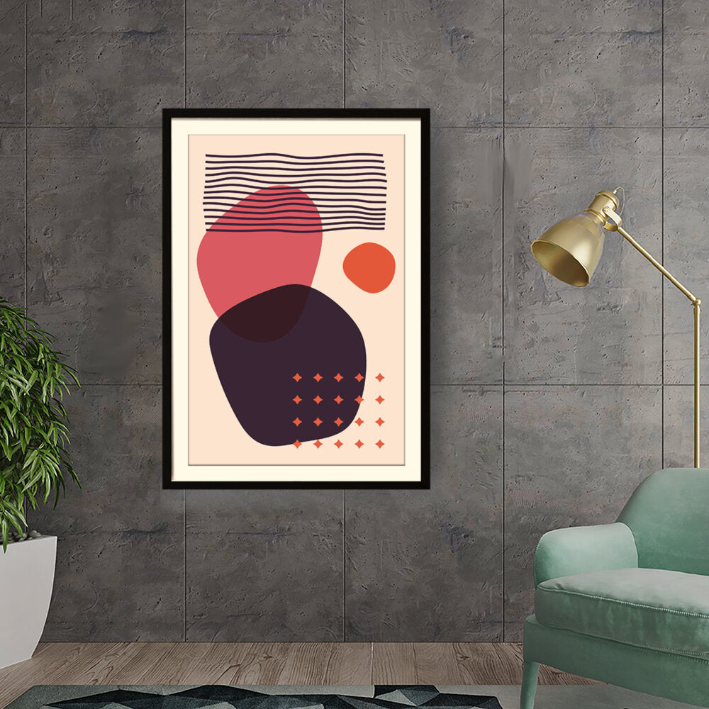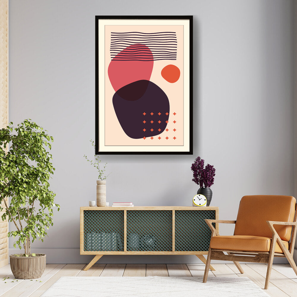 This artwork features a composition of abstract shapes and lines in a minimalistic style, perfect for modern...