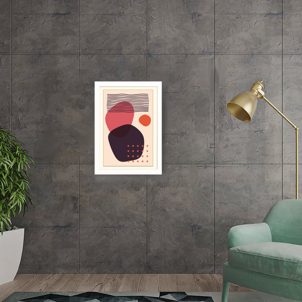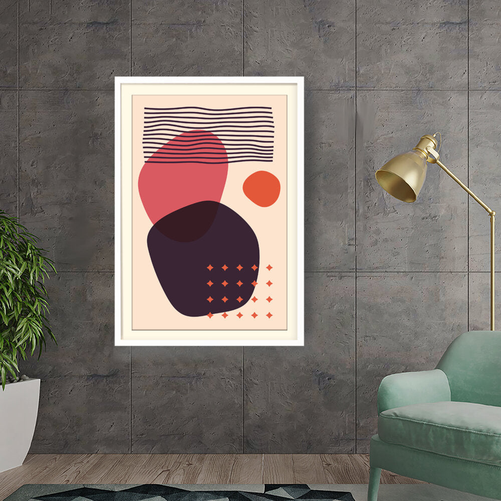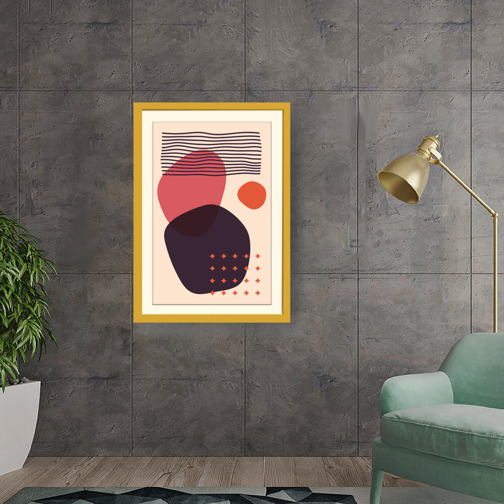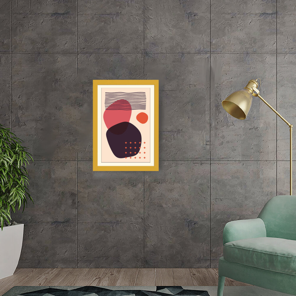 This artwork features a composition of abstract shapes and lines in a minimalistic style, perfect for modern interiors. The bold colors and playful forms create a vibrant visual impact, making it an ideal addition to any contemporary space.