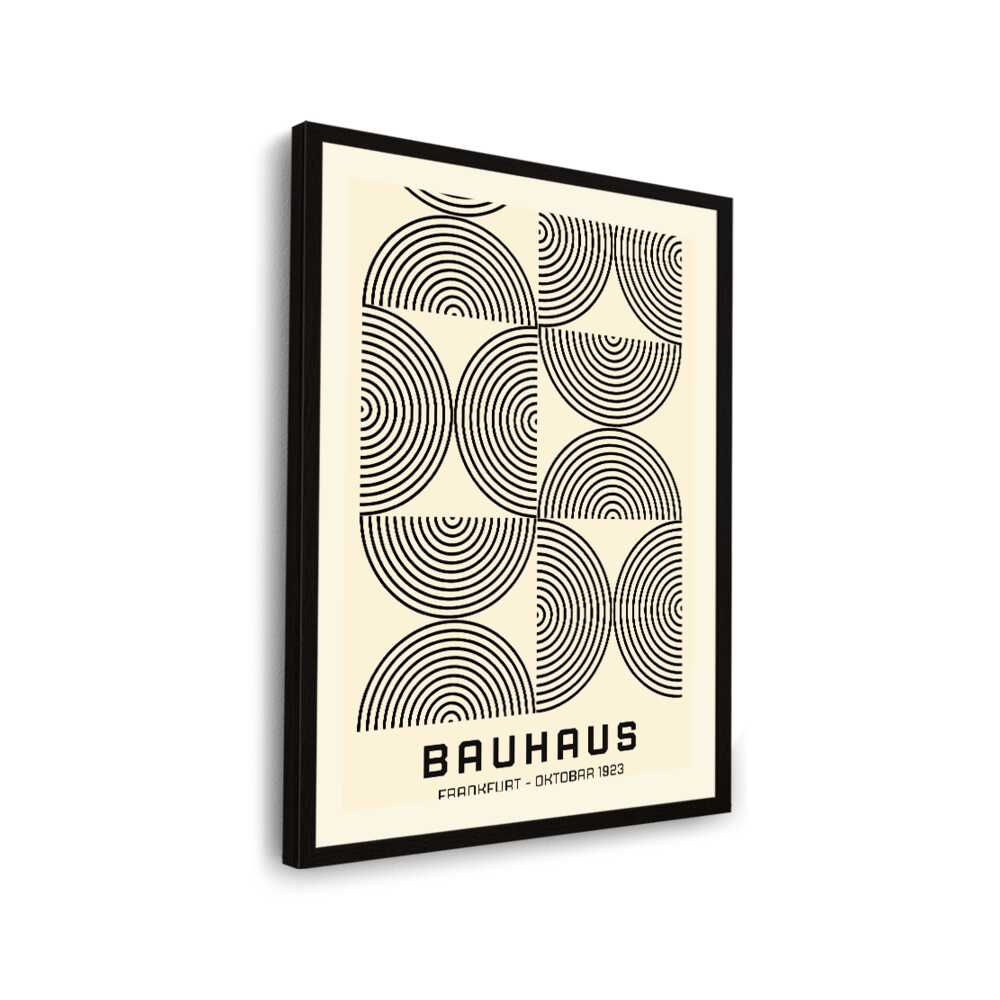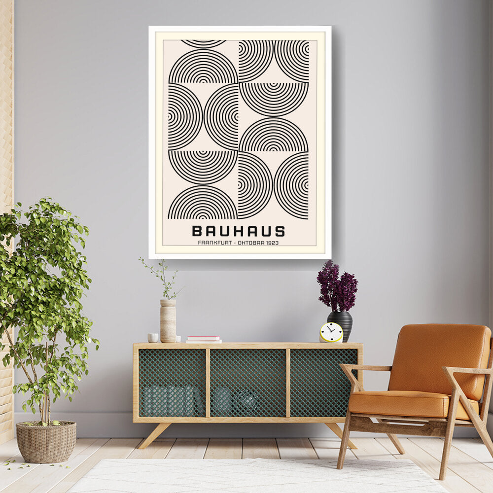 This artwork titled 'Bauhaus Circles' features a minimalist design with concentric circles, reflecting the principles of modern design prevalent in the Bauhaus movement. Its clean lines and geometric patterns make it a perfect addition to contemporary spaces.