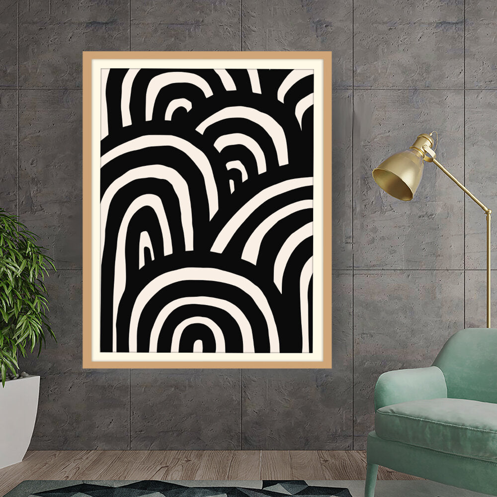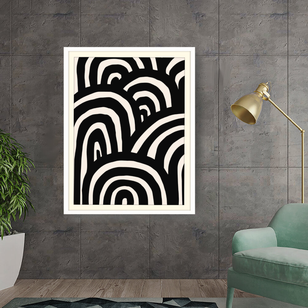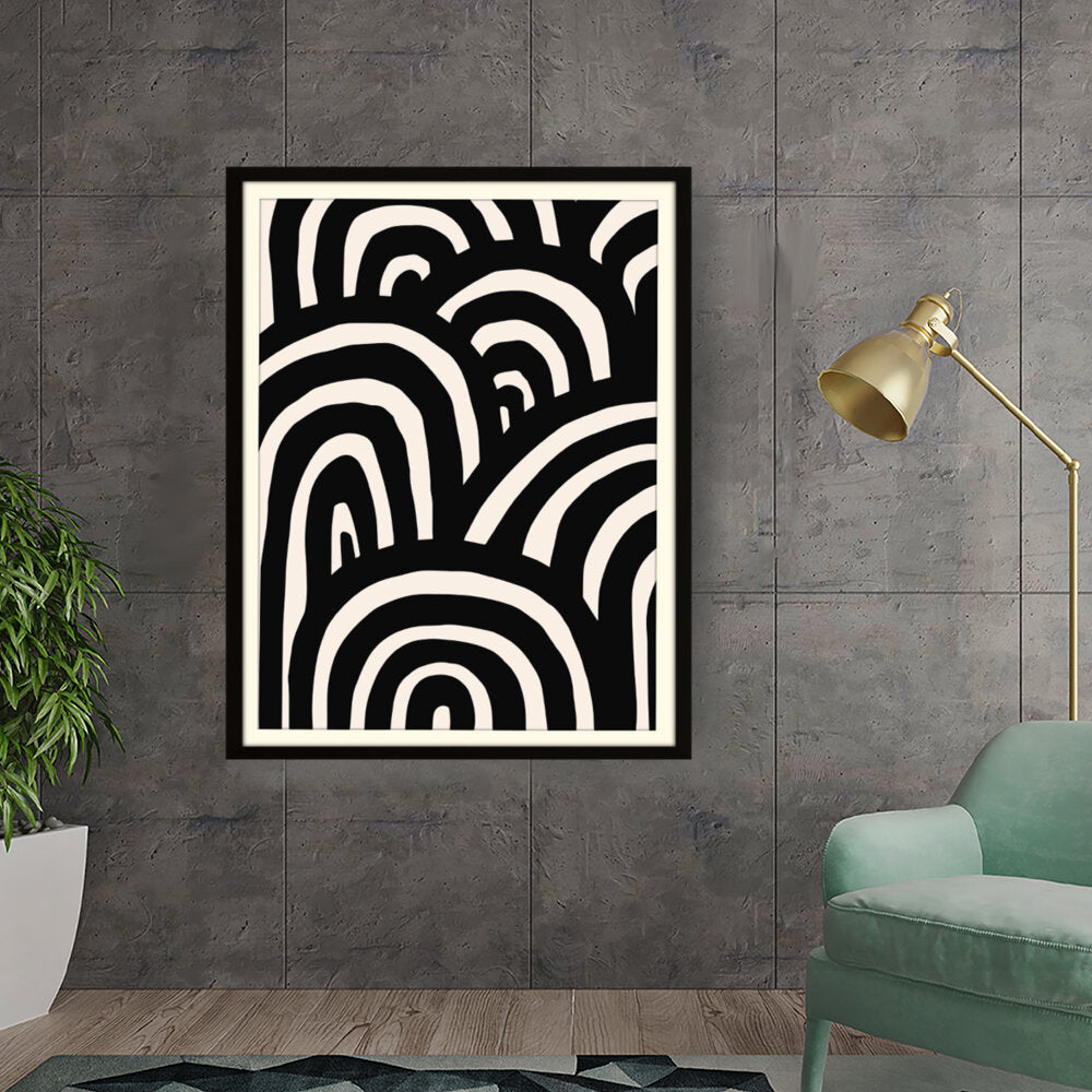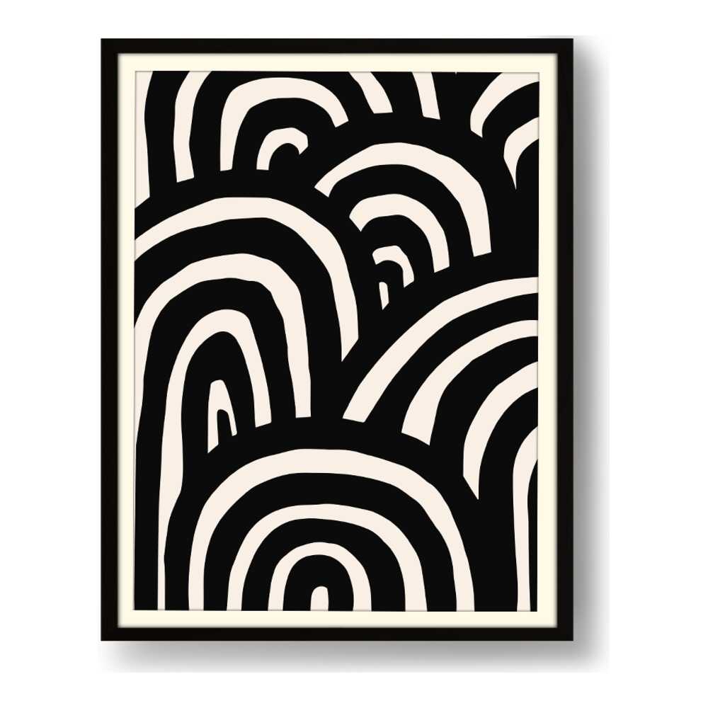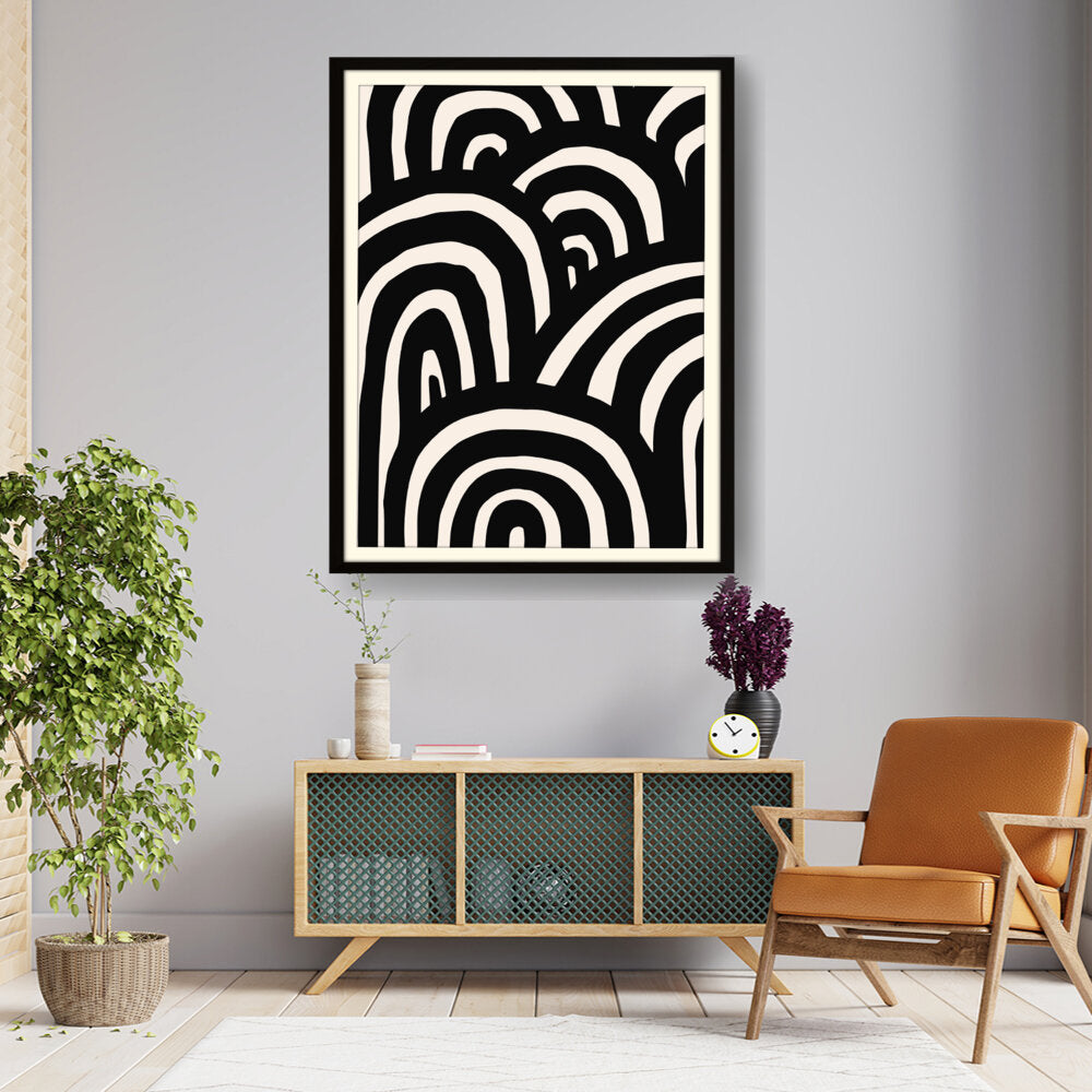 This artwork features a striking arrangement of black and white waves, creating a sense of movement and rhythm. The minimalistic design makes it a perfect addition to modern interiors, enhancing any space with its bold contrast.