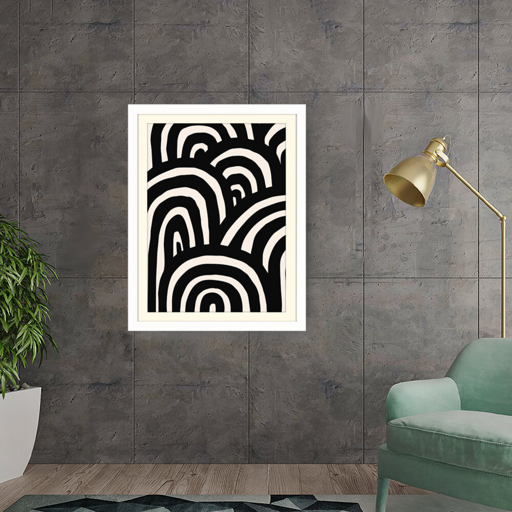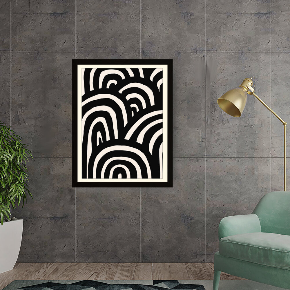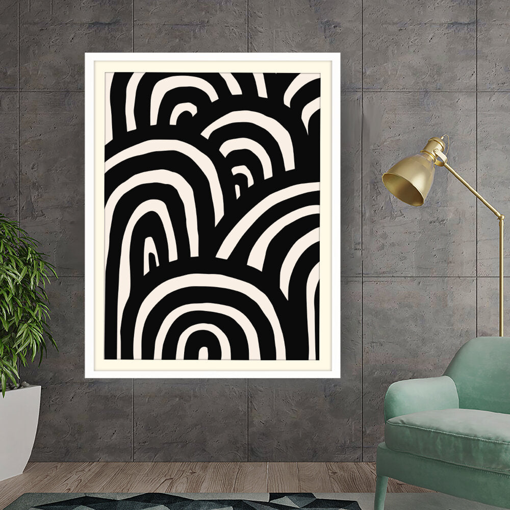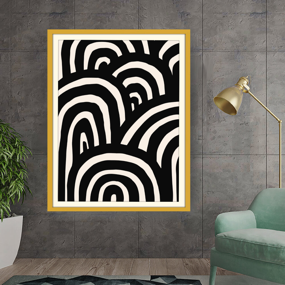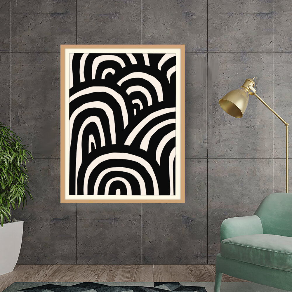 This artwork features a striking arrangement of black and white waves, creating a sense of movement and rhythm. The minimalistic design makes it a perfect addition to modern interiors, enhancing any space with its bold contrast.