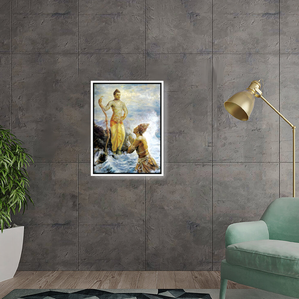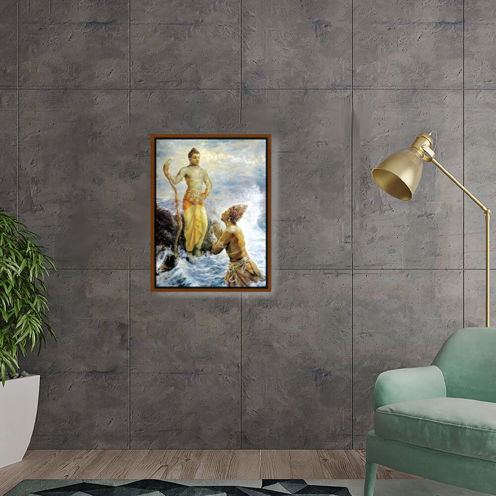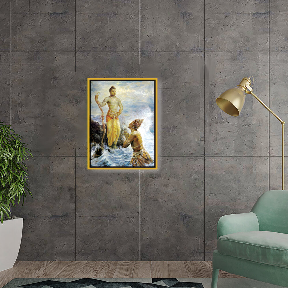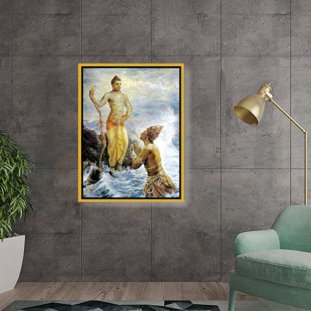 This captivating artwork portrays a divine interaction, infused with rich cultural elements and traditional techniques. The intricate details and vibrant colors evoke a sense of reverence and spirituality, making it a perfect focal piece for any space.