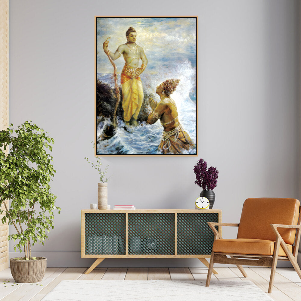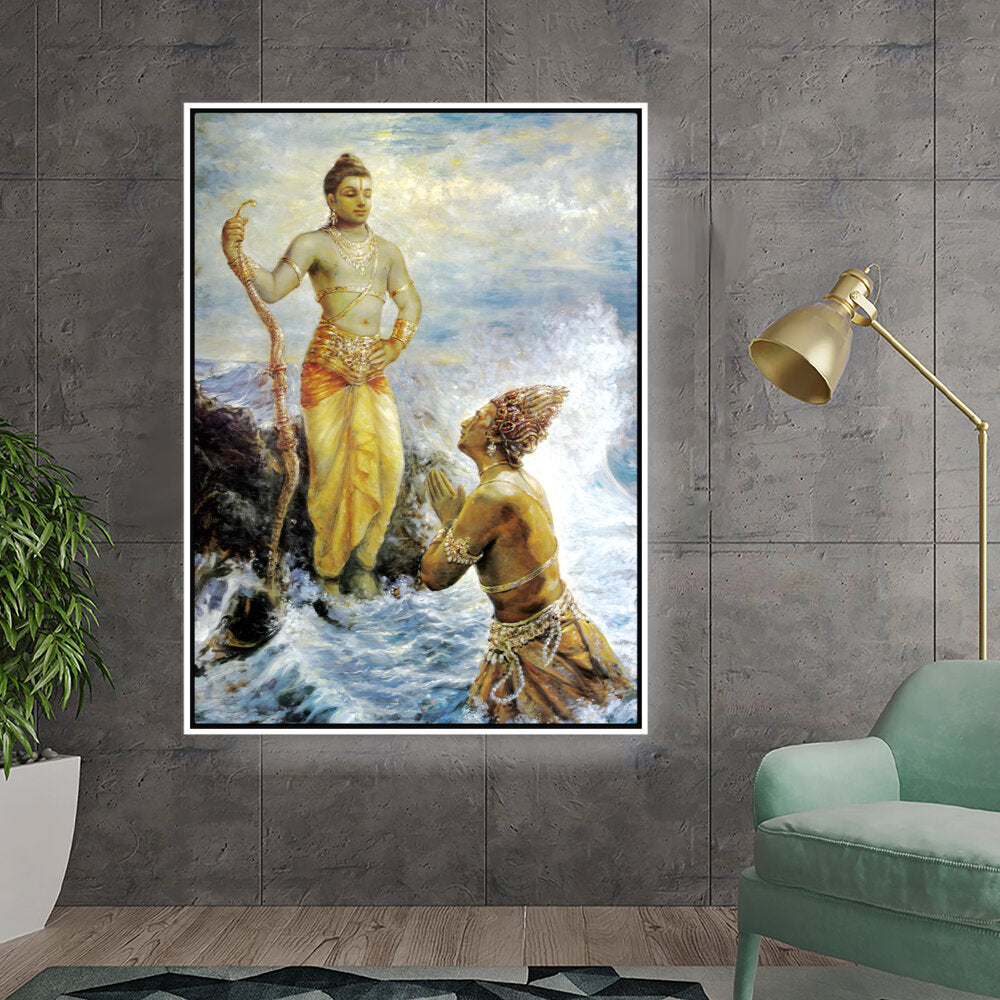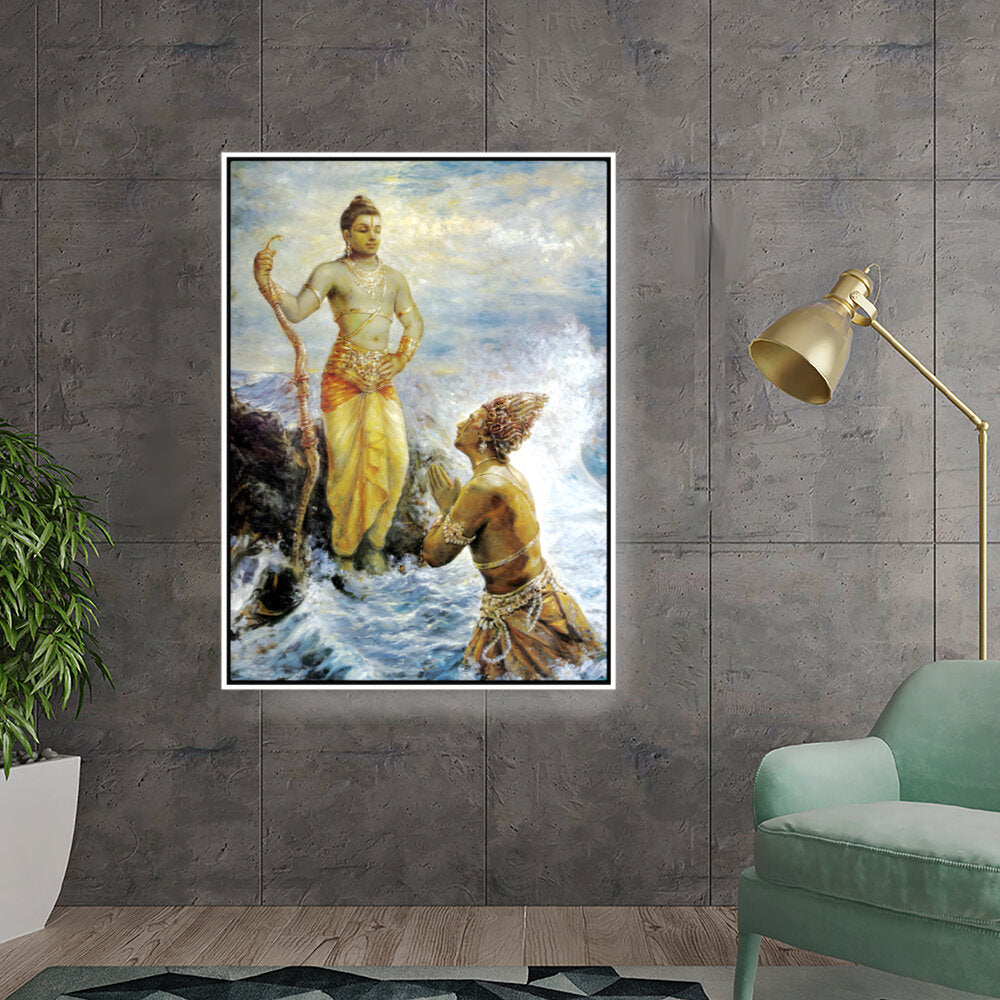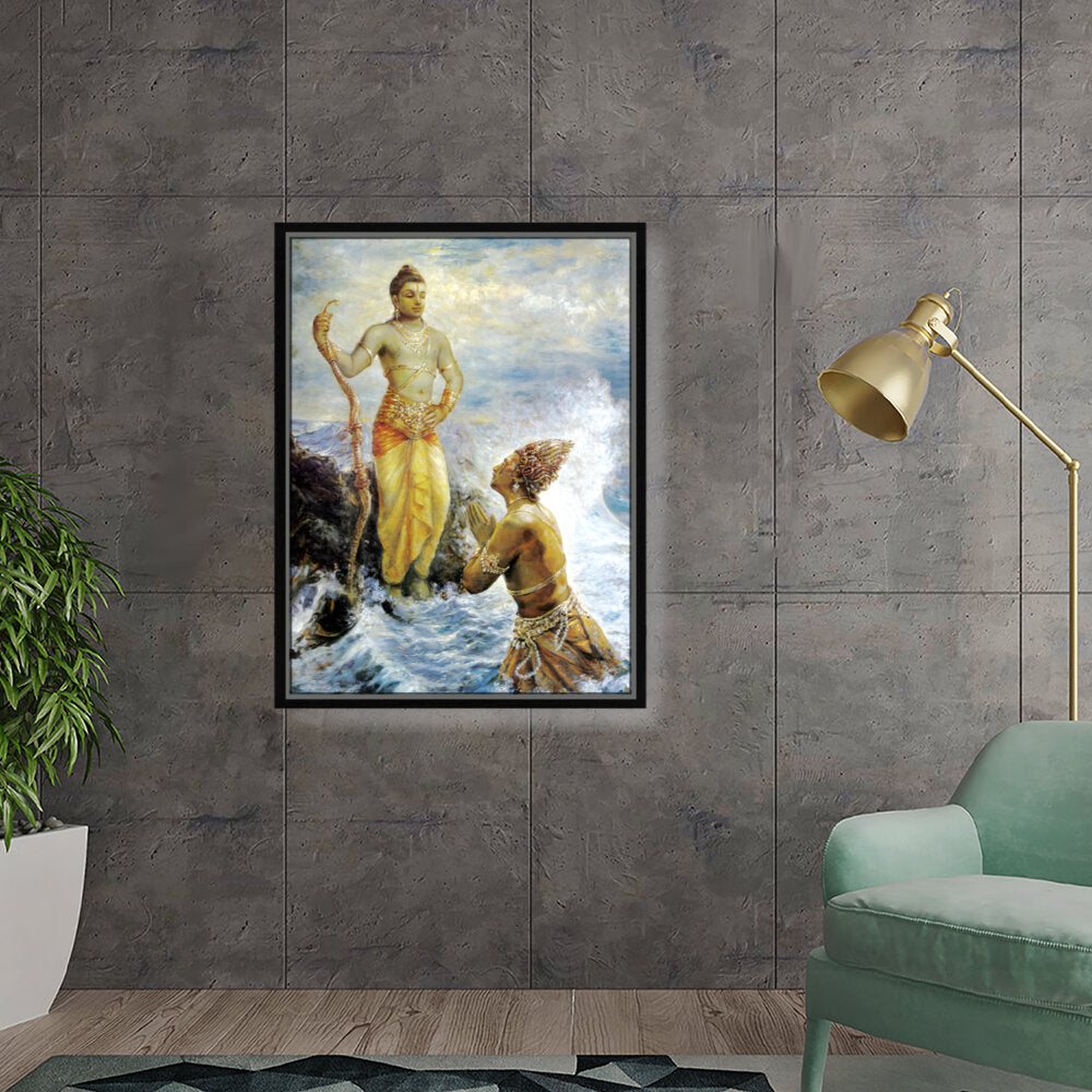 This captivating artwork portrays a divine interaction, infused with rich cultural elements and traditional techniques. The intricate details and vibrant colors evoke a sense of reverence and spirituality, making it a perfect focal piece for any space.