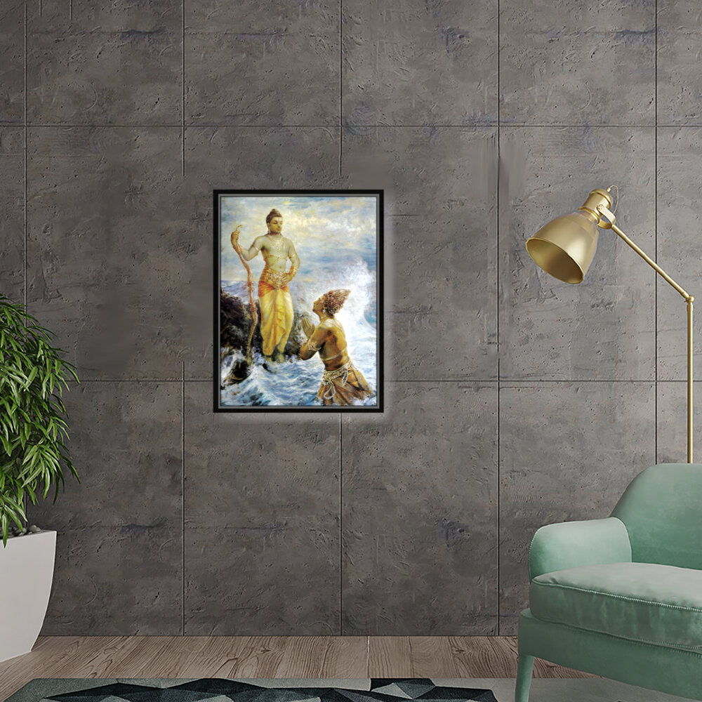 This captivating artwork portrays a divine interaction, infused with rich cultural elements and traditional techniques. The intricate...