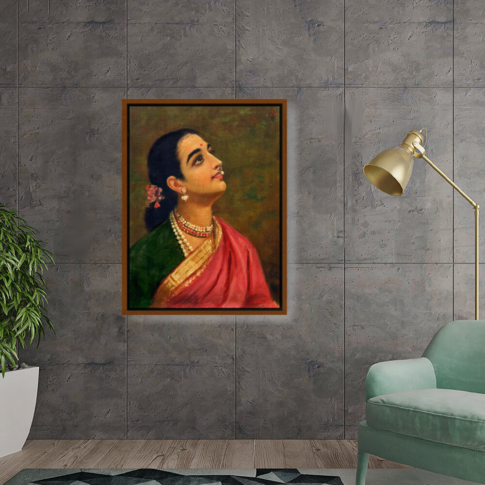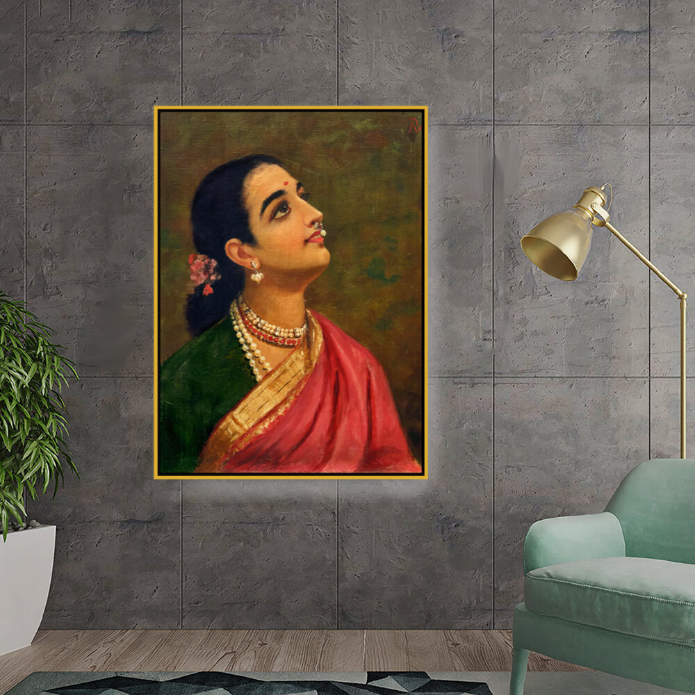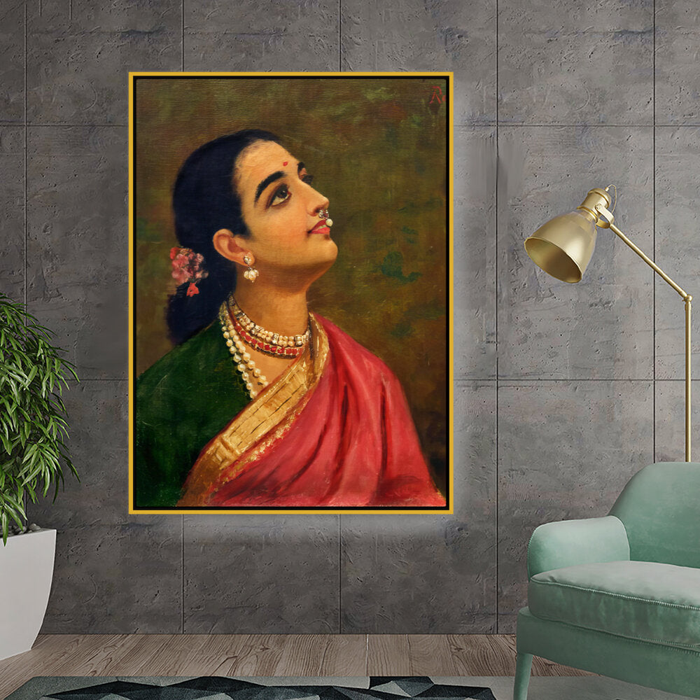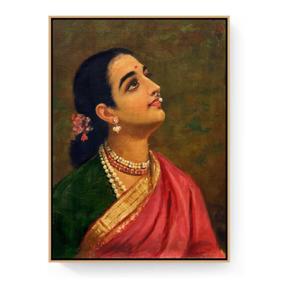 This captivating oil painting features a graceful woman adorned in traditional attire, adorned with intricate jewelry, showcasing the rich cultural heritage of India. The soft hues and detailed expressions evoke a sense of elegance and tranquility, making it a perfect addition to any living space.