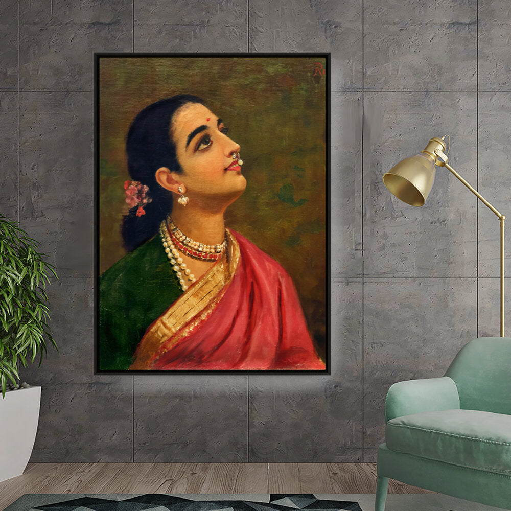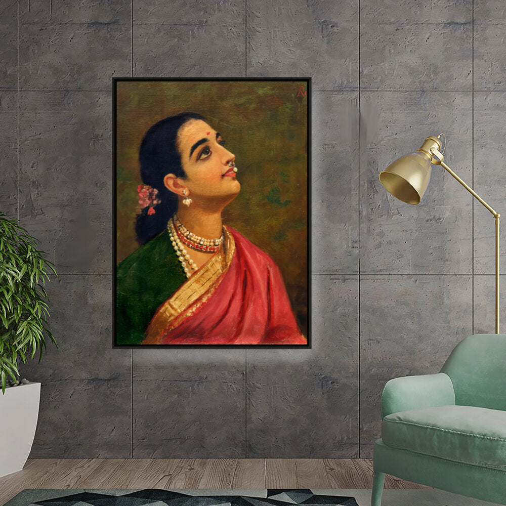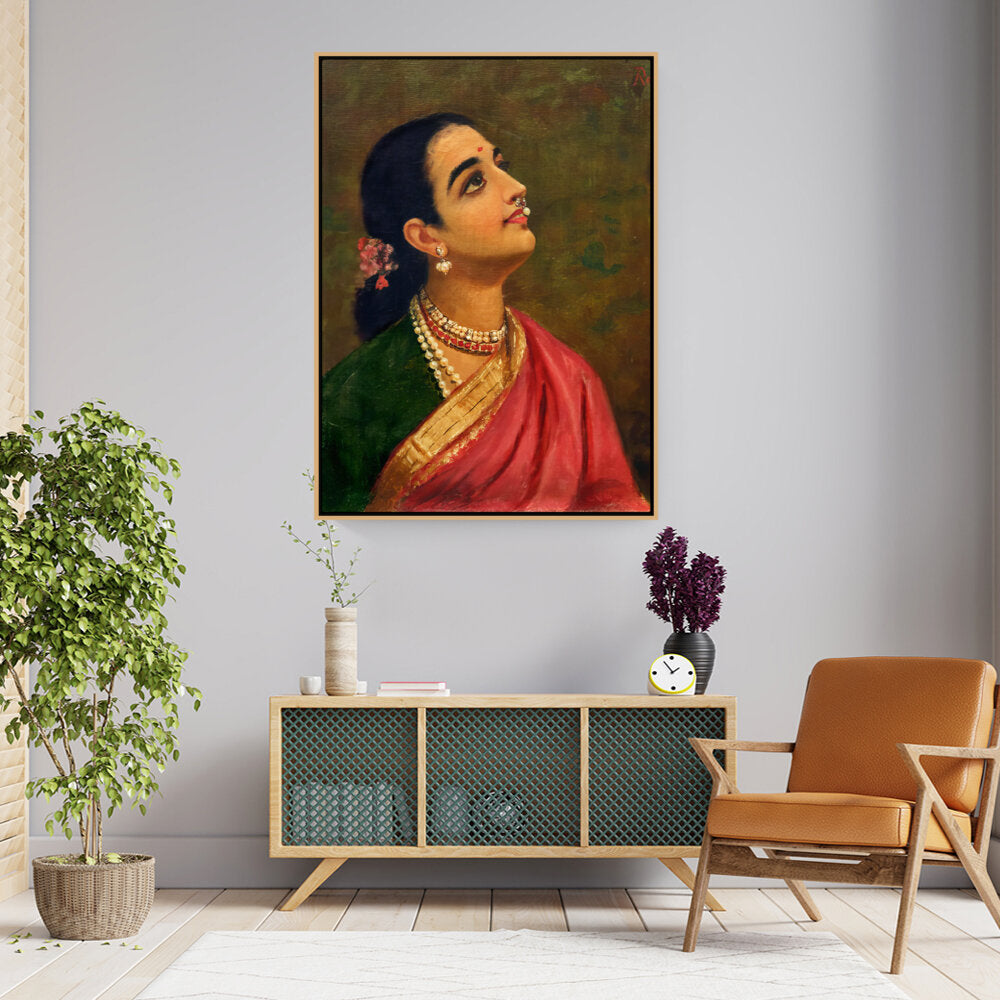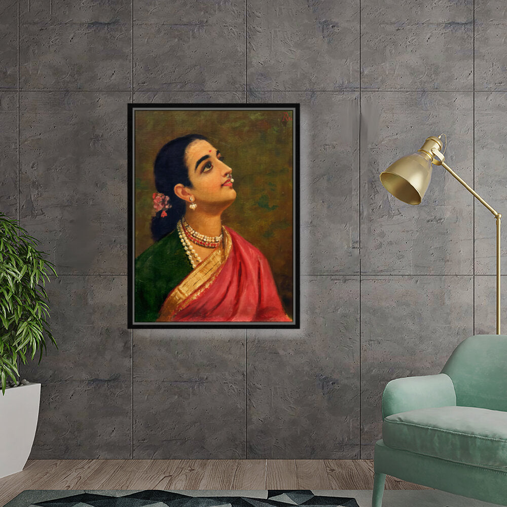 This captivating oil painting features a graceful woman adorned in traditional attire, adorned with intricate jewelry, showcasing the rich cultural heritage of India. The soft hues and detailed expressions evoke a sense of elegance and tranquility, making it a perfect addition to any living space.