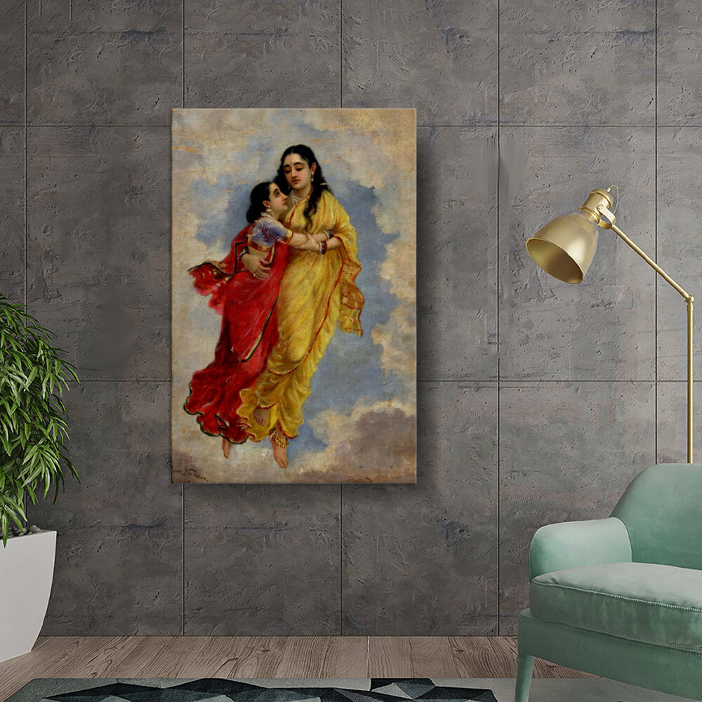 This exquisite artwork captures the intimate bond between two women, adorned in vibrant traditional attire. The serene colors and delicate expressions portray the essence of cultural richness, making it a captivating centerpiece for any room.